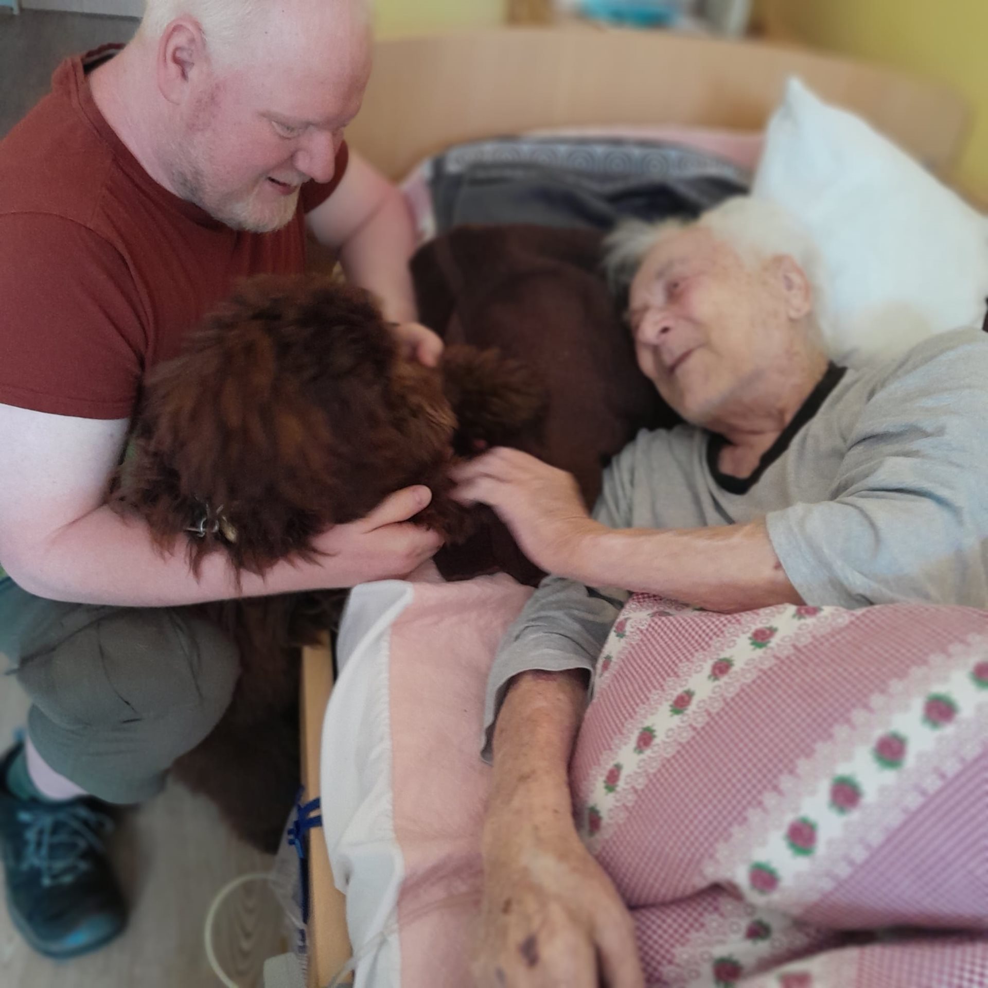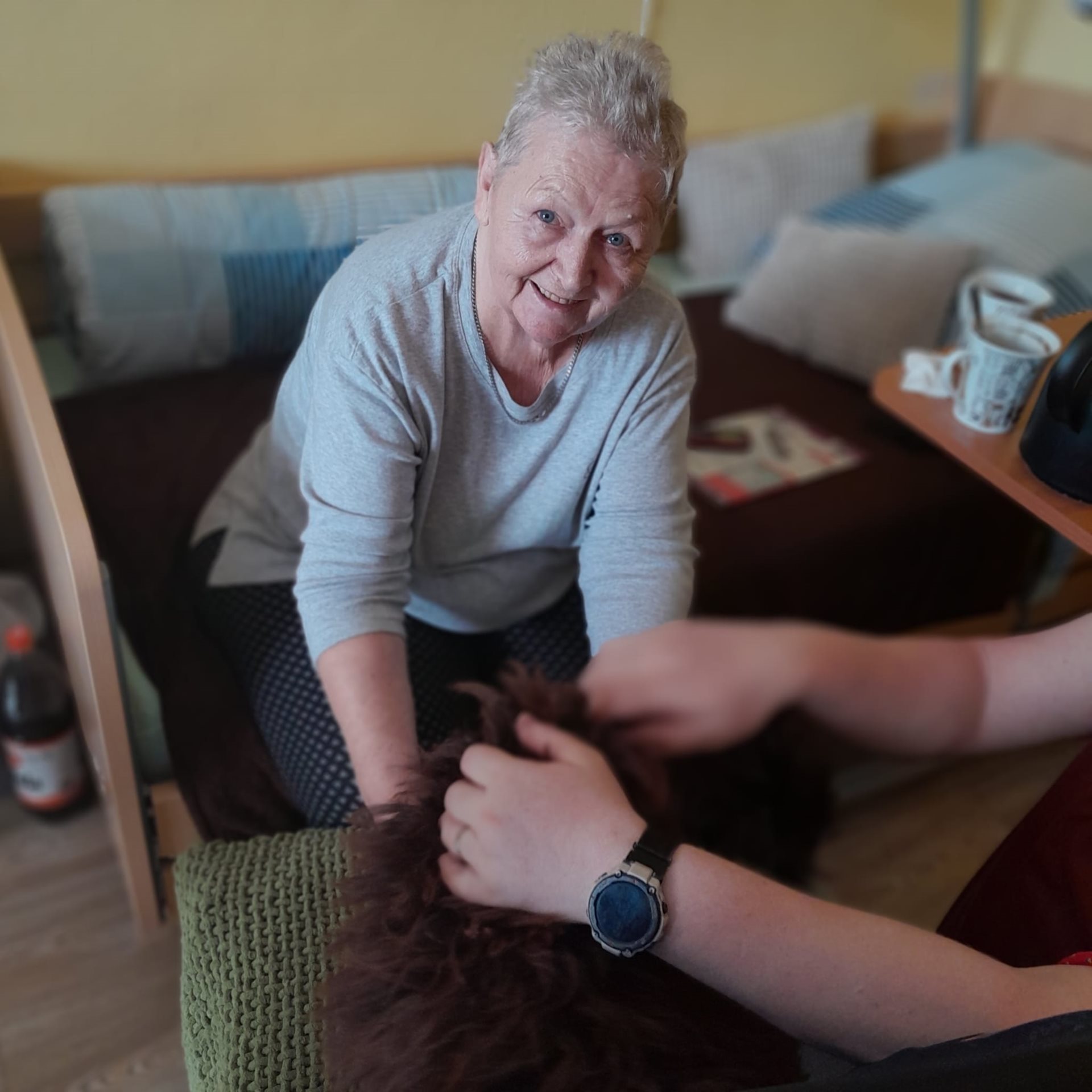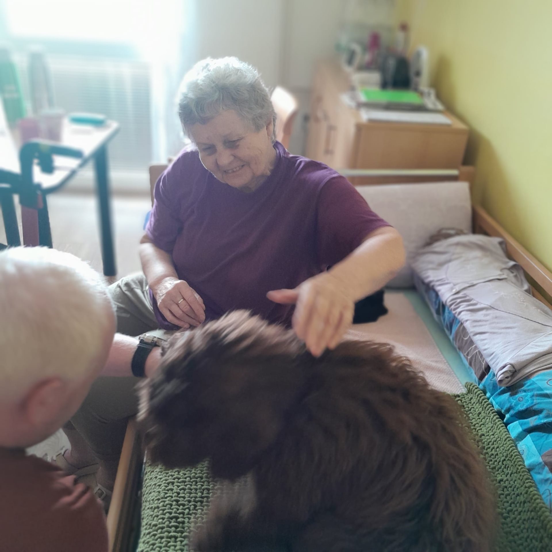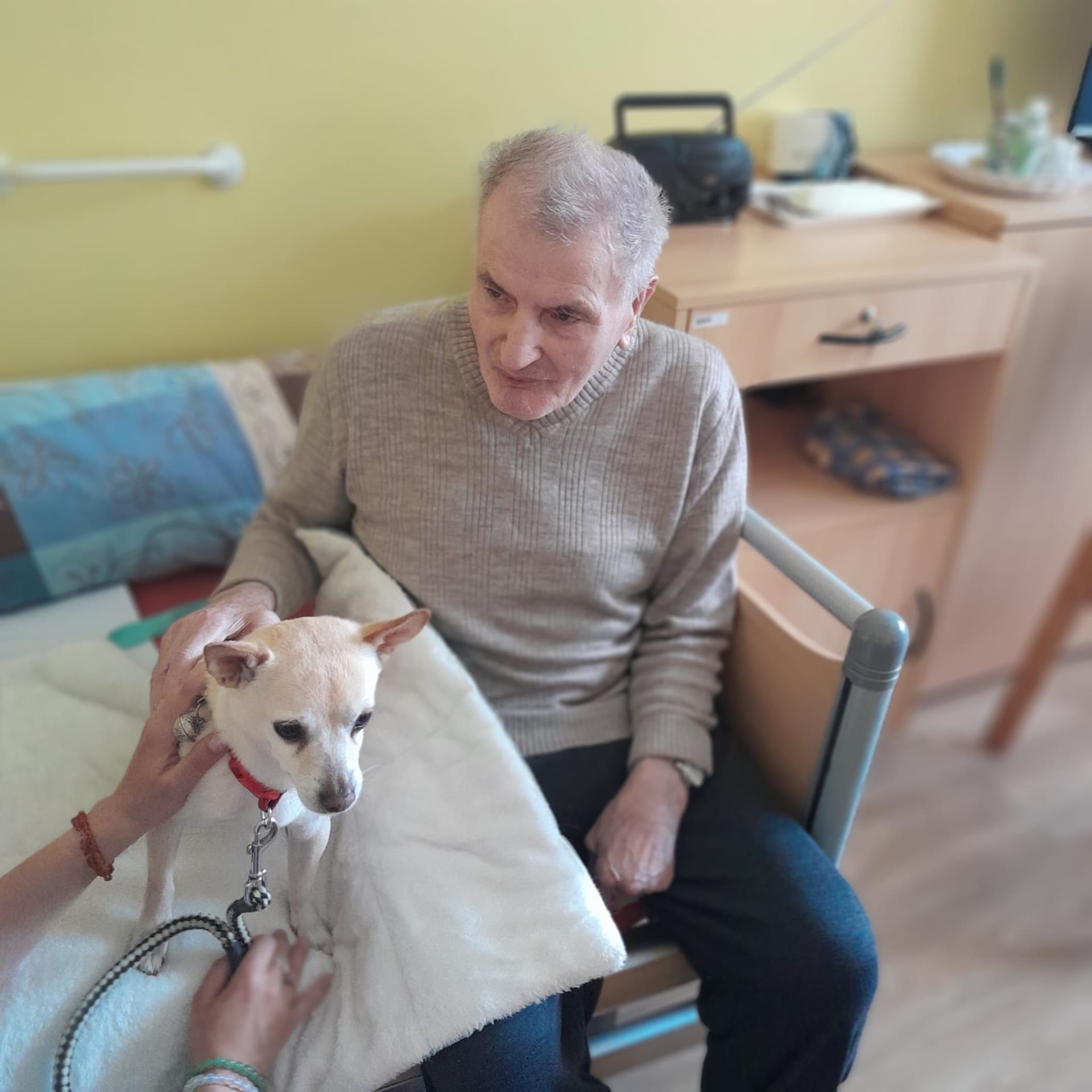 Dnešní dopoledne nás přišli potěšit naši čtyřnozí kamarádi. Pejsci s námi dováděli, mazlili jsme se, hladili je a radovali se z jejich přítomnosti. Canisterapie byla laděná individuálně, protože pejsci využili pozvání přímo na pokoje, kde si uživatelé mohli užít svoji vlastní, klidnou chvilku se svým psím kamarádem. Bylo to velmi příjemné setkání, které přineslo spoustu úsměvů a pohody. Děkujeme!