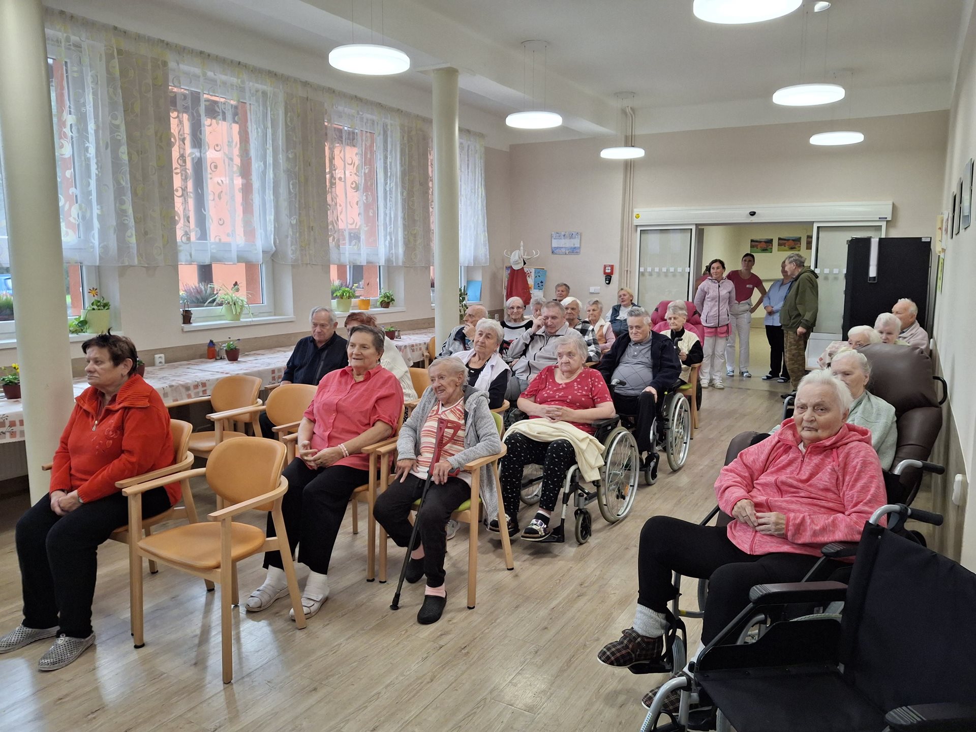 Na závěr dne jsme společně s našimi uživateli poseděli v jídelně, kde na nás čekal hudební program. Naše oblíbená kapela Senior Expres vytvořila skvělou atmosféru a hudební odpoledne jsme si zpříjemnili domácími obloženými chlebíčky.