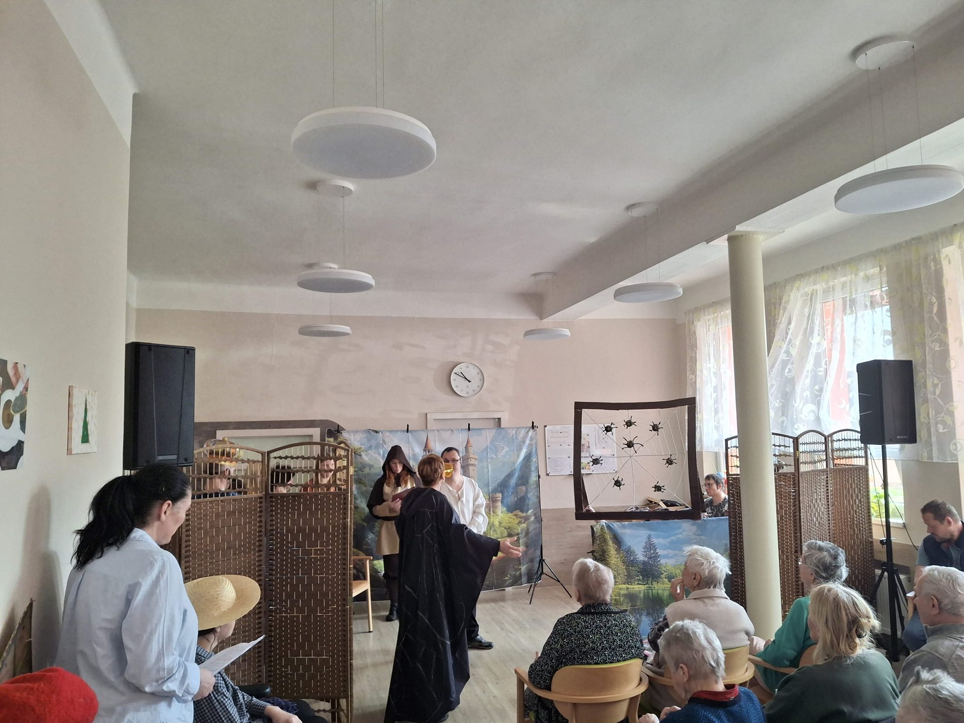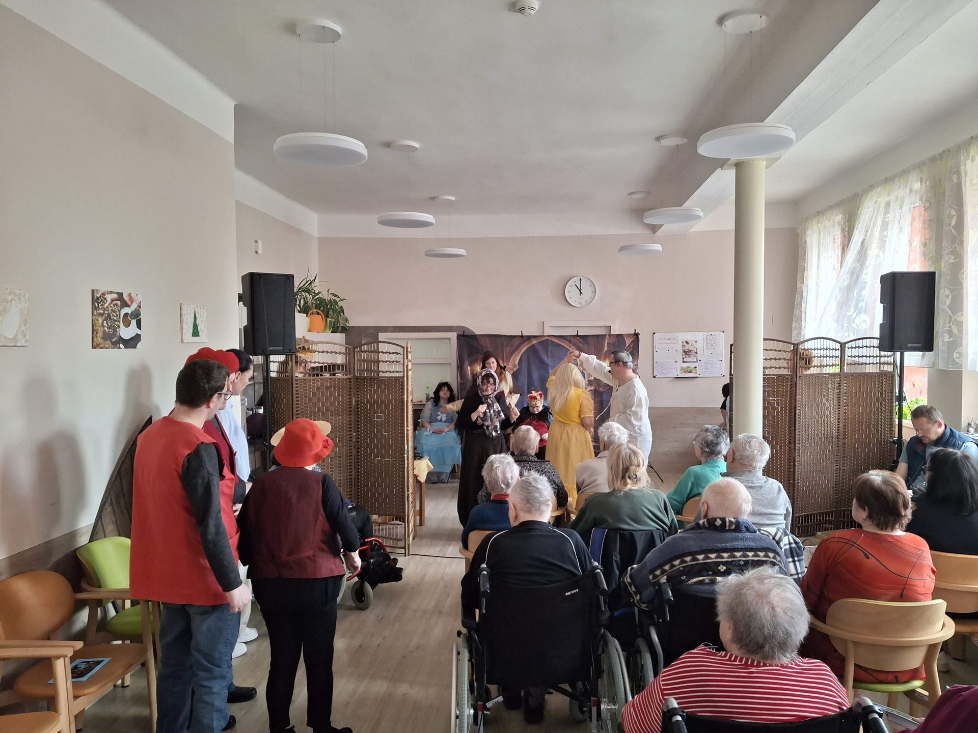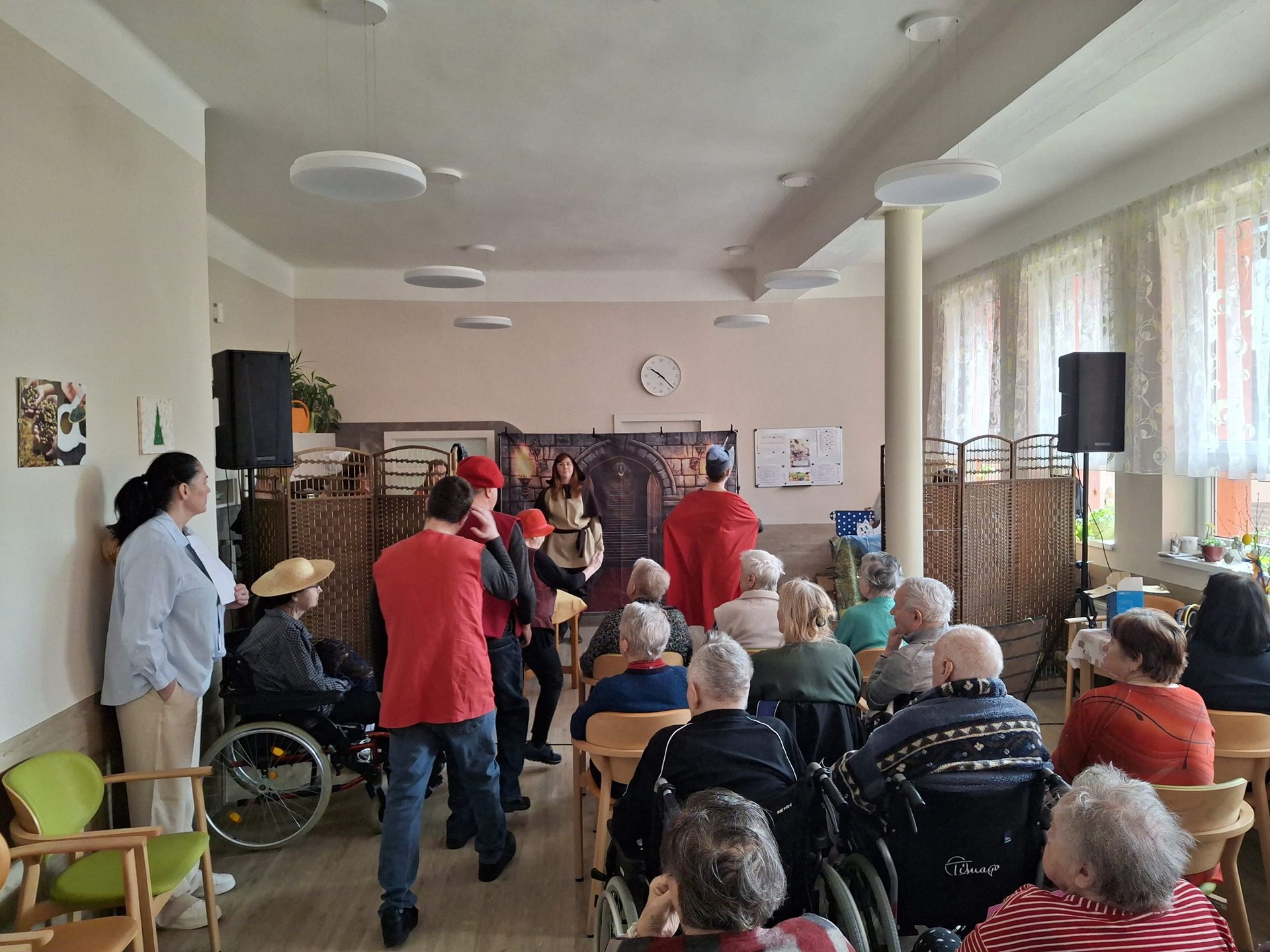 Atmosféra byla od začátku velmi příjemná a přátelská. Klienti i zaměstnanci sledovali představení s velkým zaujetím, které doprovázeli potleskem. Pohádkový příběh v nás probudil vzpomínky. Herci ze spolku Dominika předvedli skvělý výkon a již se těšíme na další setkání a nová představení.