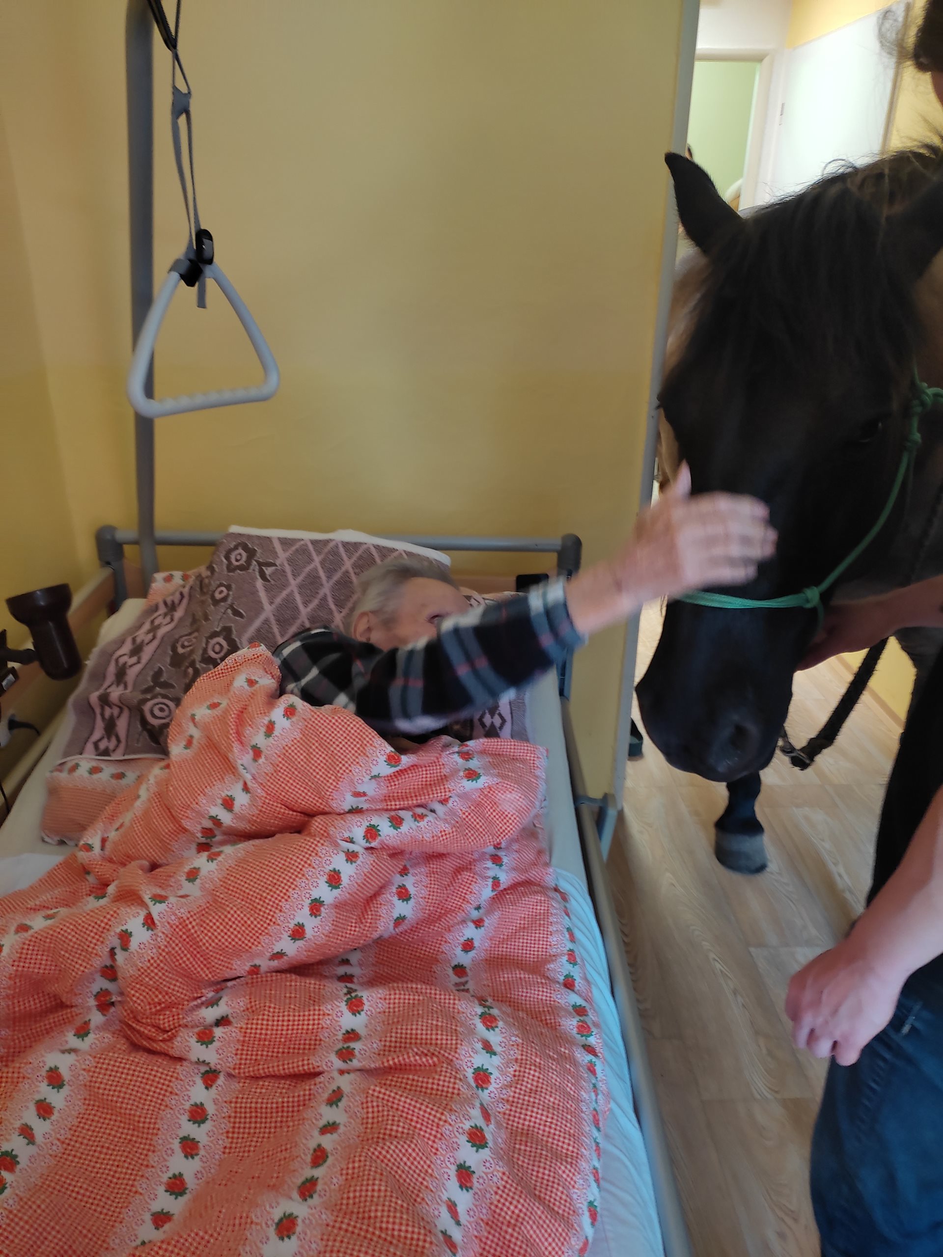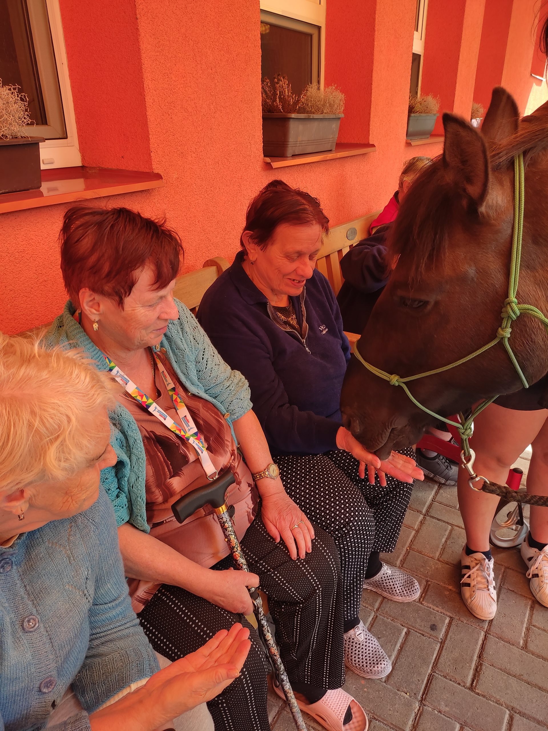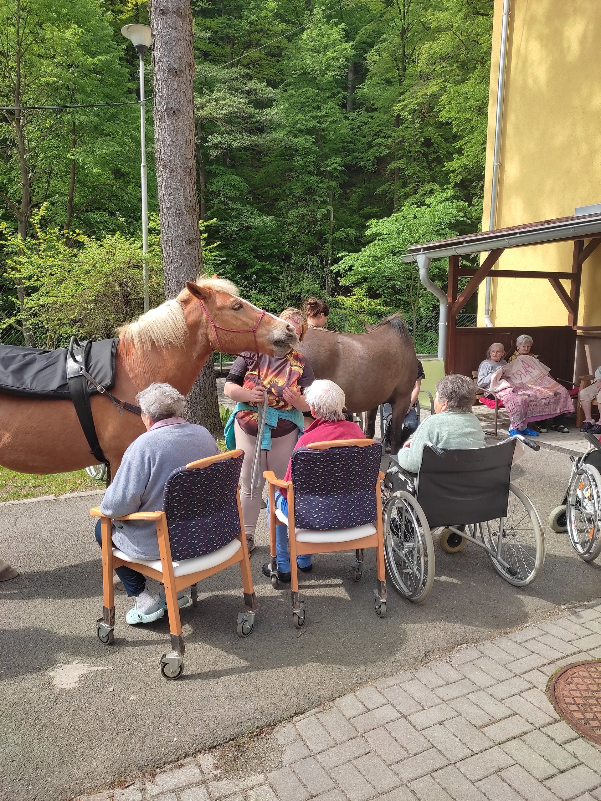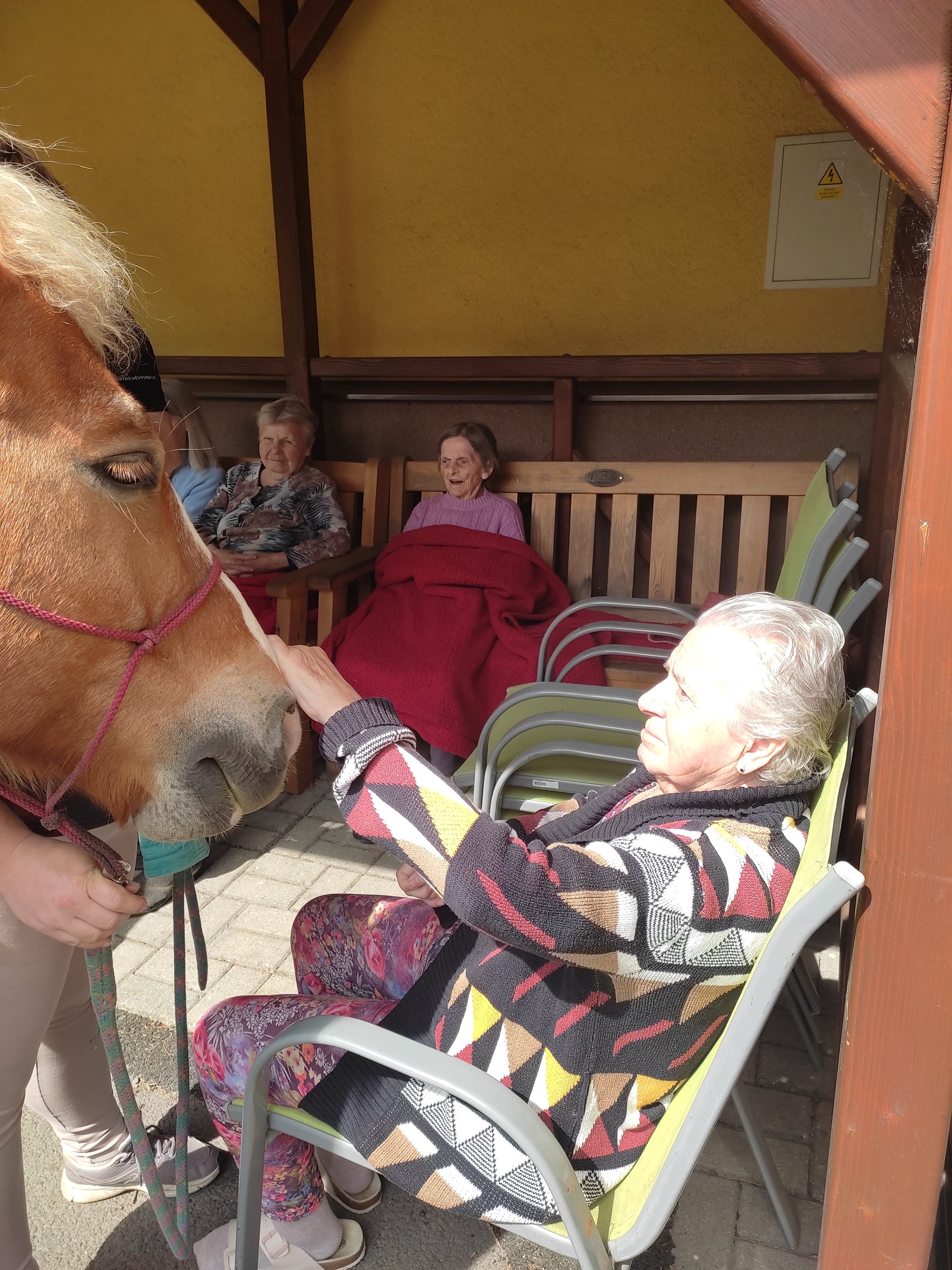 2. 5. 2024 jsme využili teplého počasí a uskutečnili hipoterapii. Bylo krásné počasí, sluníčko svítilo, tak jsme se sešli venku. Našli se i odvážlivci, co koně osedlali a projeli se na něm. A to z řad uživatelů, tak i zaměstnanců. Na závěr jsme navštívili pokoje a udělali radost uživatelům, kteří s námi nemohli být venku. Těšíme se na další setkání v měsíci červnu.