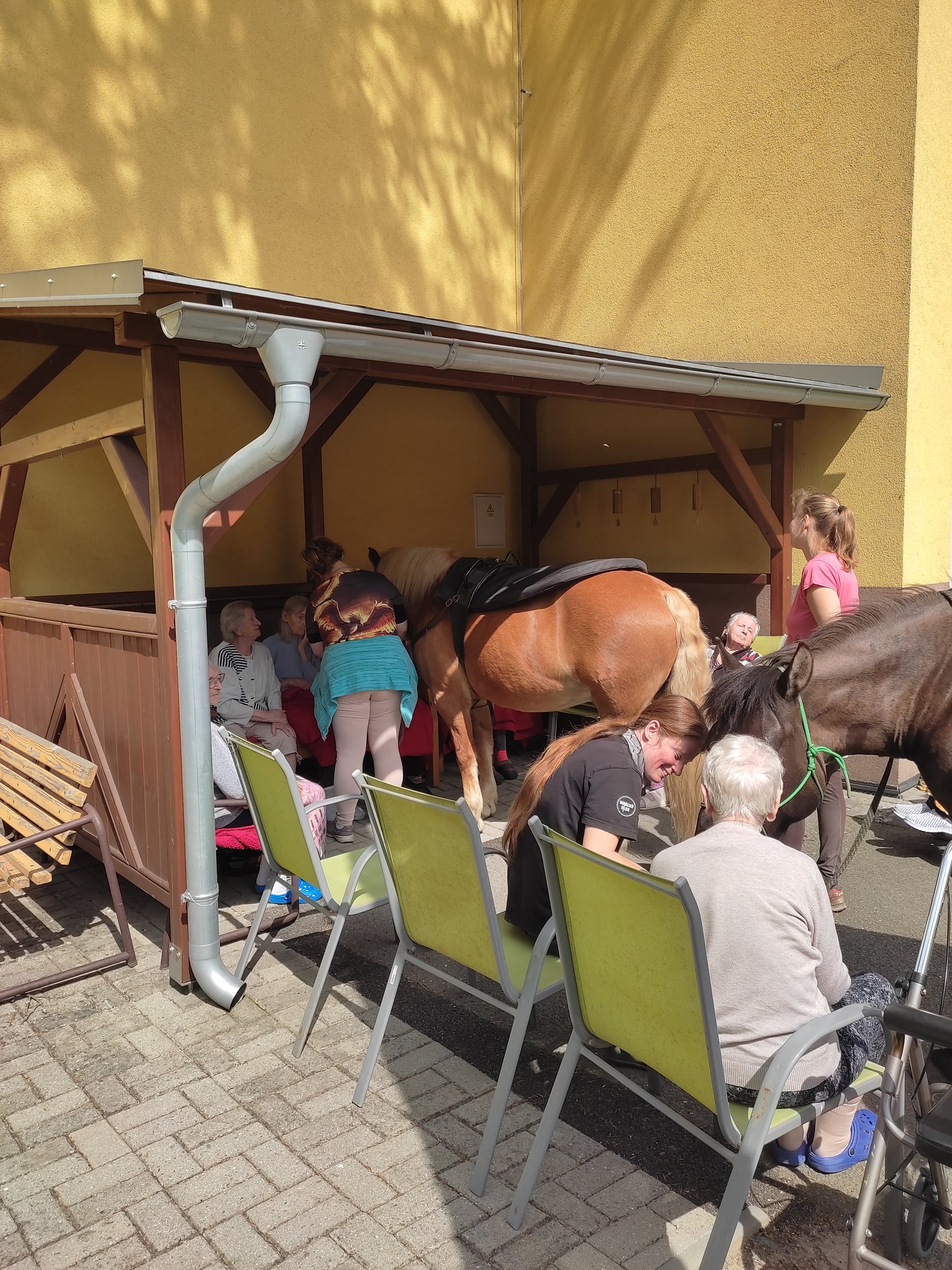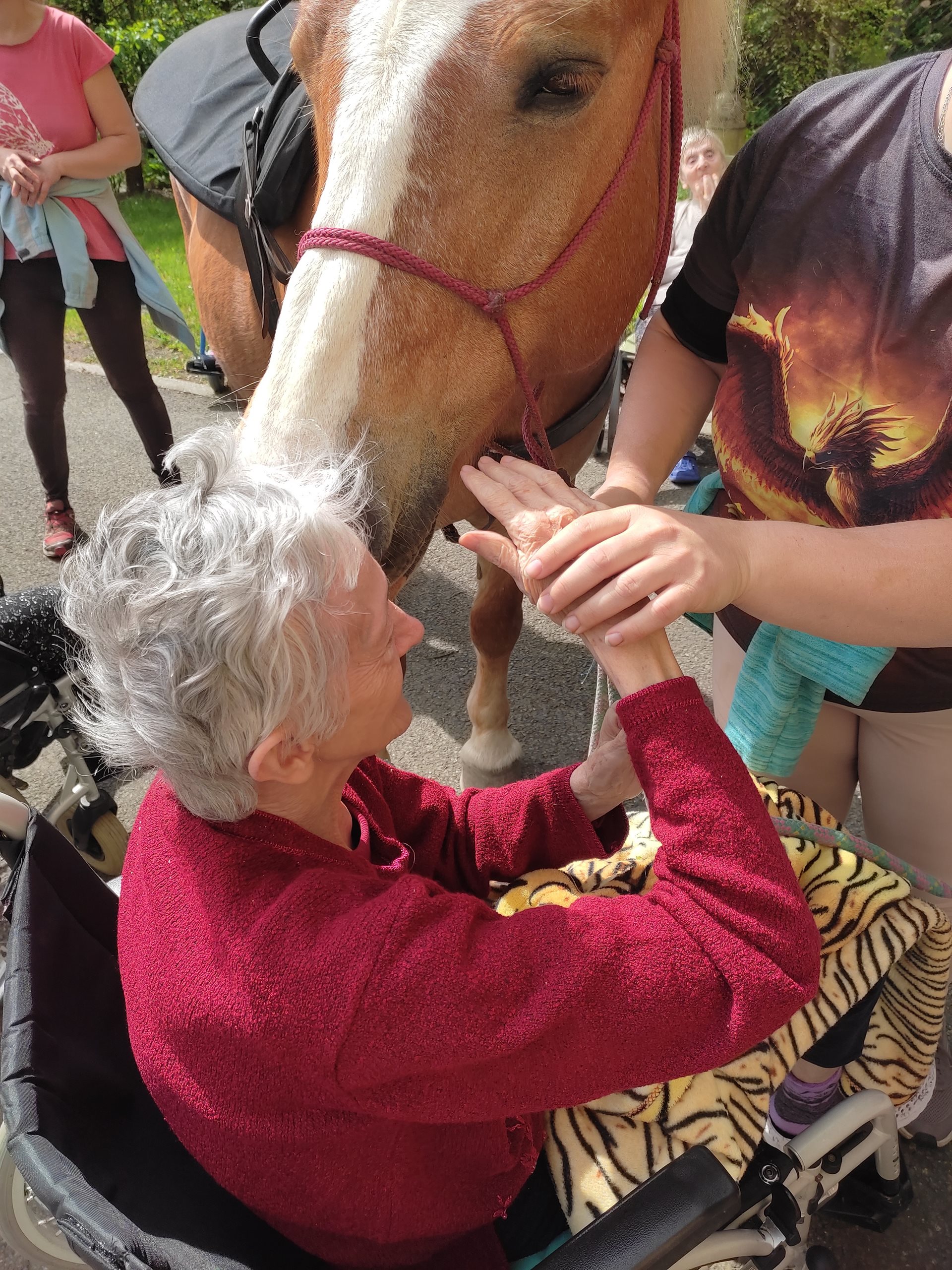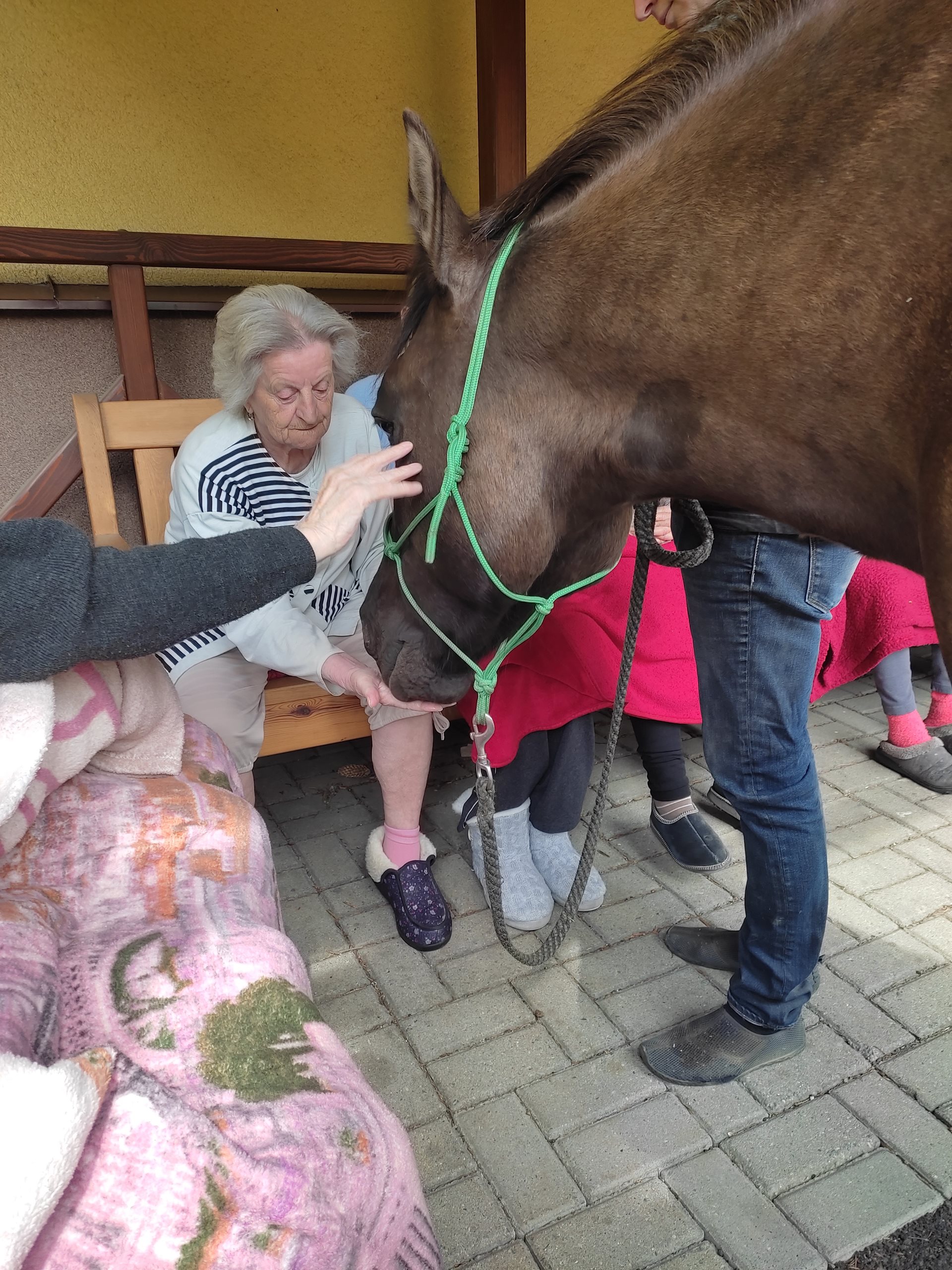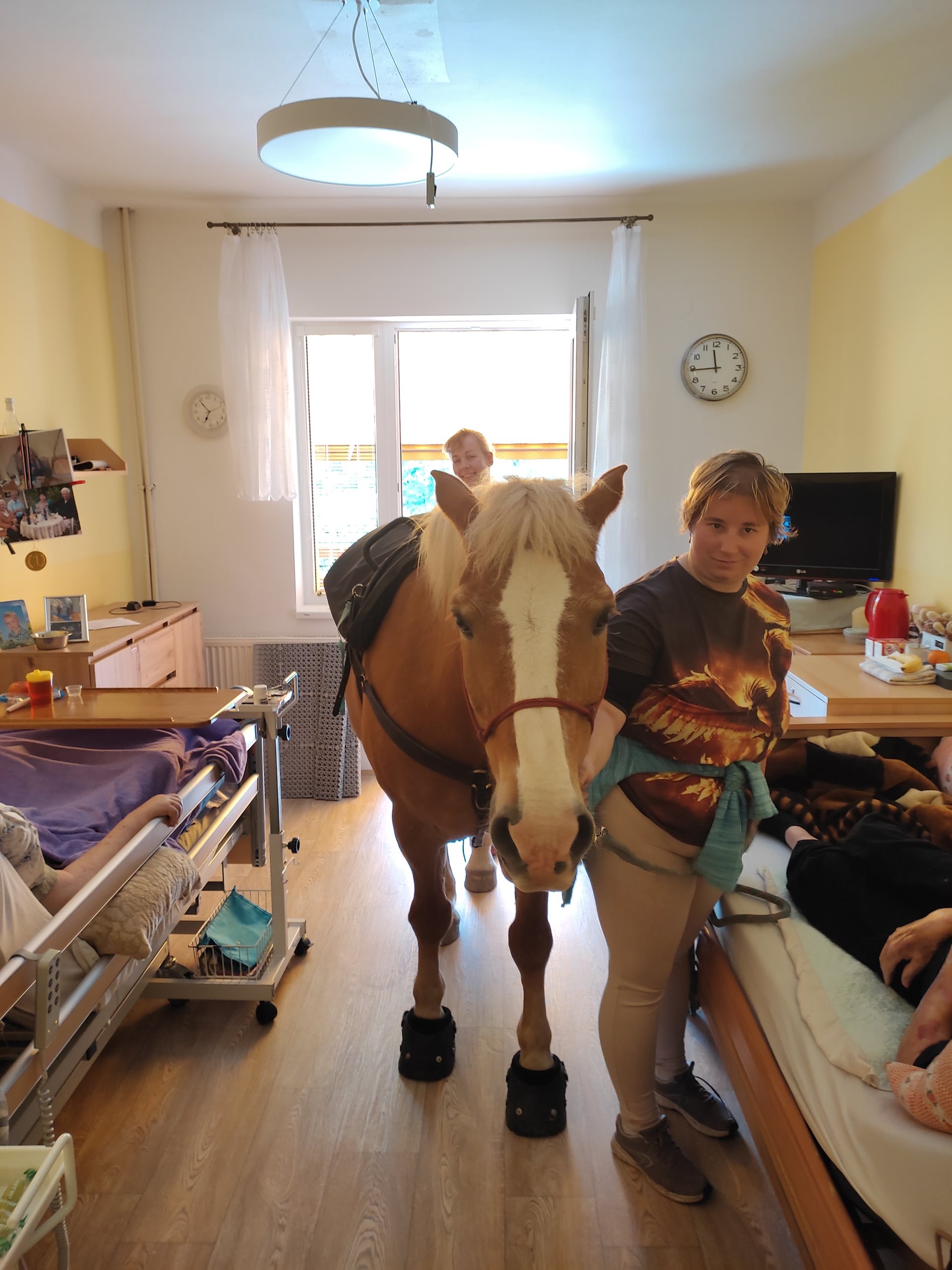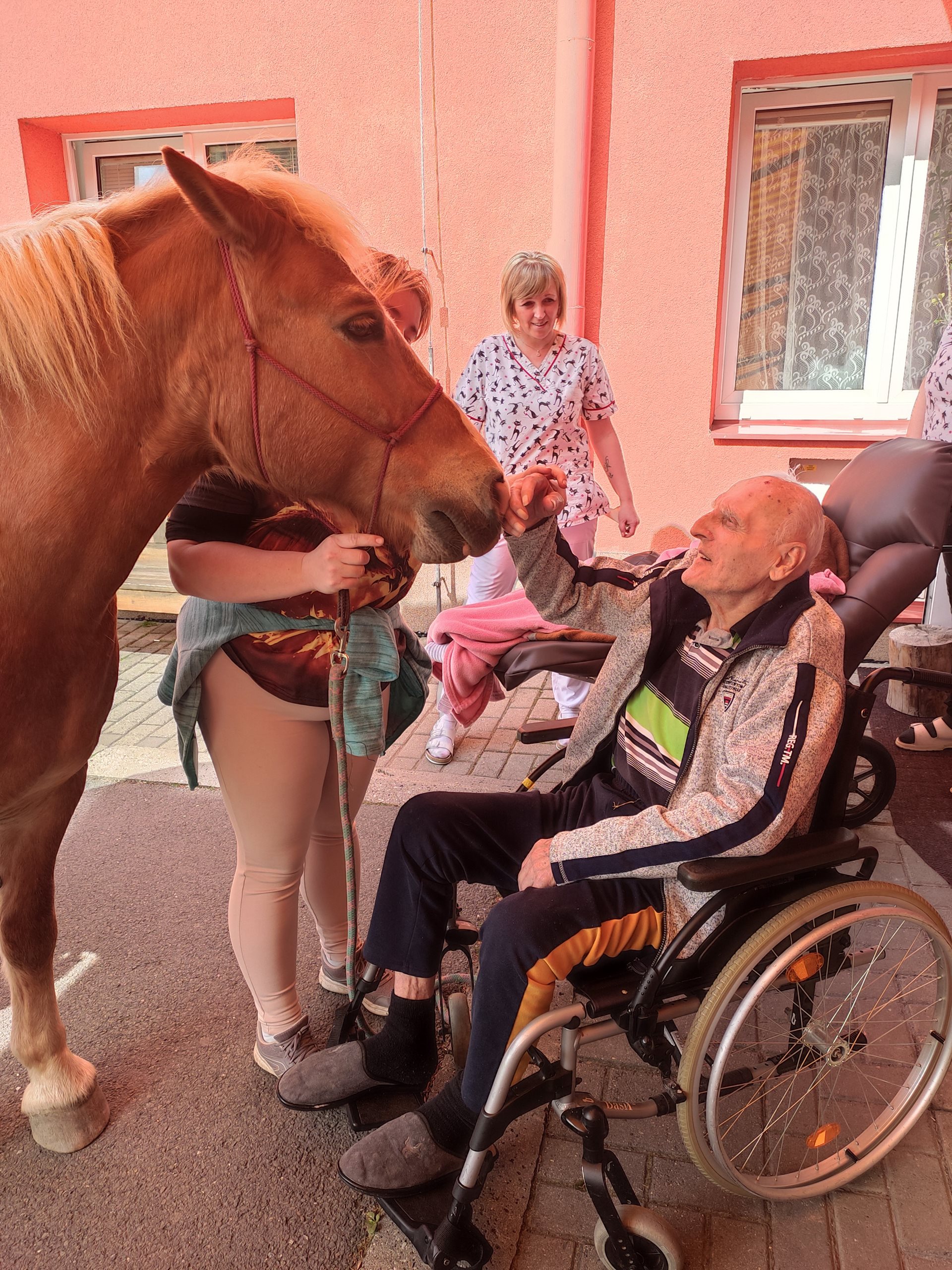 2. 5. 2024 jsme využili teplého počasí a uskutečnili hipoterapii. Bylo krásné počasí, sluníčko svítilo, tak jsme se sešli venku. Našli se i odvážlivci, co koně osedlali a projeli se na něm. A to z řad uživatelů, tak i zaměstnanců. Na závěr jsme navštívili pokoje a udělali radost uživatelům, kteří s námi nemohli být venku. Těšíme se na další setkání v měsíci červnu.