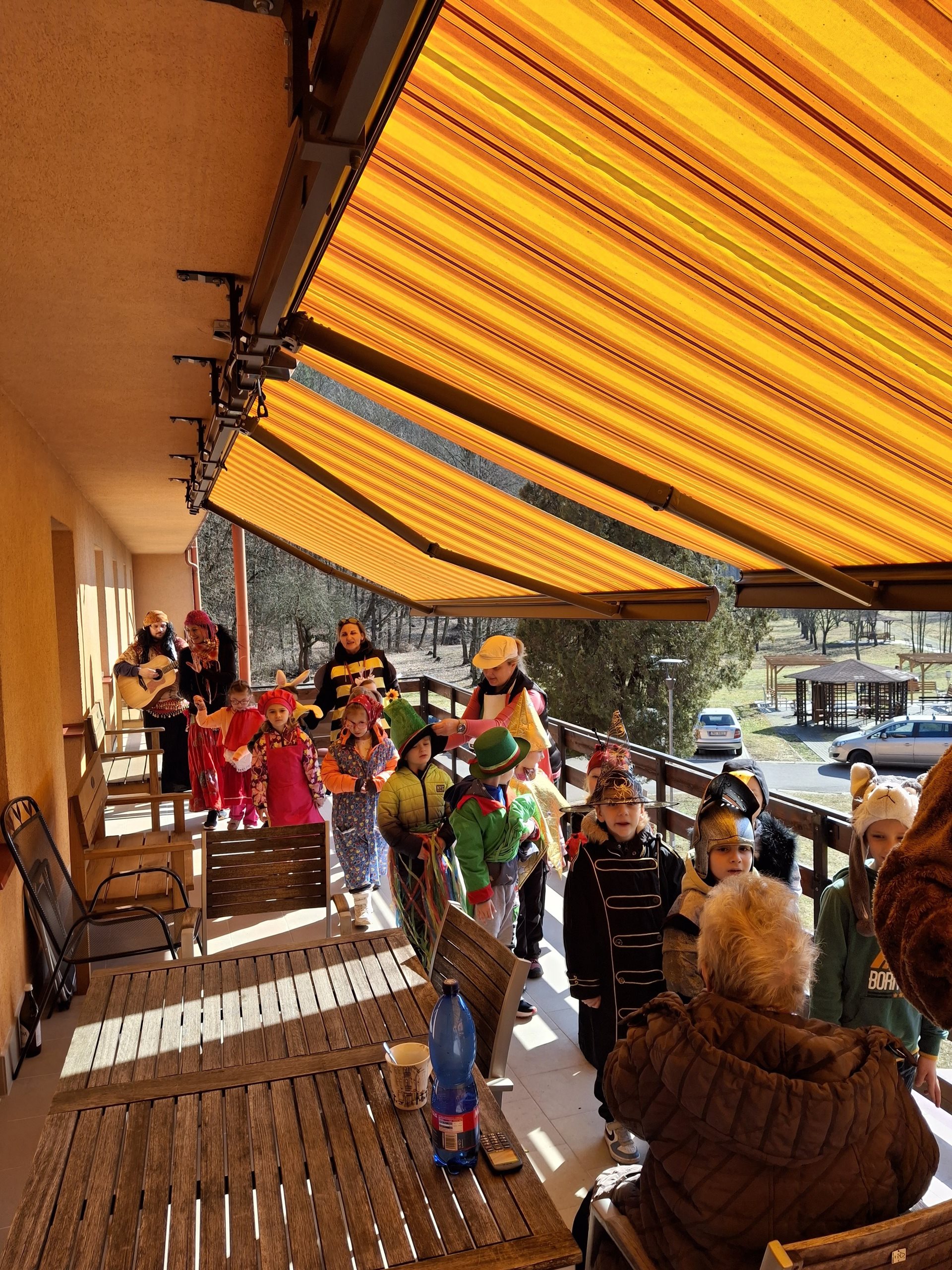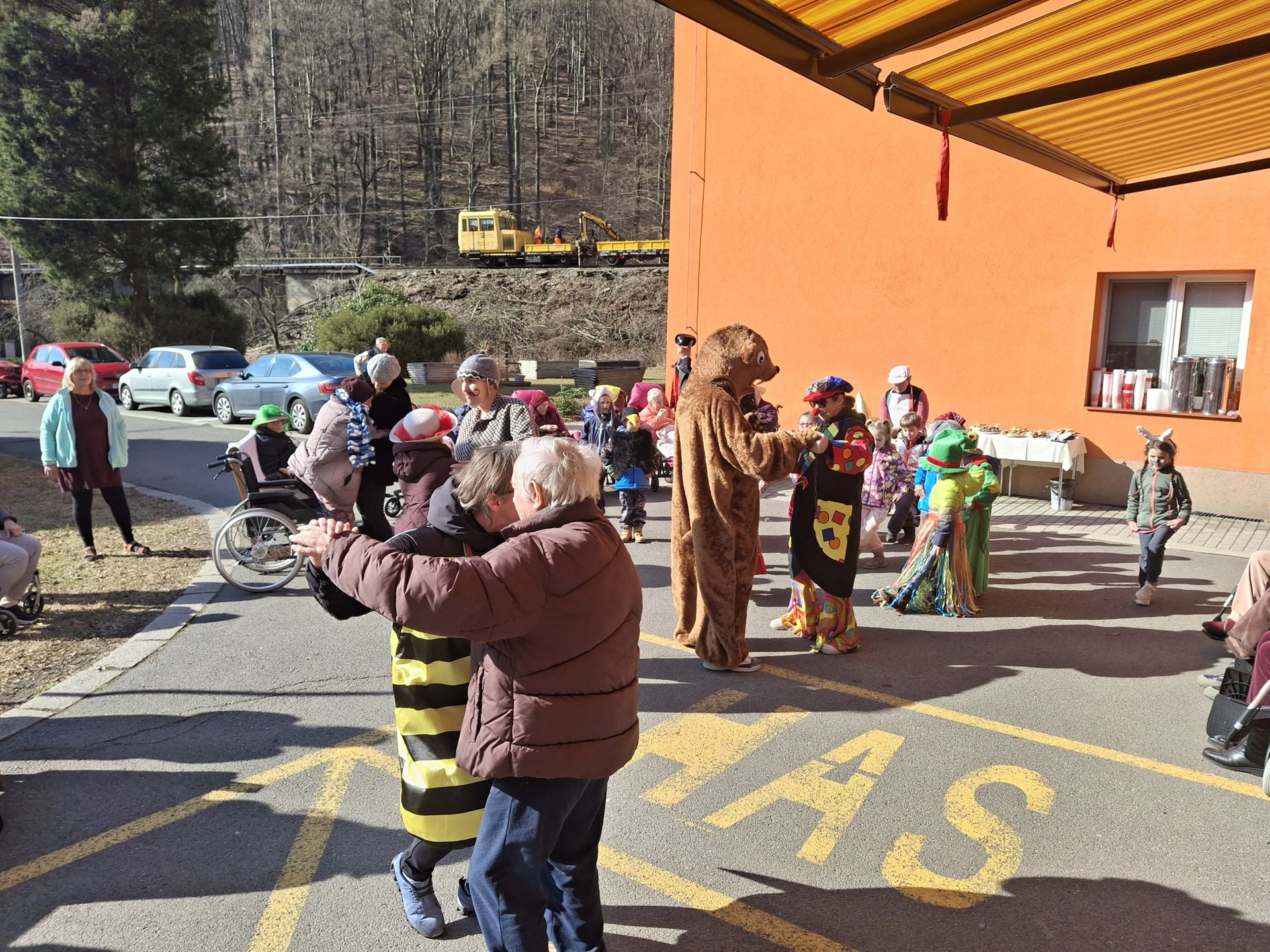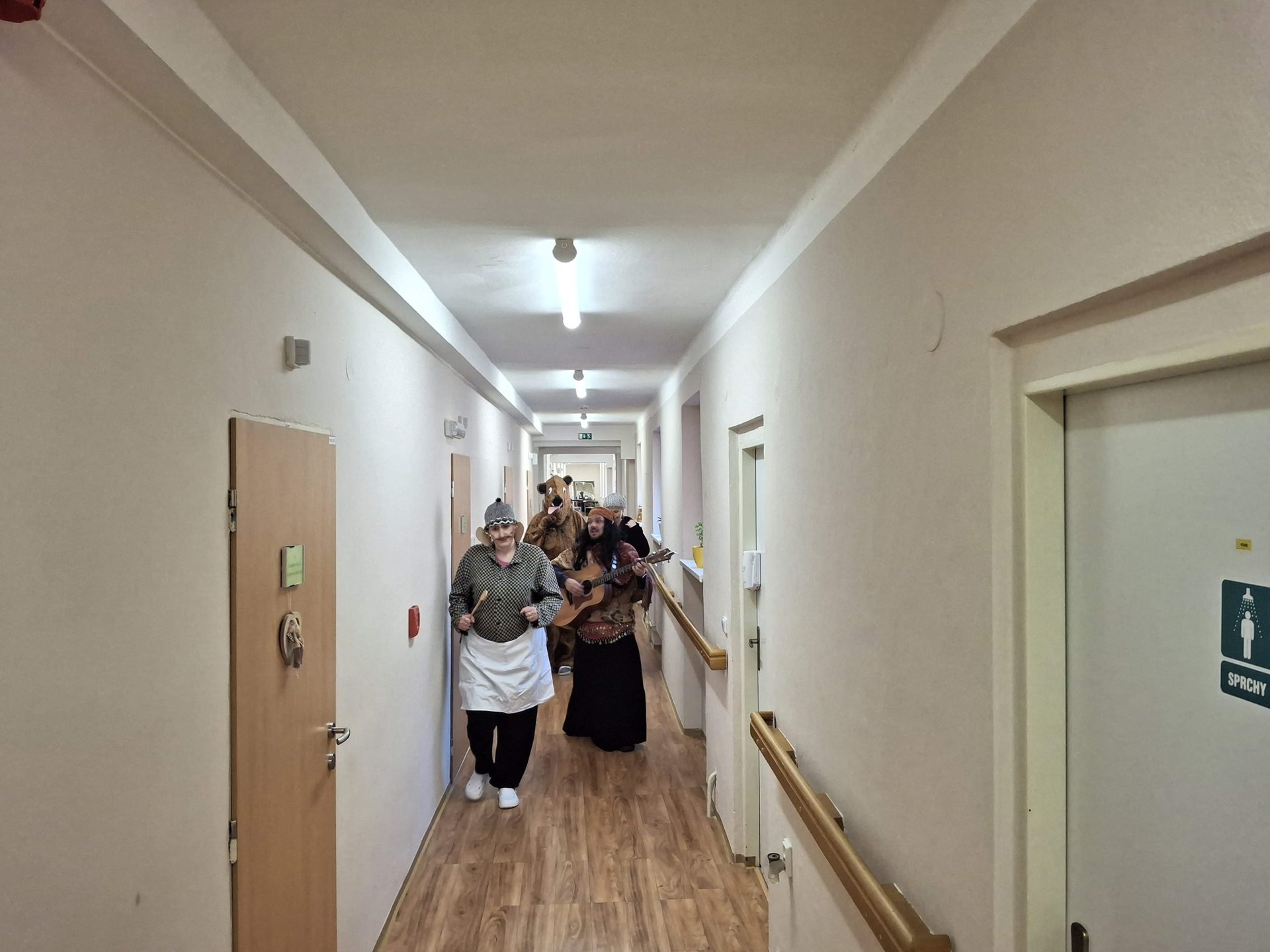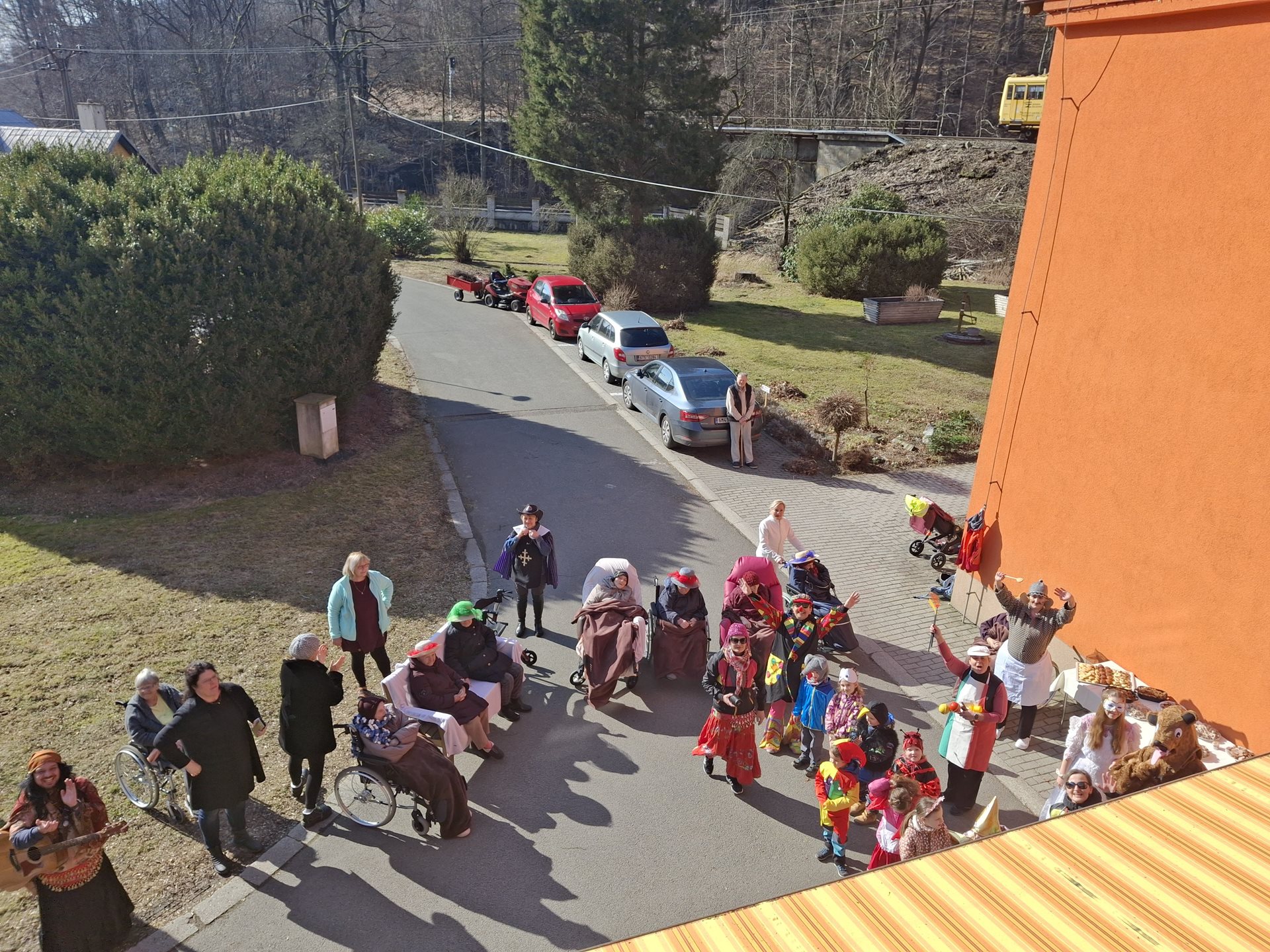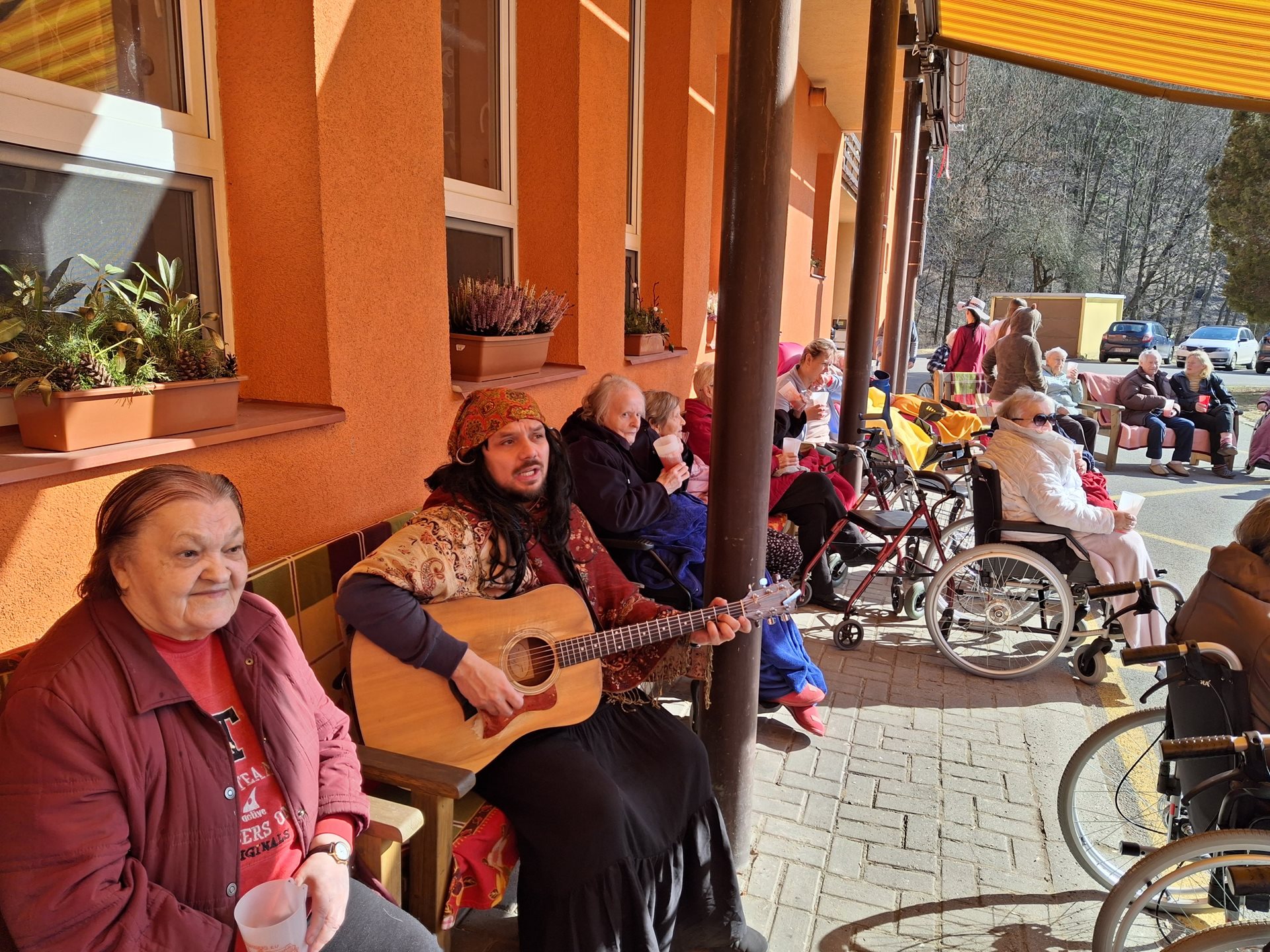 Dne 3. 3. 2026 jsme uspořádali I. ročník „Hrubovodského masopustu“. Naštěstí jsme na to nebyli sami, přizvali jsme děti z místní Mateřské školy Hlubočky. Ty rozhodně nezklamaly a svými krásnými maskami dodaly průvodu skvělou atmosféru. Počasí nám přálo natolik, že se mnozí naši klienti s úsměvem ptali, zda jsme si ho snad objednali, protože to tak opravdu skoro vypadalo. A jak by mohl být masopust bez dobrého pohoštění? Připraveny byly bohatě obložené stoly a velký úspěch měla také výborná tlačenka od místního řezníka. Hudební doprovod zajistil pan Tomáš Velzel a postaral se o pestrý hudební program. Opět se potvrdilo, jak krásné je propojovat generace, naše klienty s místními dětmi. Nezapomněli jsme ani na klienty, kteří se nemohli zúčastnit venkovního posezení. Masopustní průvod v čele s Medvědem proto dorazil přímo za nimi až na jejich pokoje. Byl to nezapomenutelný zážitek a už teď můžeme s radostí oznámit, že příští ročník určitě naváže na ten letošní. Děkujeme všem, kteří se na této krásné akci podíleli.
