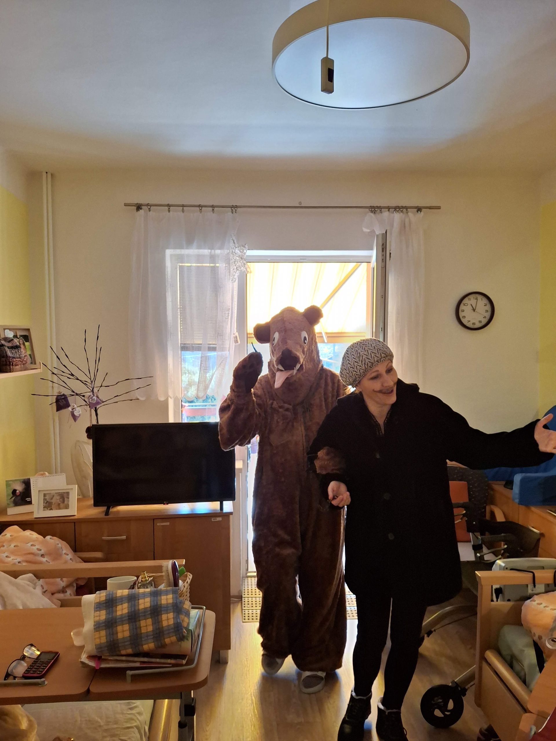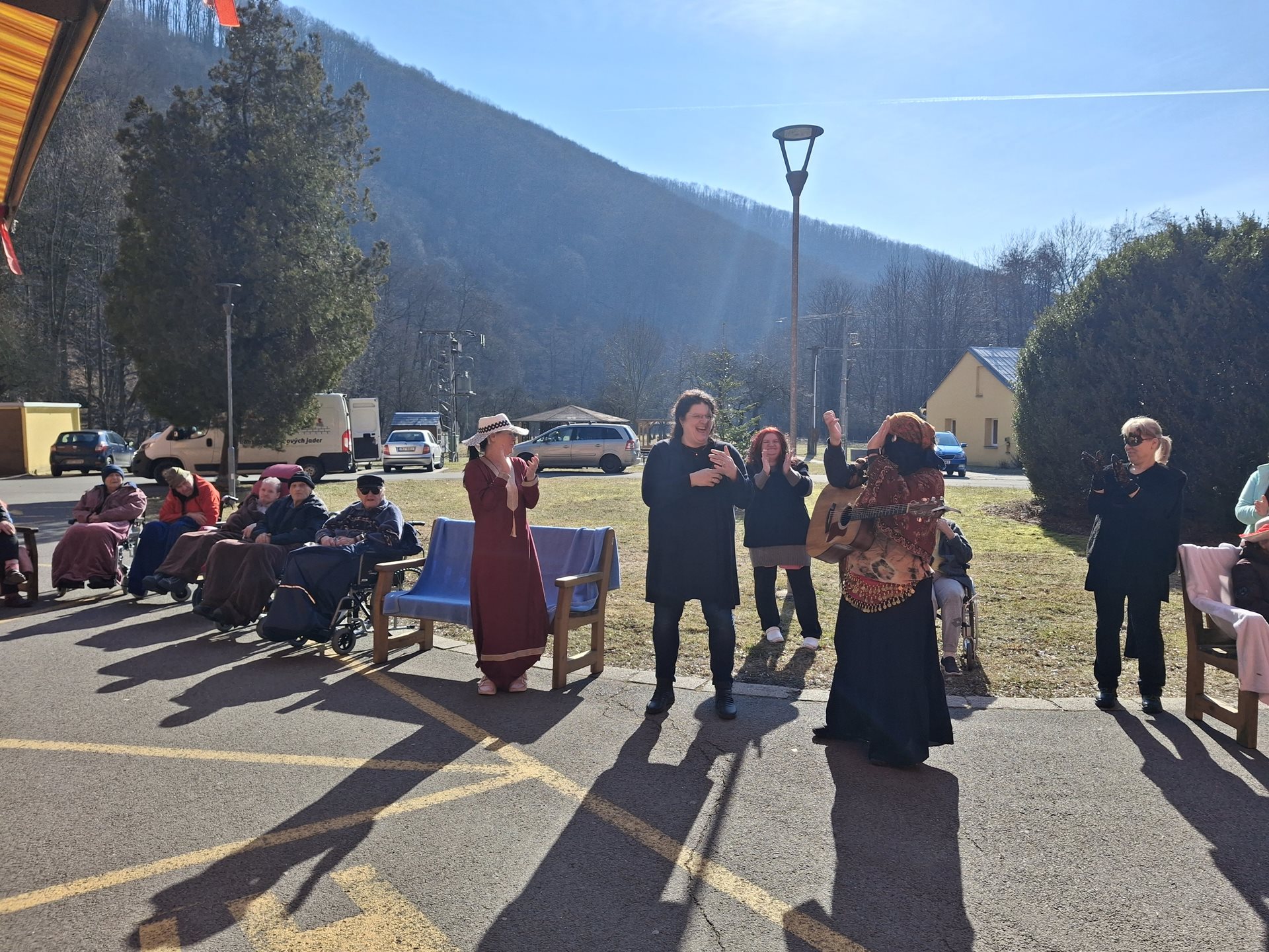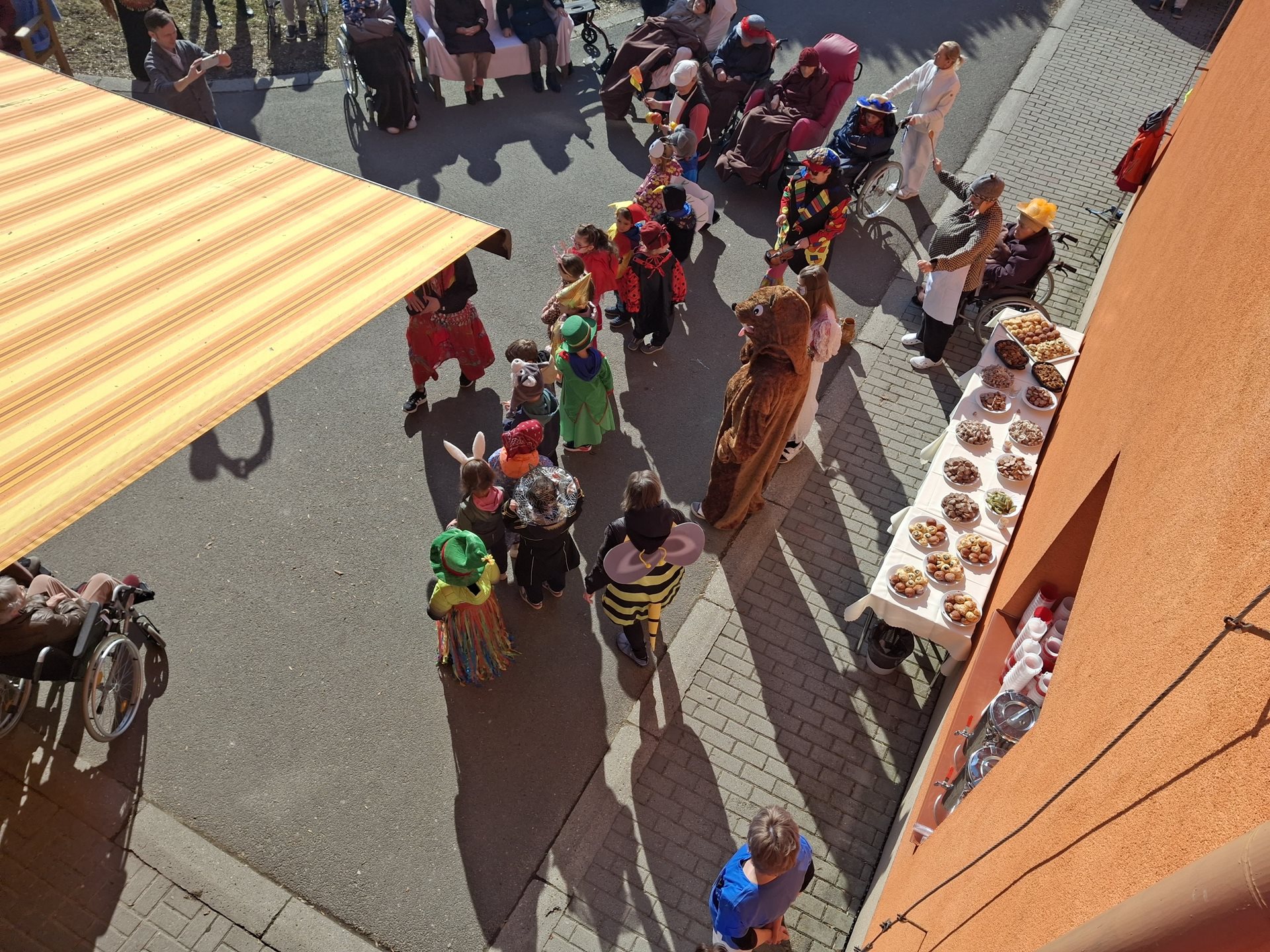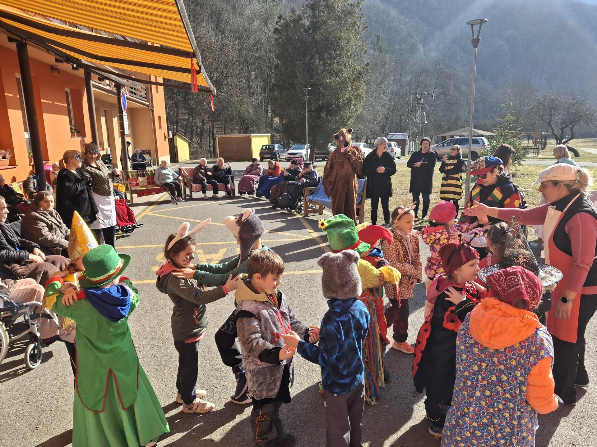 Dne 3. 3. 2026 jsme uspořádali I. ročník „Hrubovodského masopustu“. Naštěstí jsme na to nebyli sami, přizvali jsme děti z místní Mateřské školy Hlubočky. Ty rozhodně nezklamaly a svými krásnými maskami dodaly průvodu skvělou atmosféru. Počasí nám přálo natolik, že se mnozí naši klienti s úsměvem ptali, zda jsme si ho snad objednali, protože to tak opravdu skoro vypadalo. A jak by mohl být masopust bez dobrého pohoštění? Připraveny byly bohatě obložené stoly a velký úspěch měla také výborná tlačenka od místního řezníka. Hudební doprovod zajistil pan Tomáš Velzel a postaral se o pestrý hudební program. Opět se potvrdilo, jak krásné je propojovat generace, naše klienty s místními dětmi. Nezapomněli jsme ani na klienty, kteří se nemohli zúčastnit venkovního posezení. Masopustní průvod v čele s Medvědem proto dorazil přímo za nimi až na jejich pokoje. Byl to nezapomenutelný zážitek a už teď můžeme s radostí oznámit, že příští ročník určitě naváže na ten letošní. Děkujeme všem, kteří se na této krásné akci podíleli.