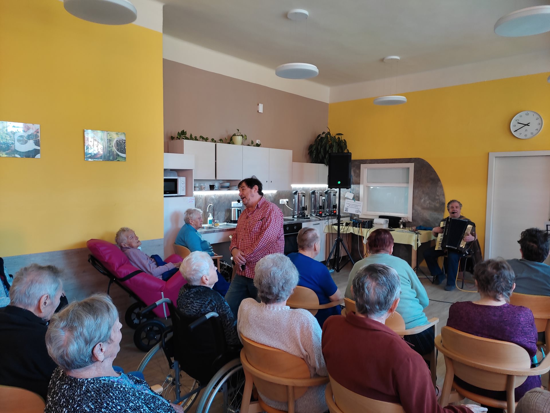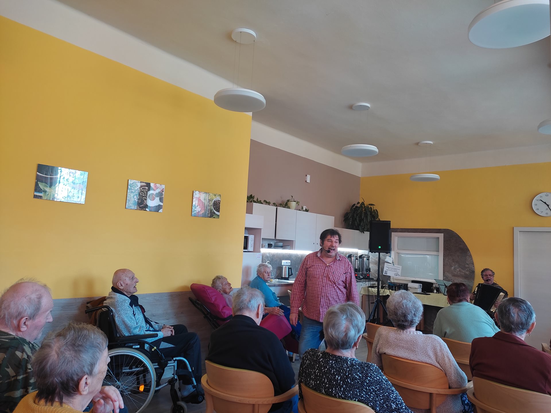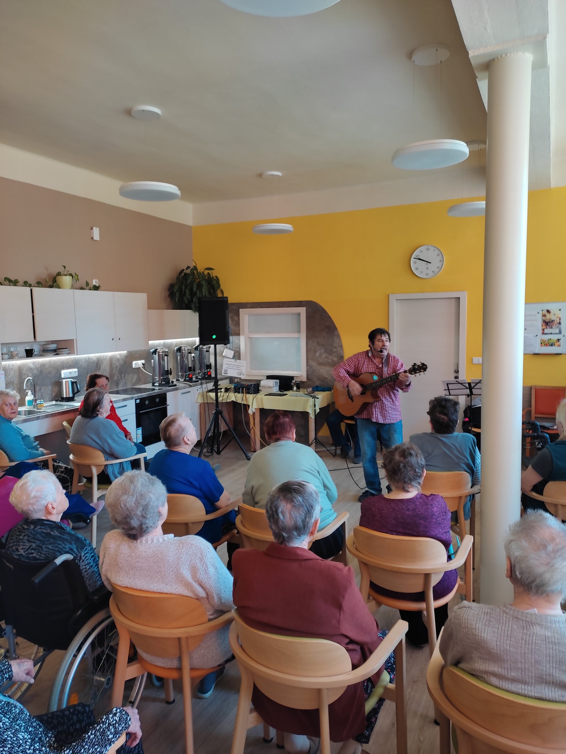 Ve čtvrtek 11. 4. 2024 jsme přivítali nové interprety. Pan Petr Honza nás potěšili živou produkcí lidových písní z různých oblastí Čech, Moravy a Slezska včetně ''Hašlerových písní'' hraných na harmoniku a kytaru se zpěvem. Dále jsme se zaposlouchali i do populárních, folkových a country písní. A došlo i na tanec. Bylo to velmi příjemné a těšíme se na další setkání.