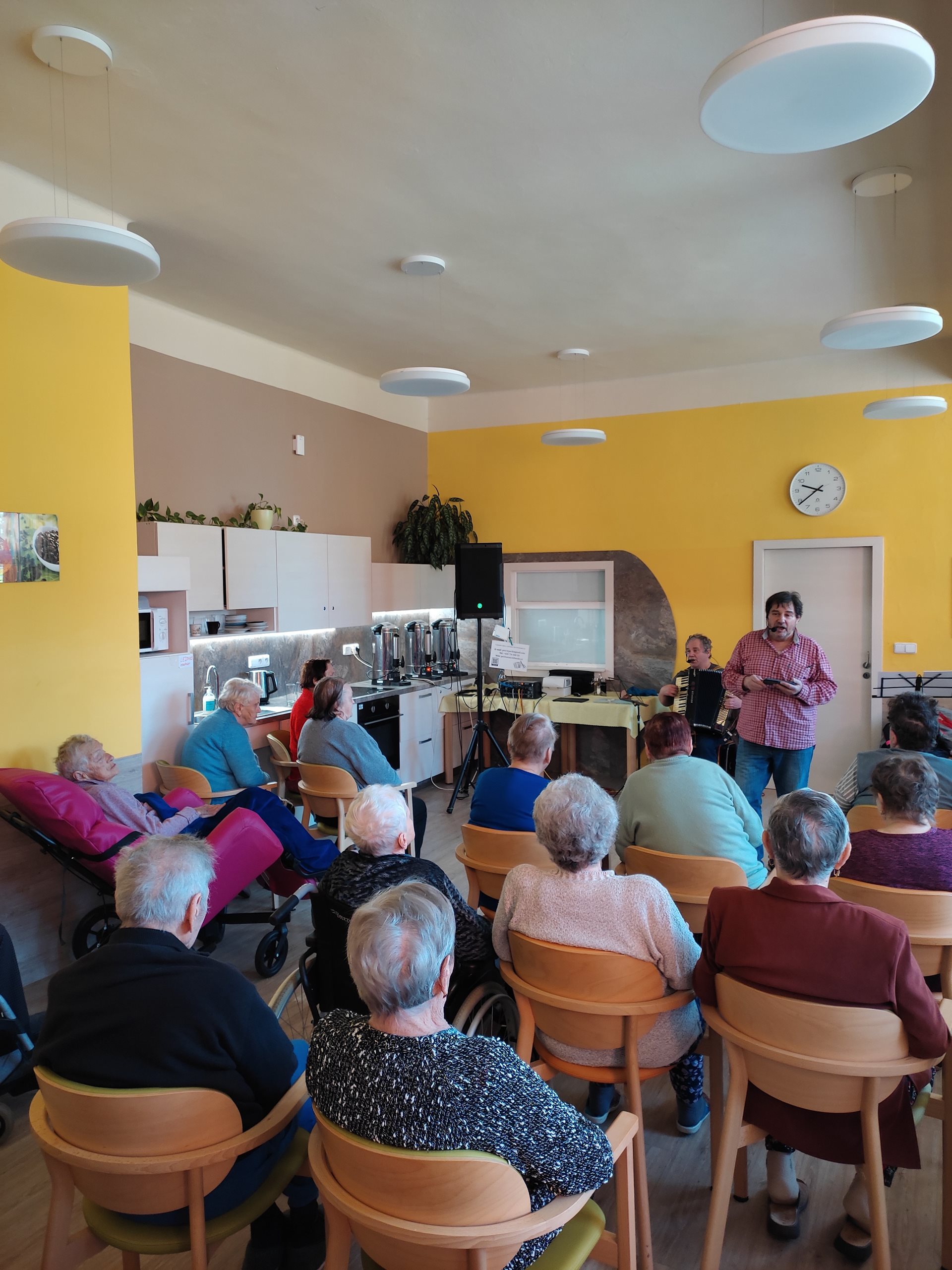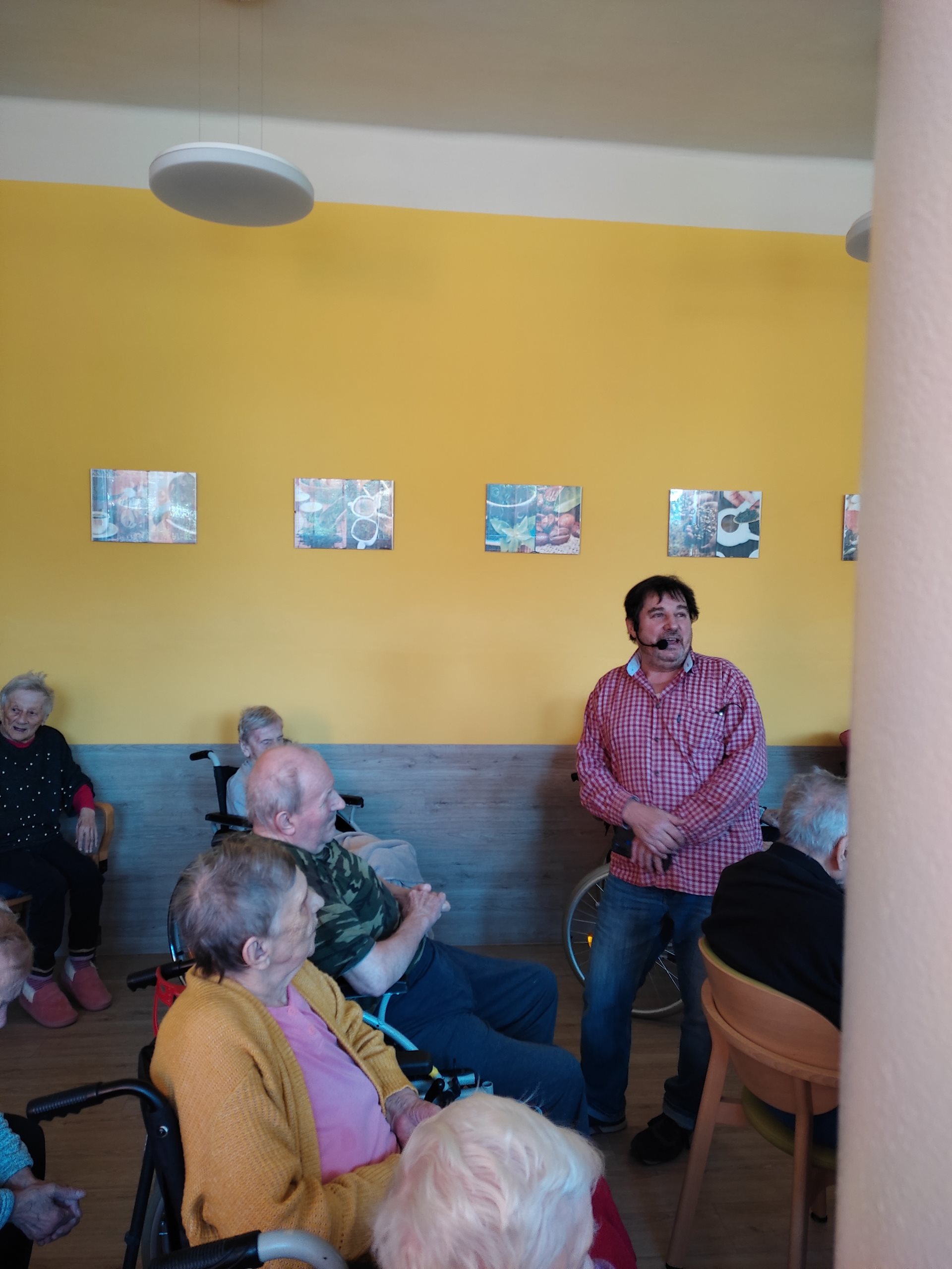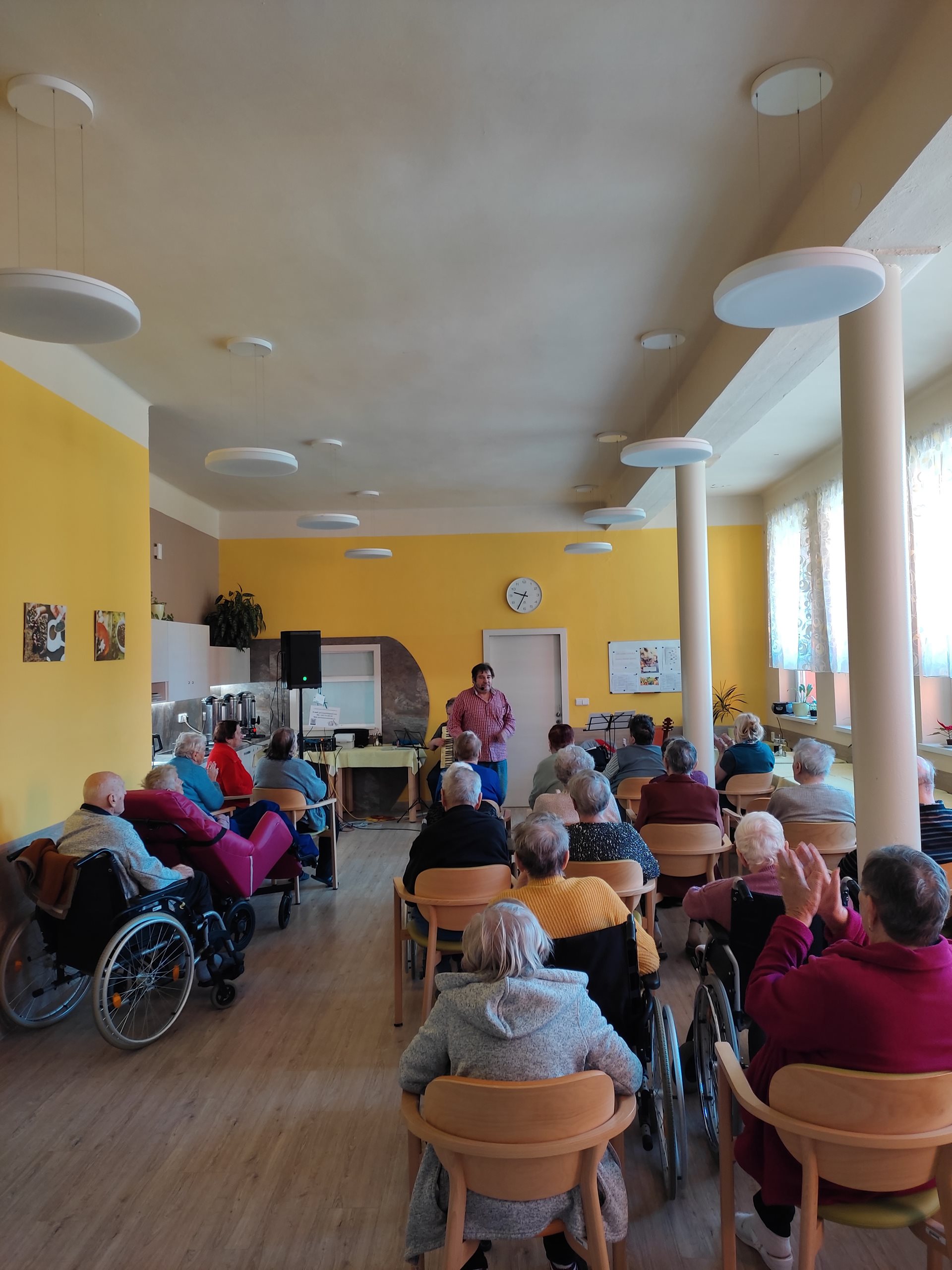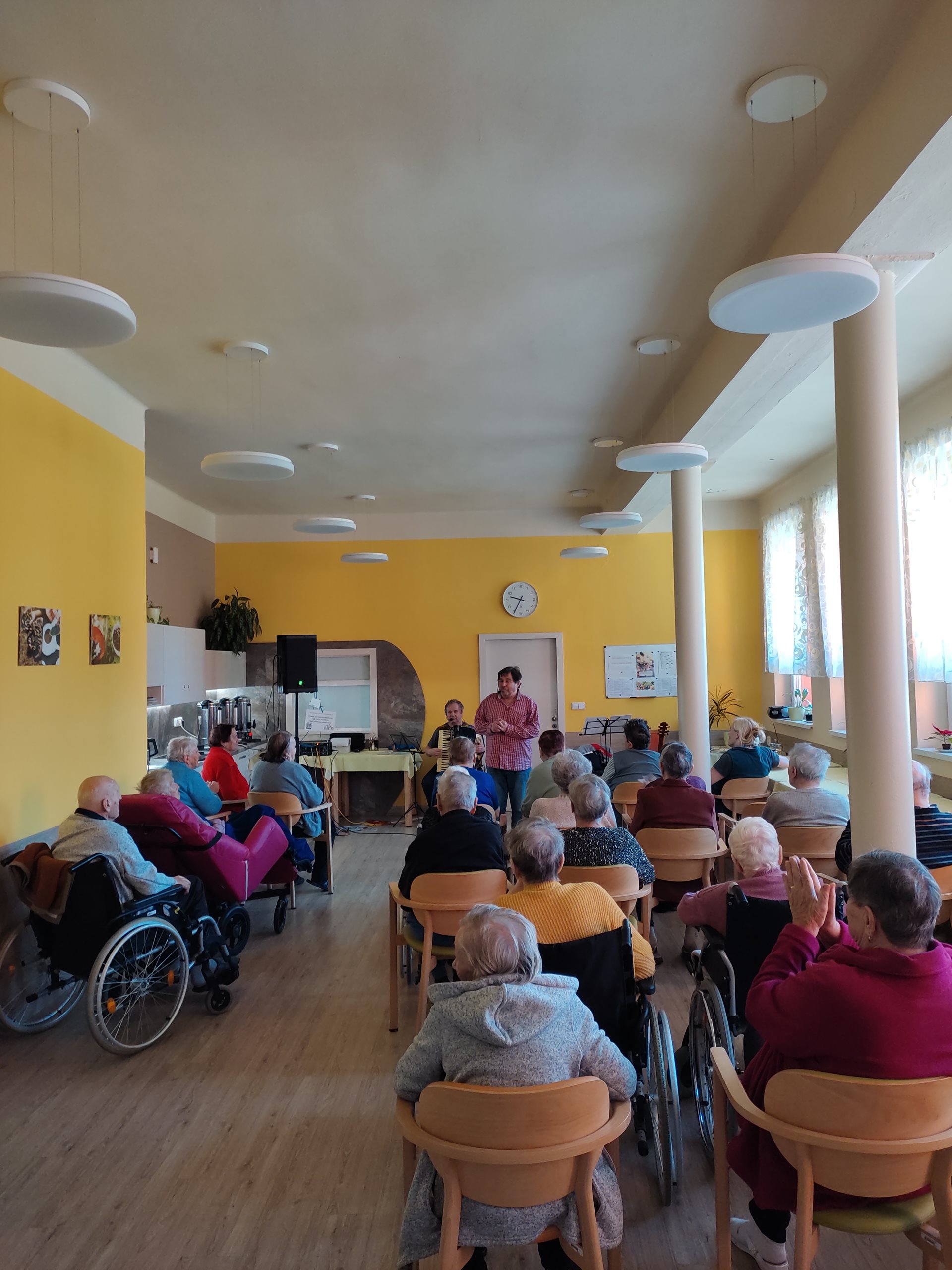 Ve čtvrtek 11. 4. 2024 jsme přivítali nové interprety. Pan Petr Honza nás potěšili živou produkcí lidových písní z různých oblastí Čech, Moravy a Slezska včetně ''Hašlerových písní'' hraných na harmoniku a kytaru se zpěvem. Dále jsme se zaposlouchali i do populárních, folkových a country písní. A došlo i na tanec. Bylo to velmi příjemné a těšíme se na další setkání.