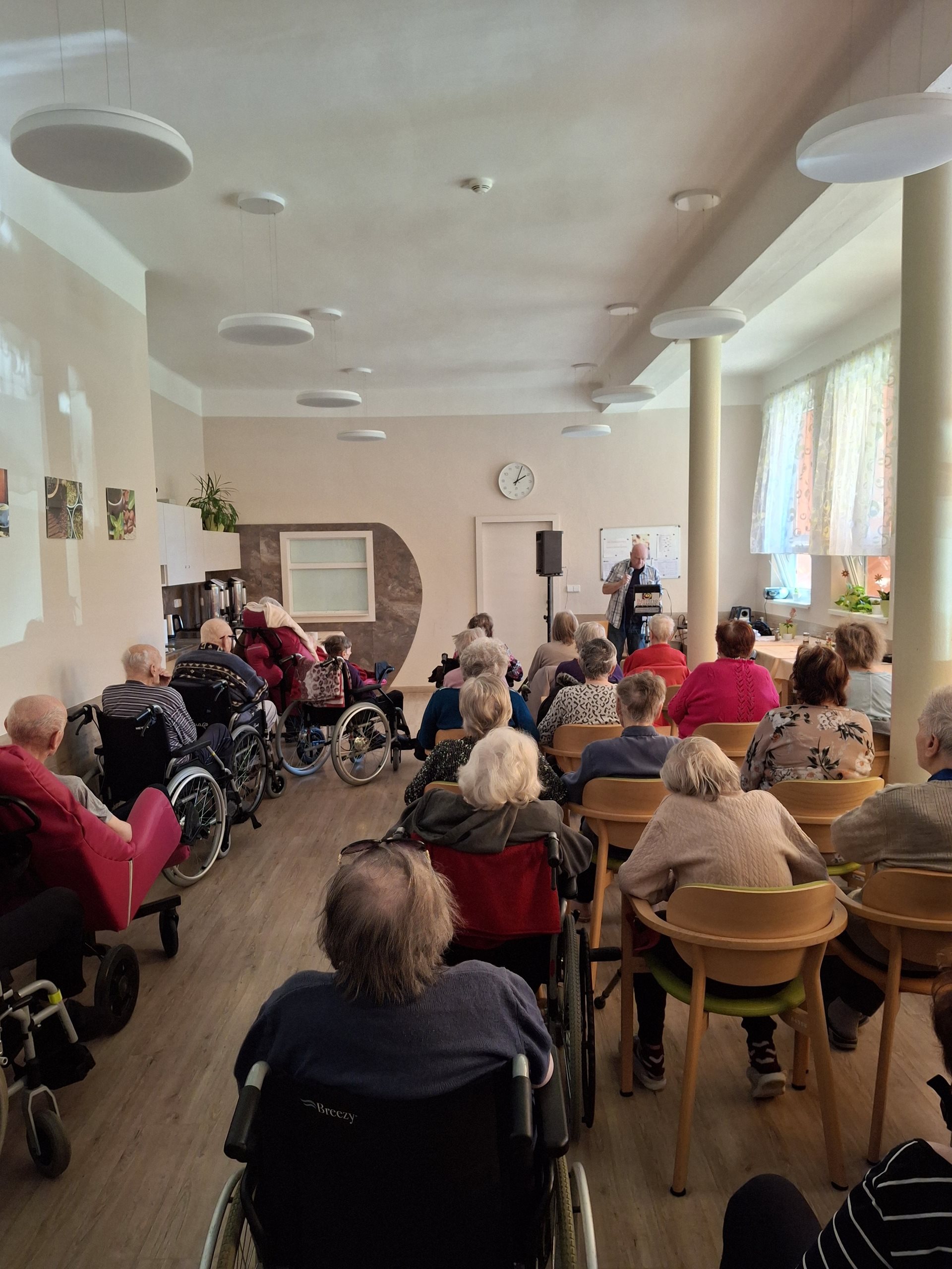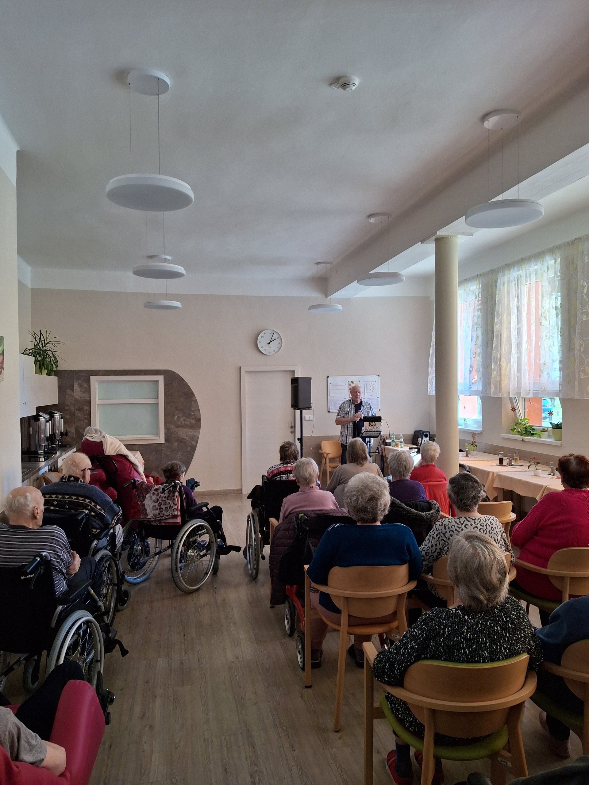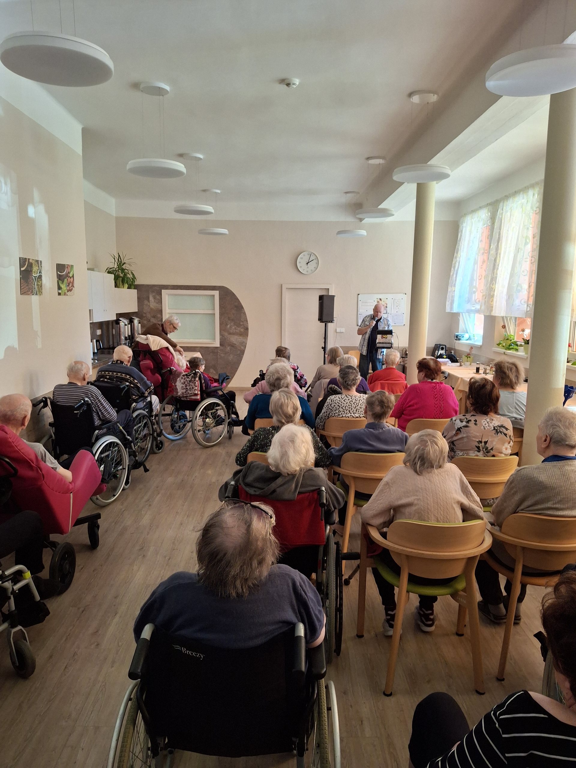 Byl pátek odpoledne a my jsme se rozhodli zpříjemnit si čas hudbou. Taková chvíle je vítaná, protože hudba má moc přinést radost, uvolnění a propojit lidi napříč generacemi. Tentokrát jsme pozvali pana Kubeše, který měl připravený pestrý repertoár, jenž oslovil každého. A to od lidových melodií po populární skladby z různých období. Některé písně vzbudily příjemné vzpomínky a někteří si i zazpívali, což přispělo k tomu, že celé odpoledne bylo plné pohody. Těšíme se na další hudební odpoledne, které přinese opět krásné chvíle a nezapomenutelné zážitky.