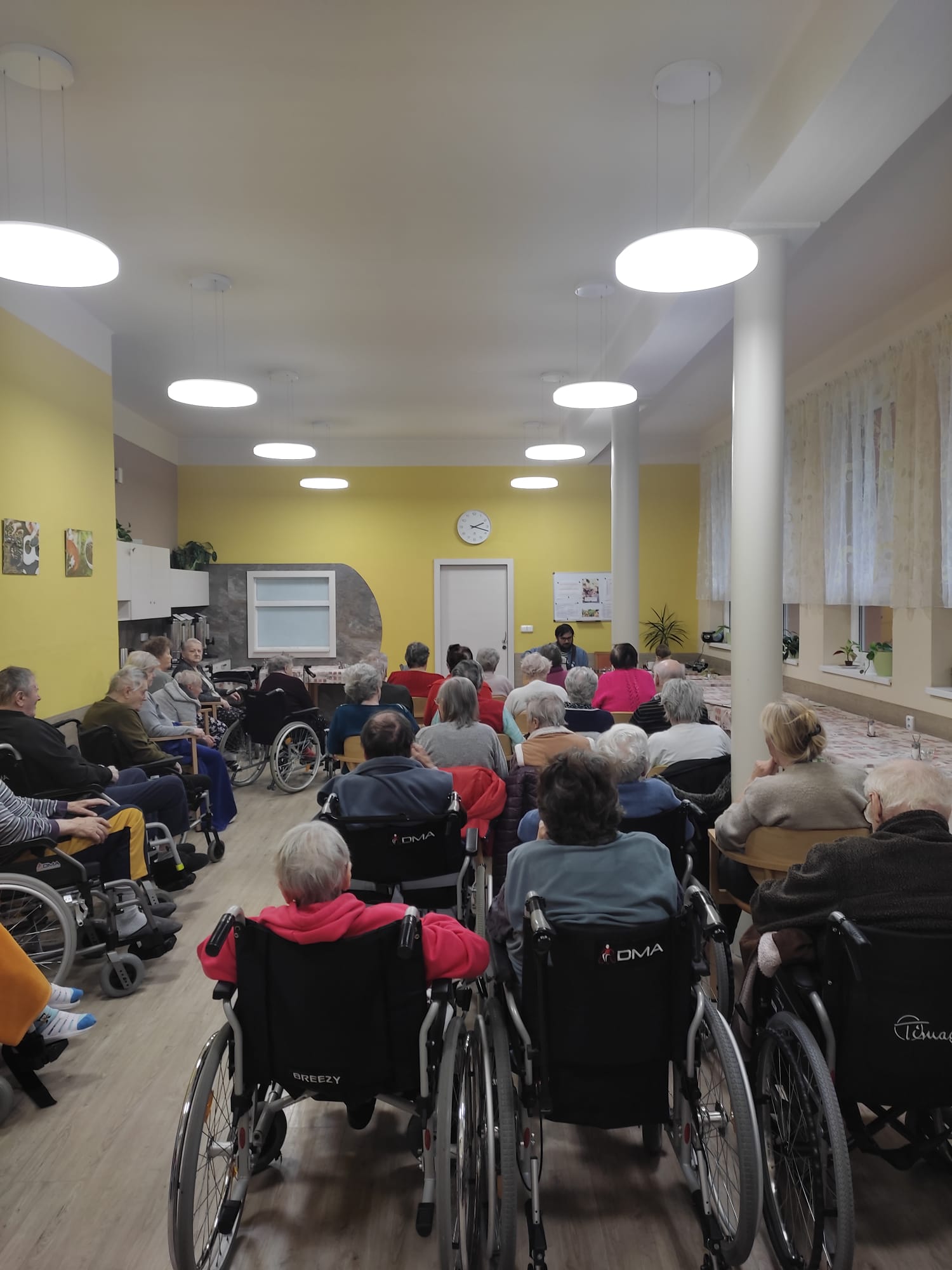 Dnes 18. 11. 2024 jsme přivítali nového interpreta, kterým je Tomáš Velzel. Sešli jsme se v hojném počtu. Moc příjemná chvilka, kdy jsme se zaposlouchali do krásného hlasu a známých písní.