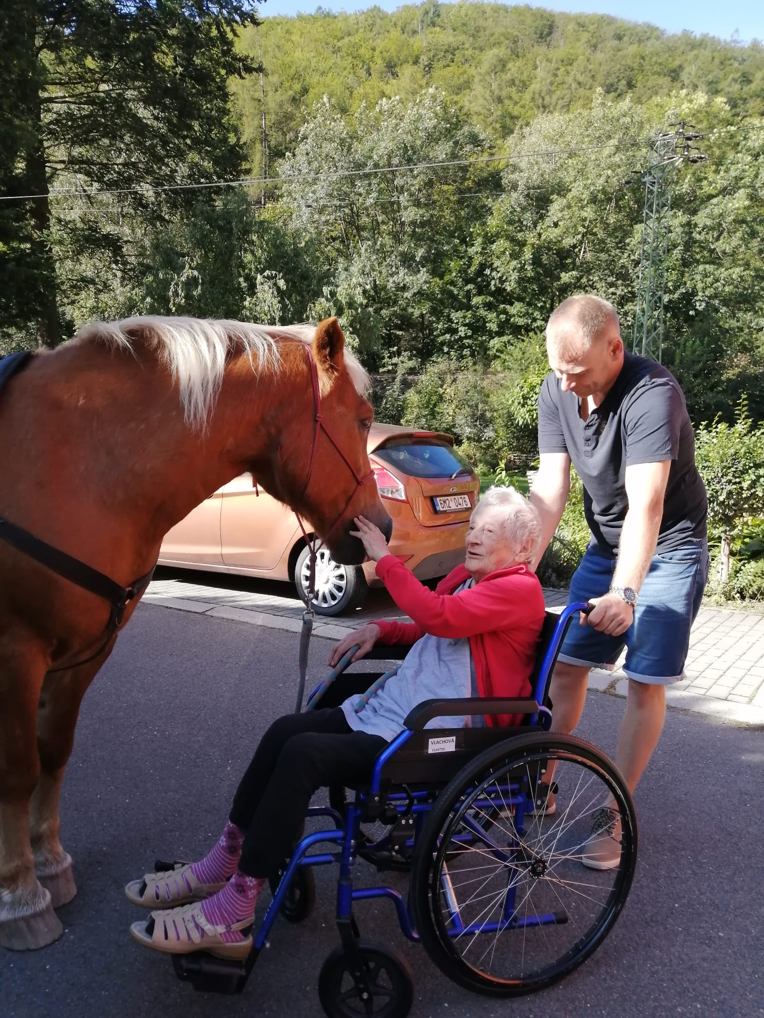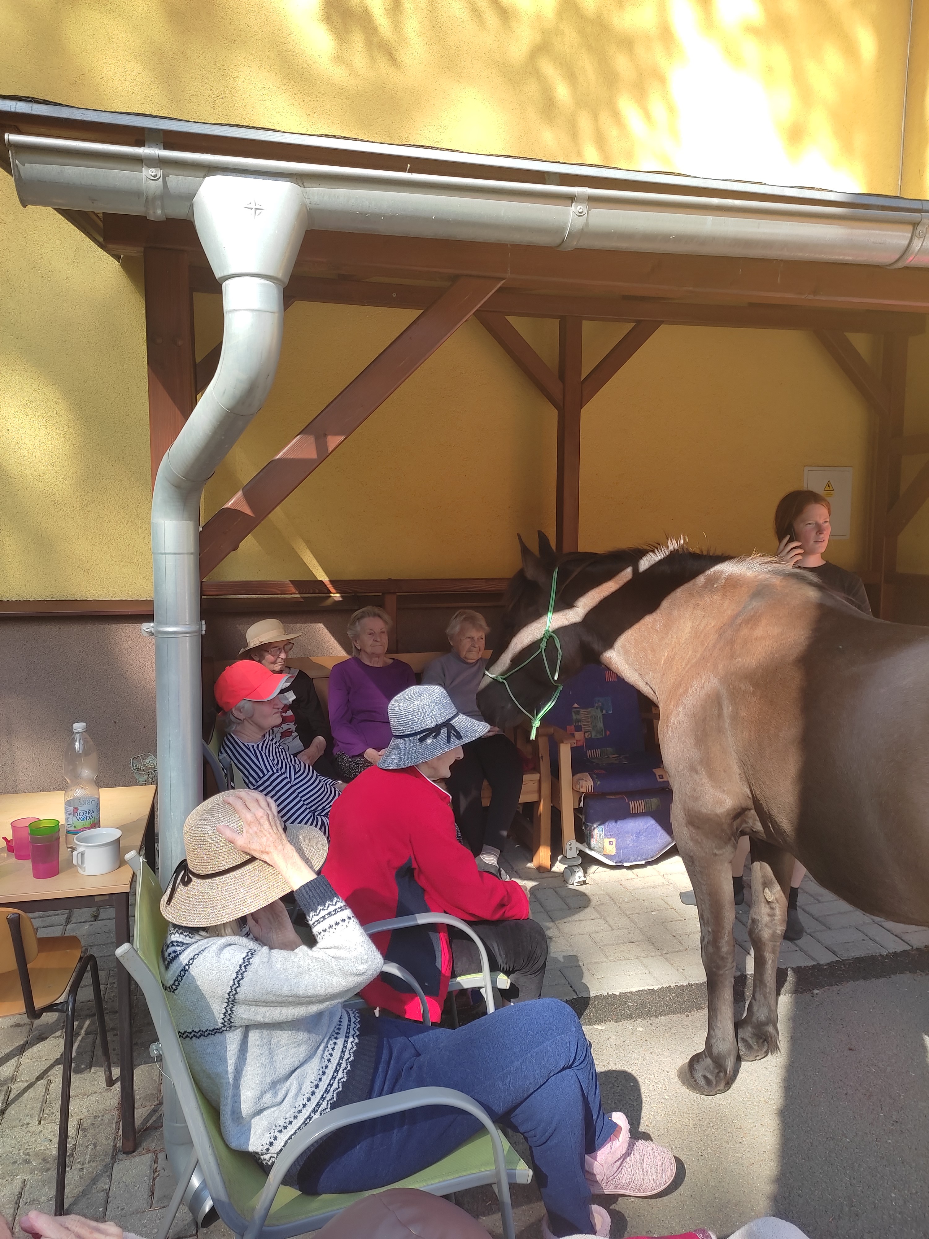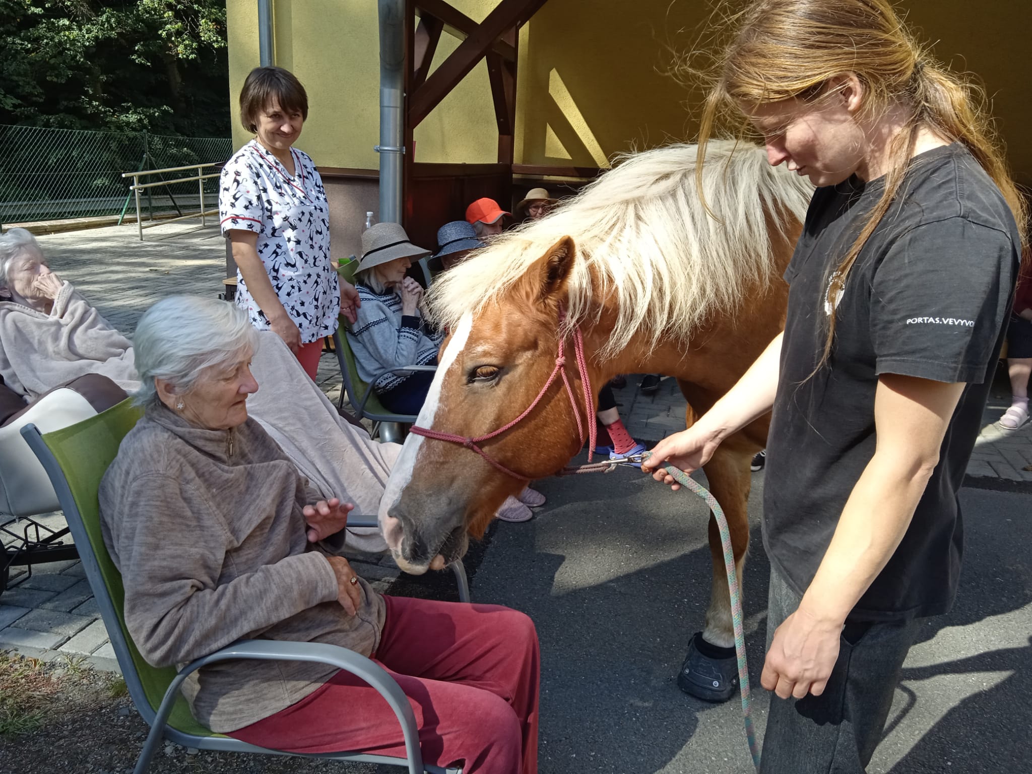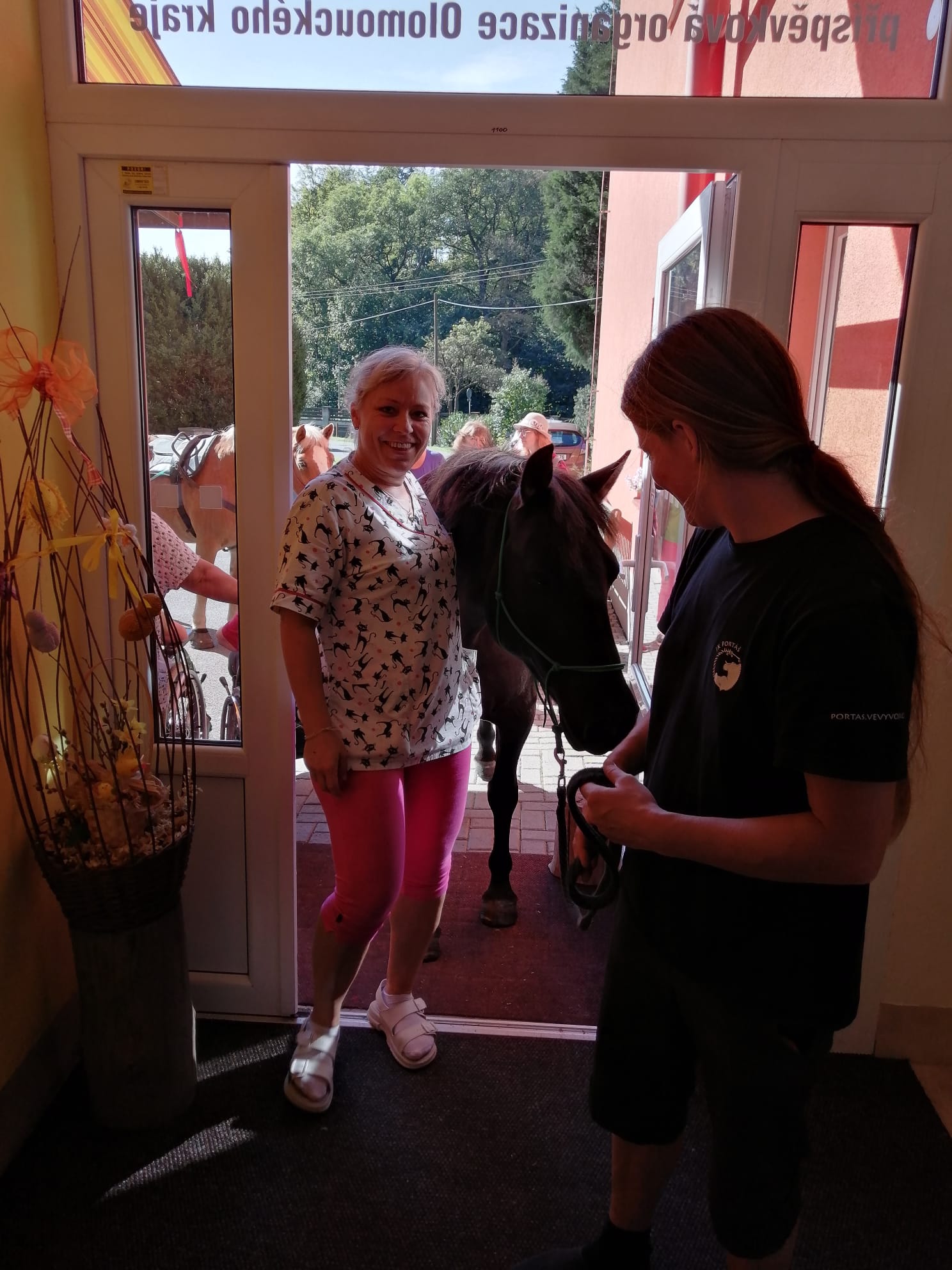 Opět jsme přivítali zvířecí kamarády. Bylo krásné teplé počasí. Našla se i odvážná uživatelka, která si na koníka sedla. Bylo to moc milé a příjemné dopoledne. Moc děkujeme a koníky na dálku zdravíme.