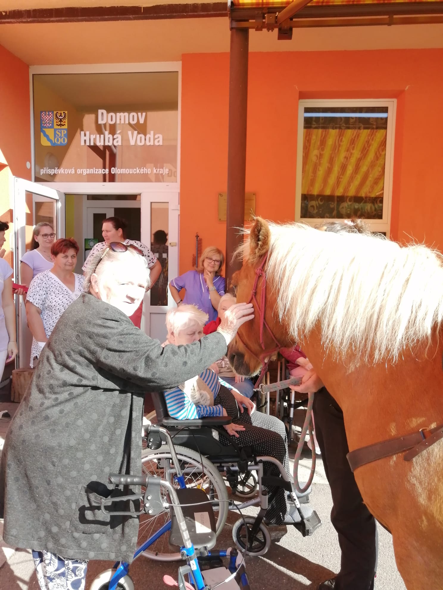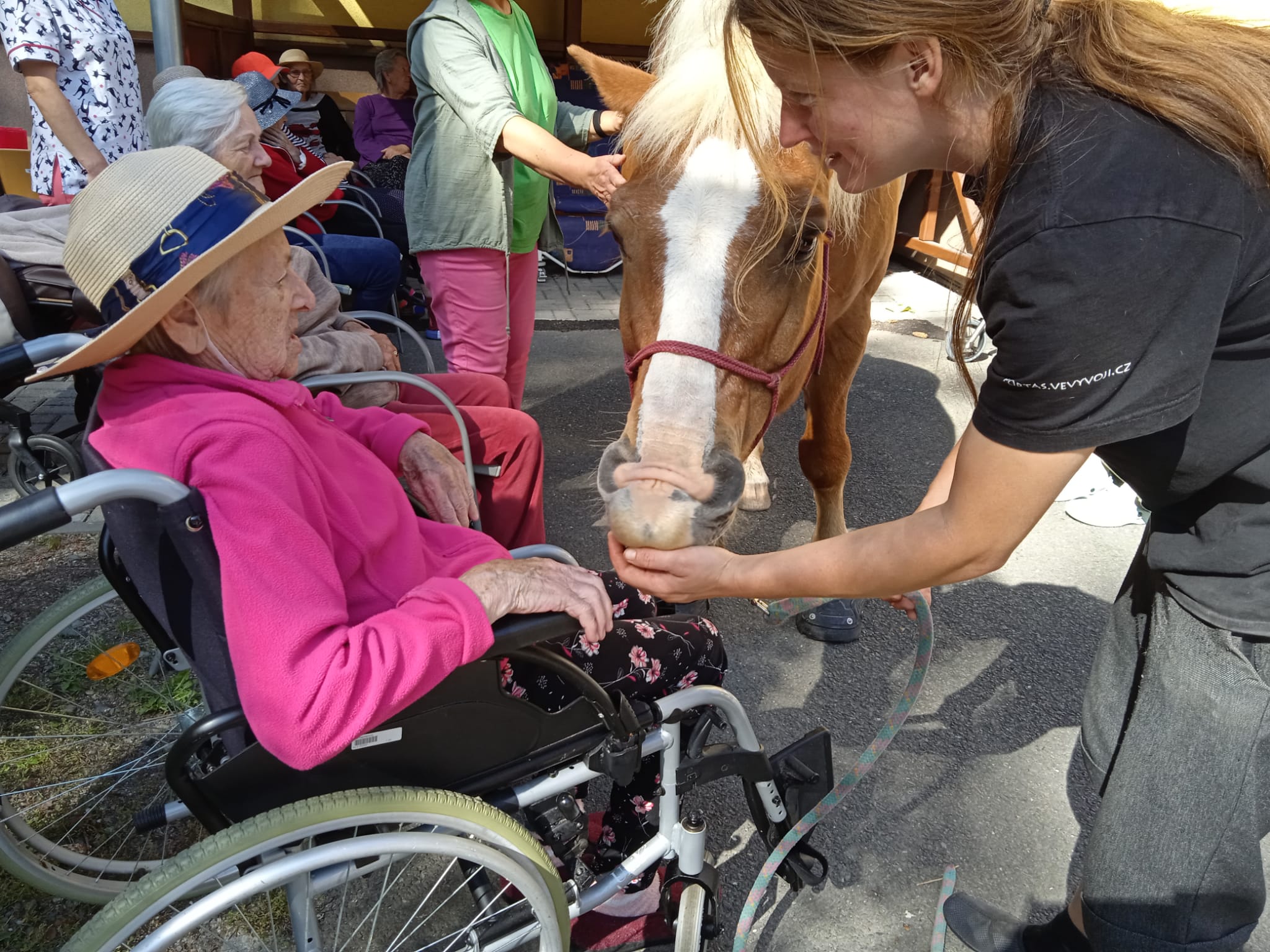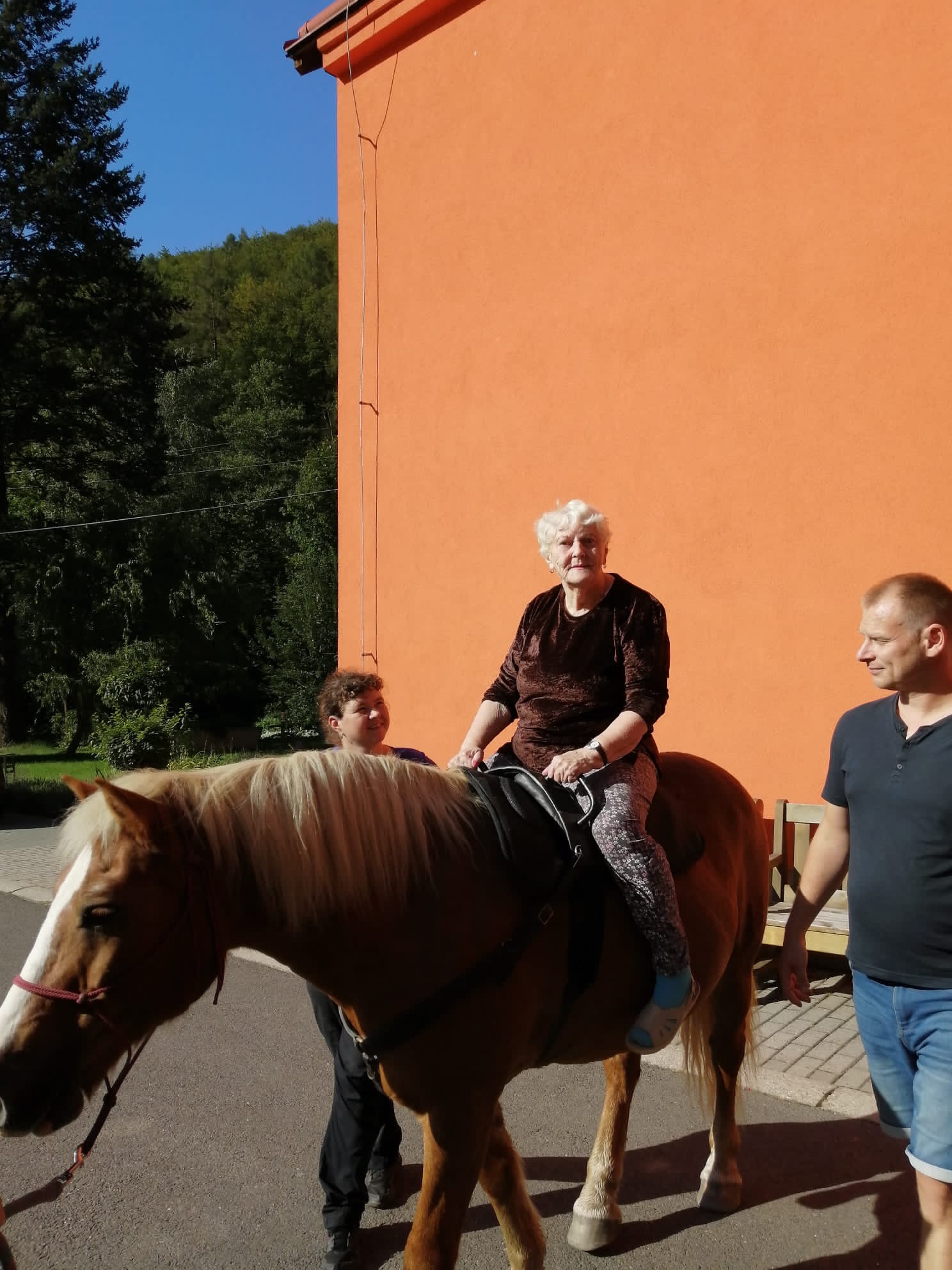 Opět jsme přivítali zvířecí kamarády. Bylo krásné teplé počasí. Našla se i odvážná uživatelka, která si na koníka sedla. Bylo to moc milé a příjemné dopoledne. Moc děkujeme a koníky na dálku zdravíme.