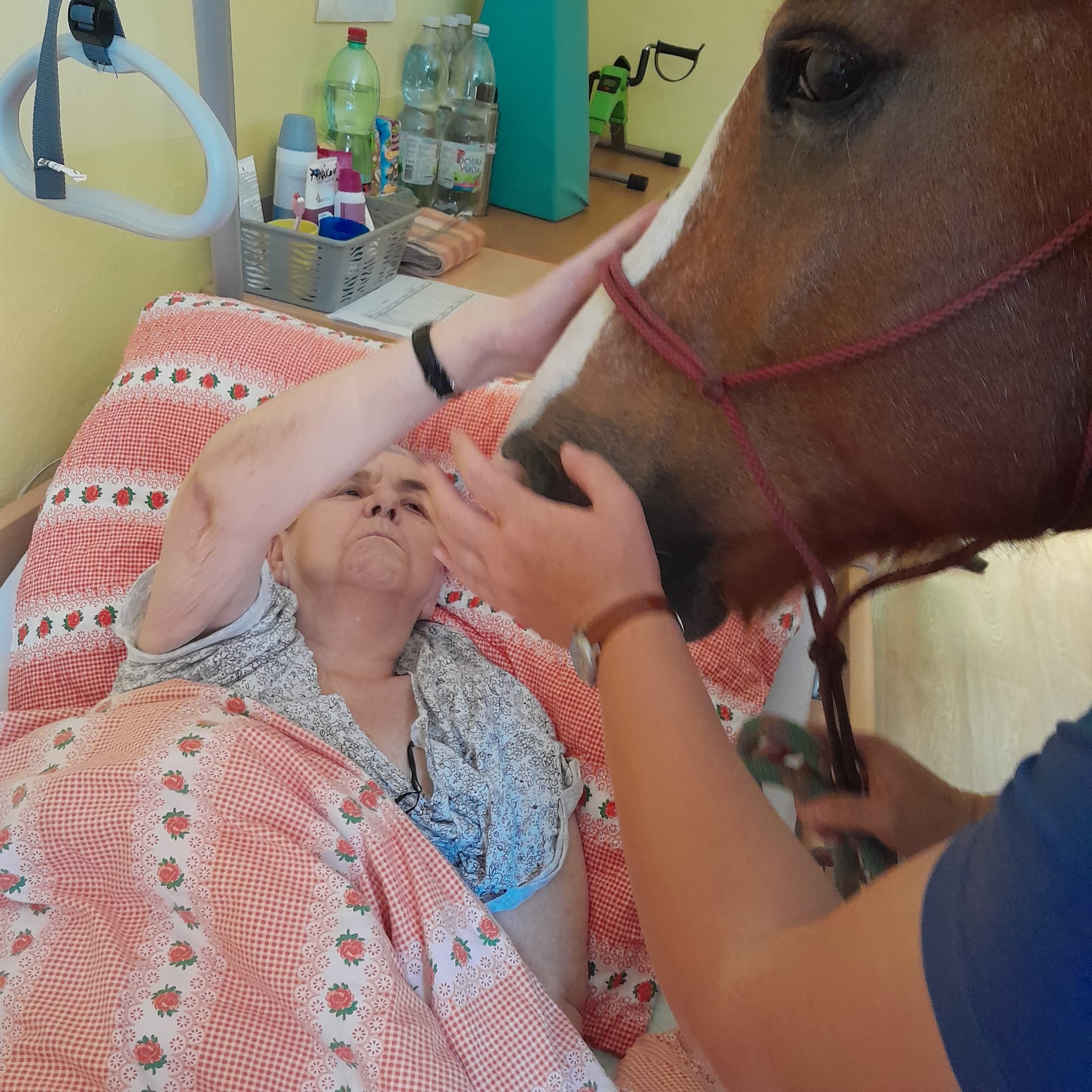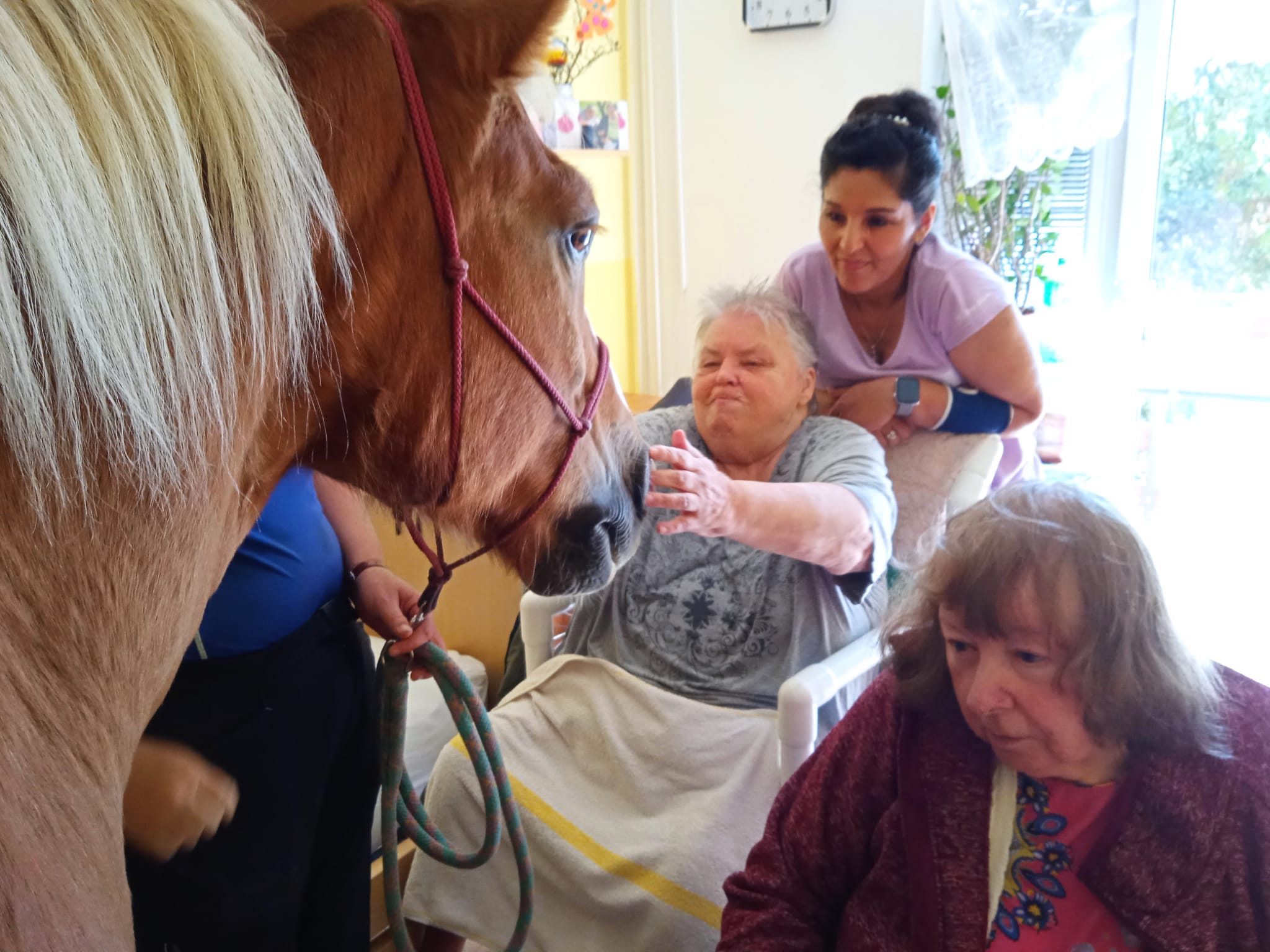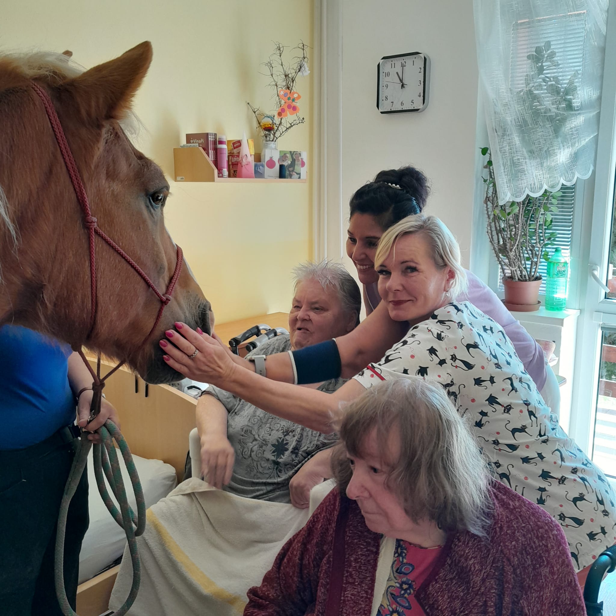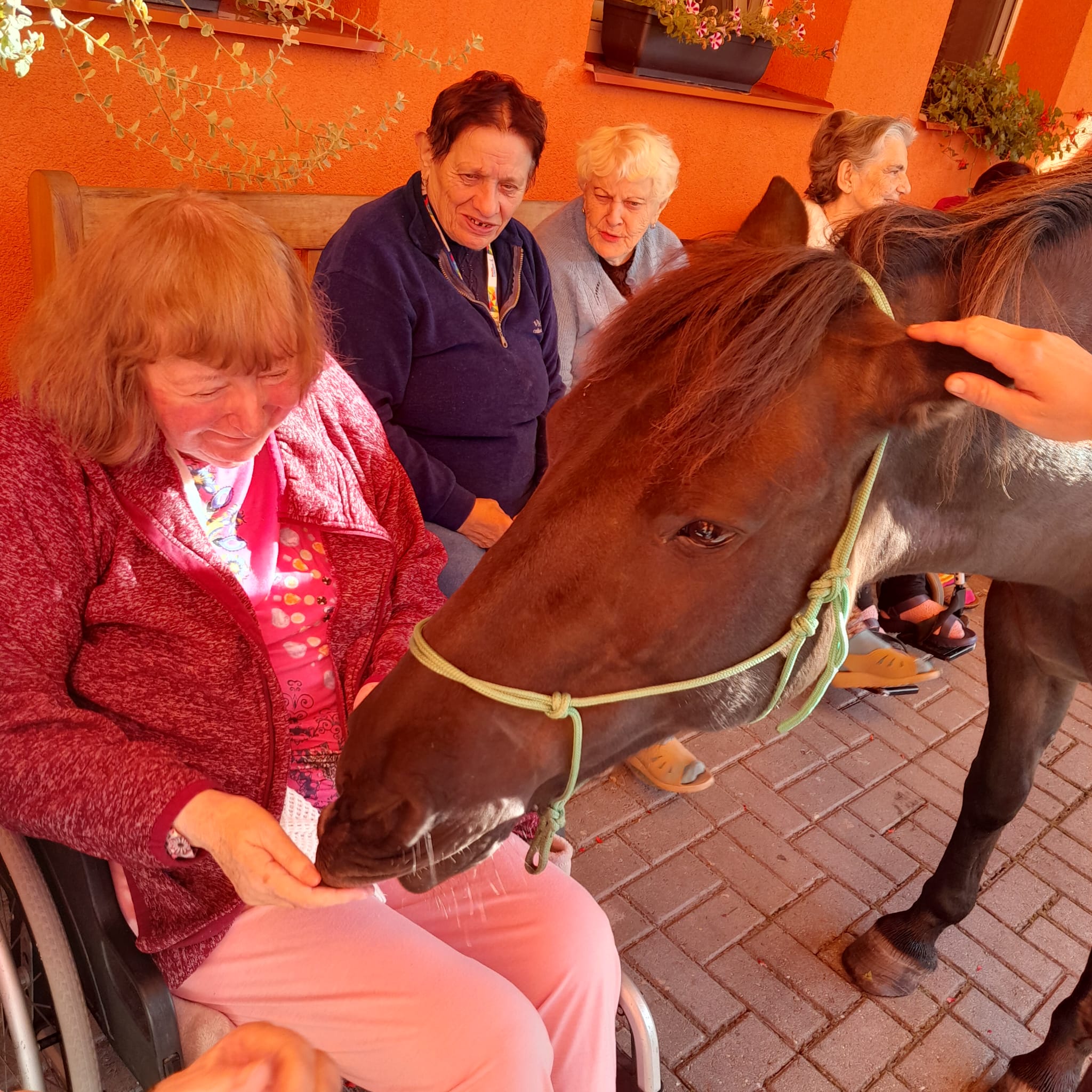 Opět jsme přivítali zvířecí kamarády. Bylo krásné teplé počasí. Našla se i odvážná uživatelka, která si na koníka sedla. Bylo to moc milé a příjemné dopoledne. Moc děkujeme a koníky na dálku zdravíme.