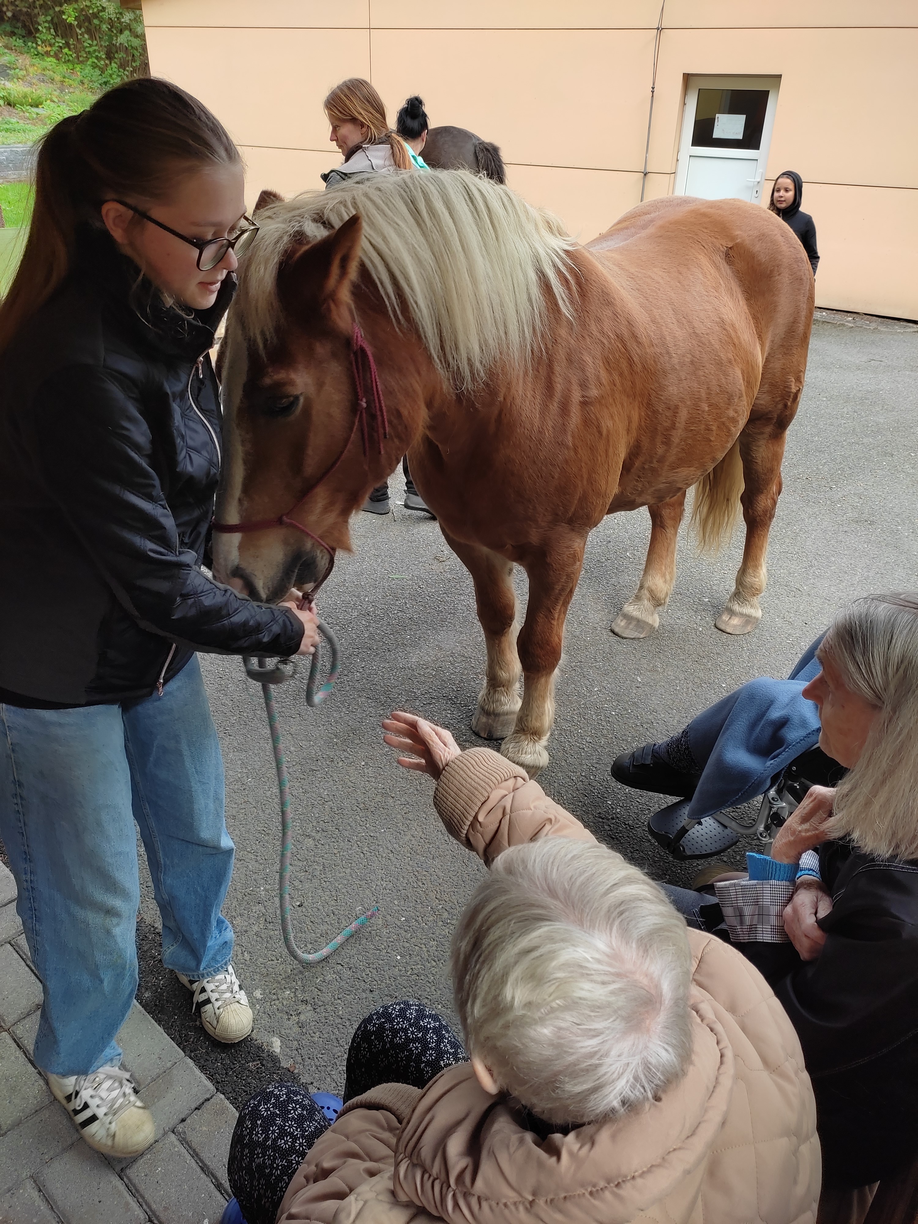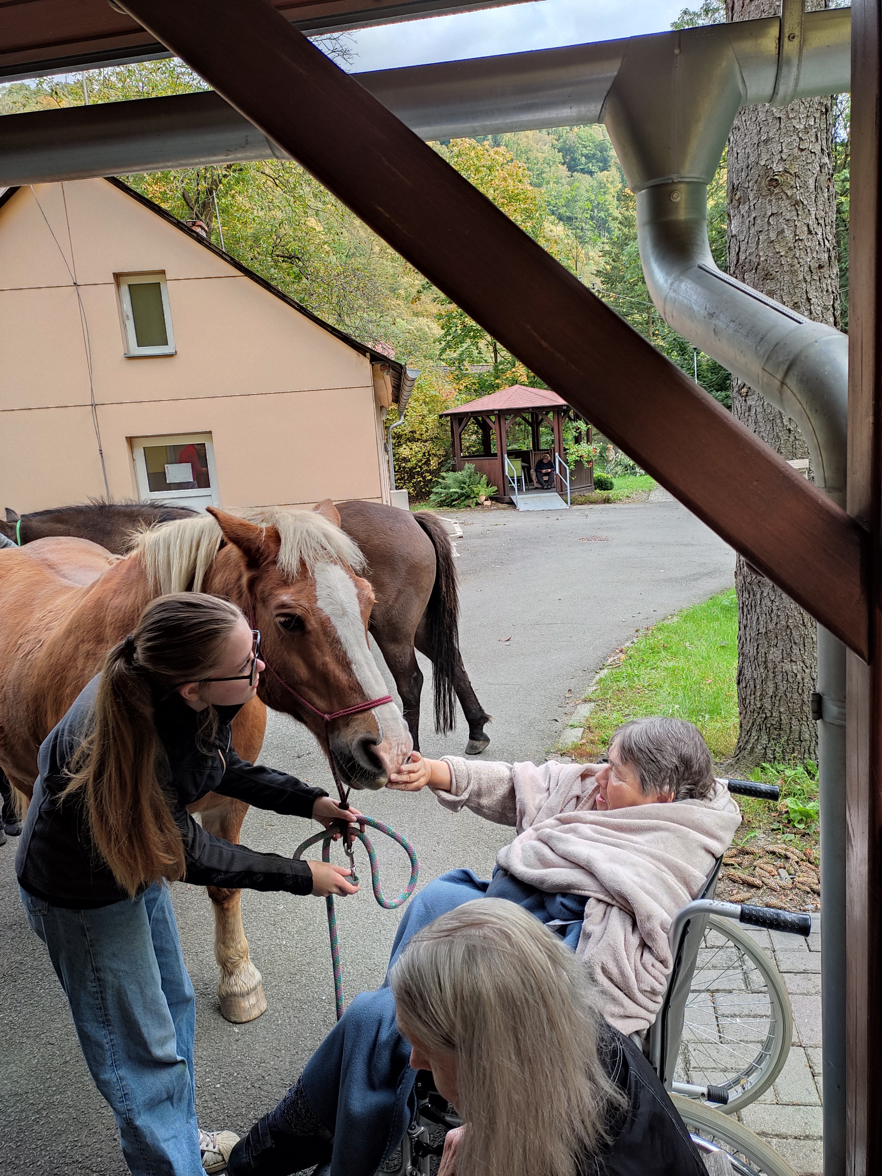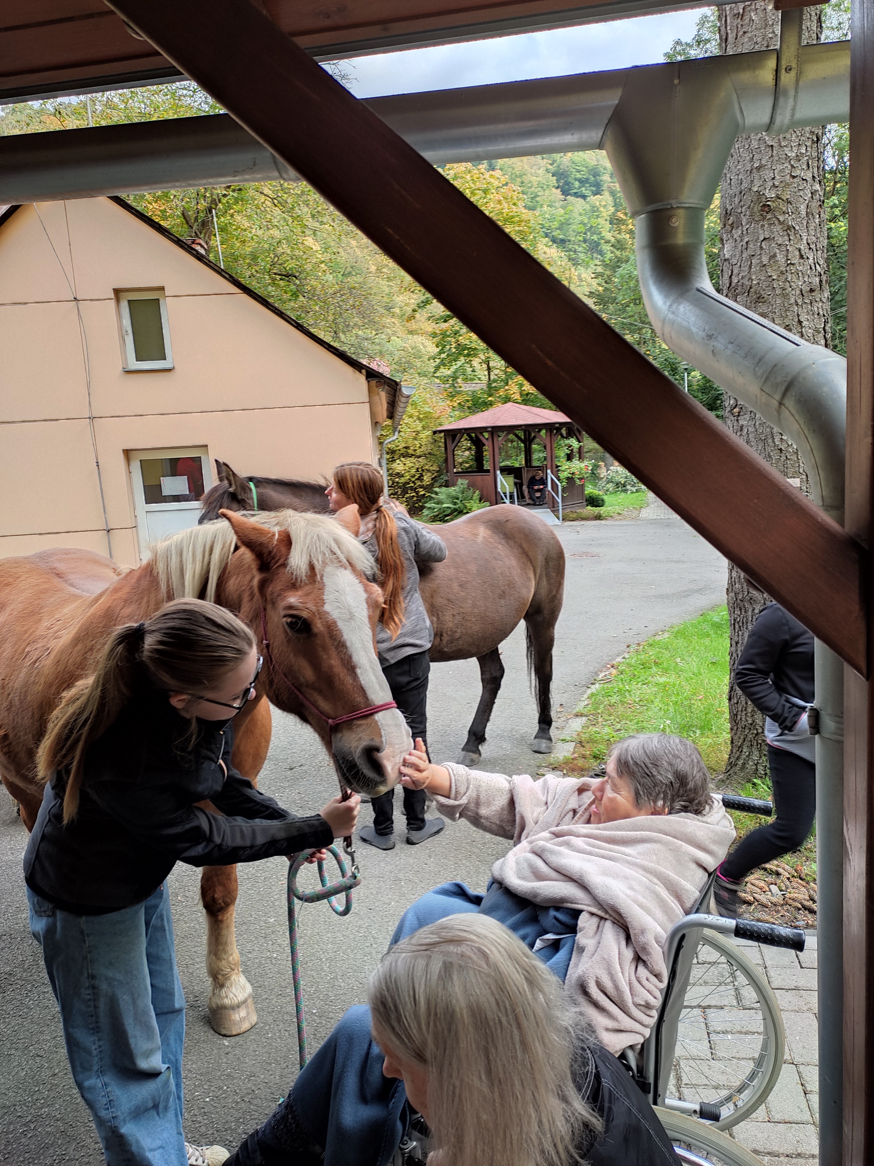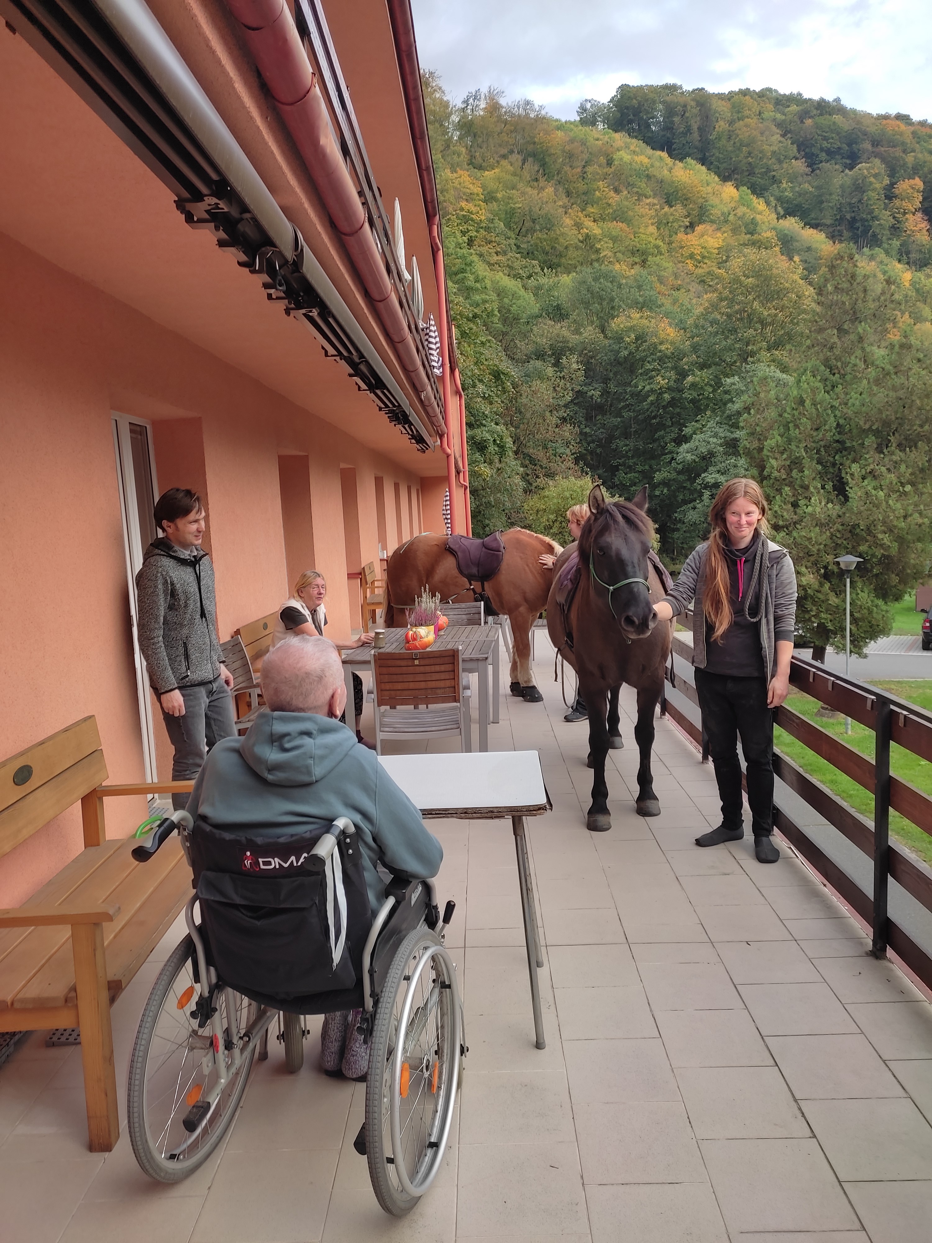 V roce 2023 jsme naposledy přivítali koňské kamarády. Využili jsme slunečný den, ale už jsme se museli teple obléknou, protože podzim klepe na dveře. Bylo to velmi milé odpoledne. V příštím roce se těšíme na další spolupráci. Moc děkujeme a koníky na dálku zdravíme.