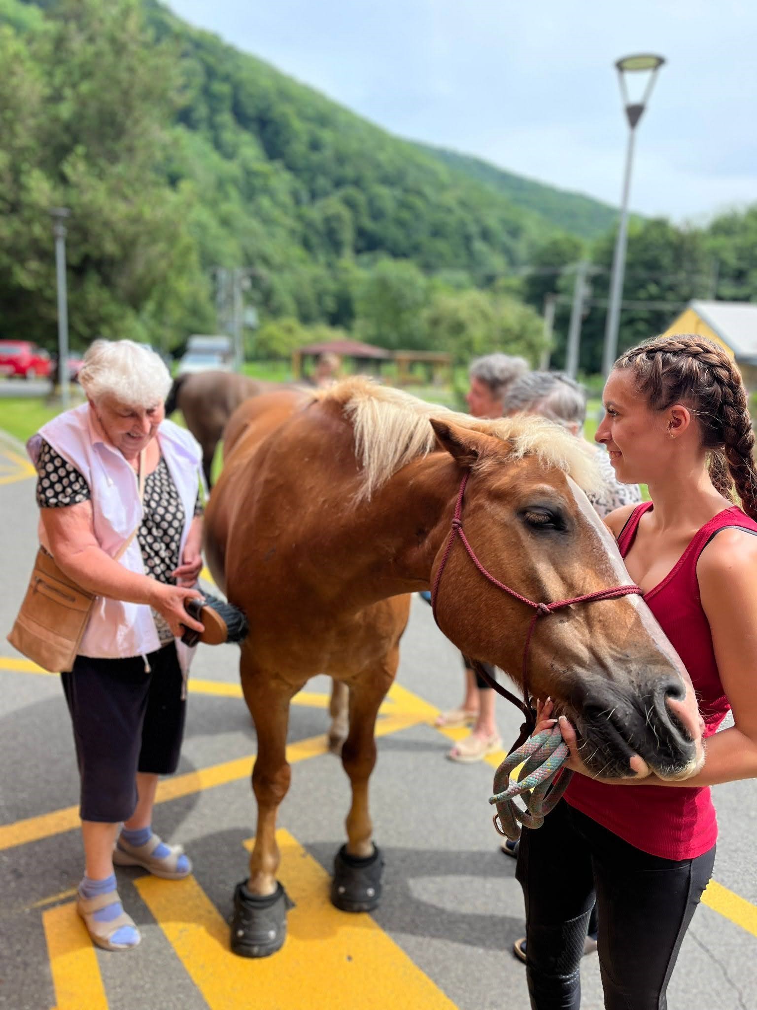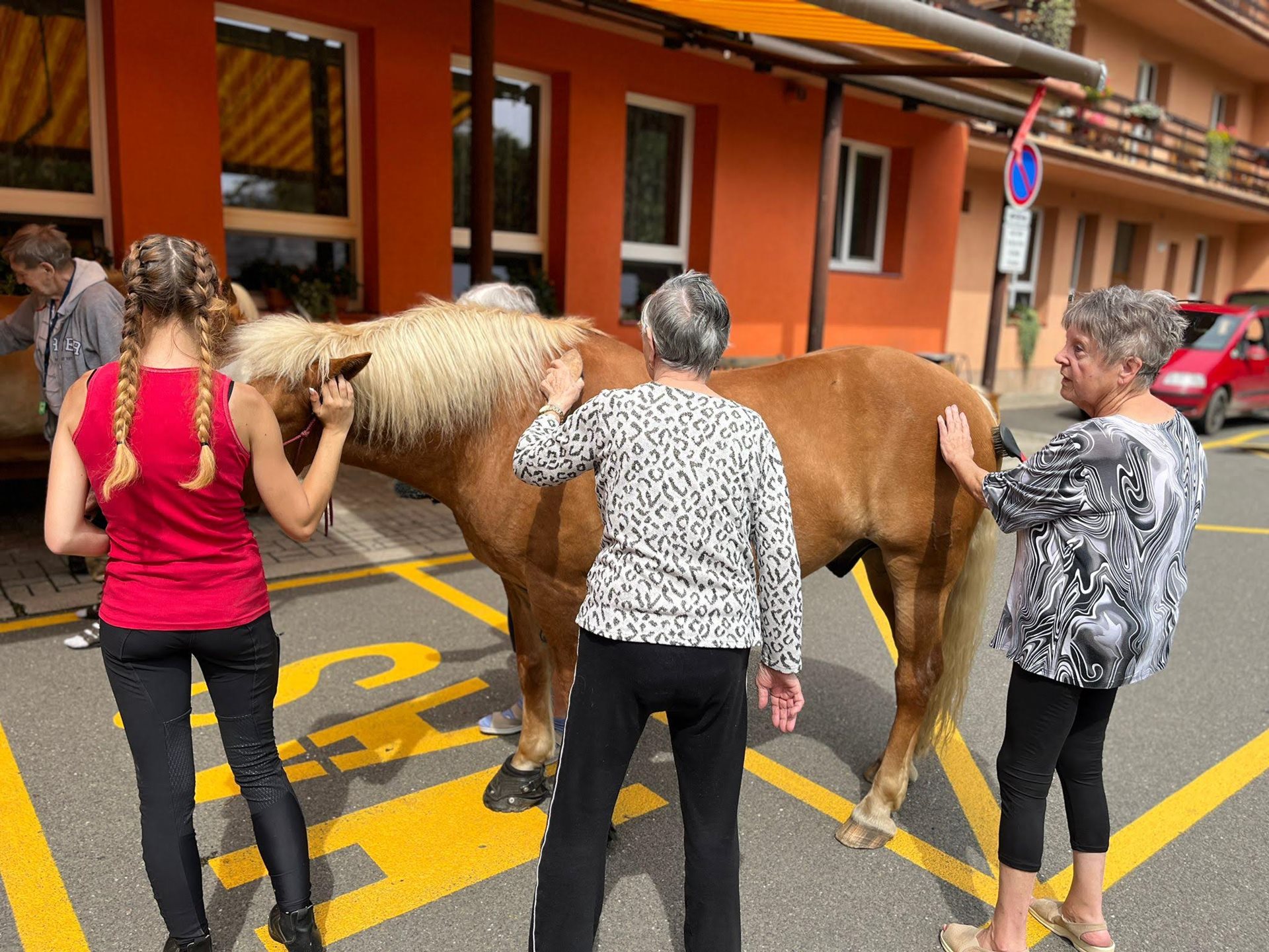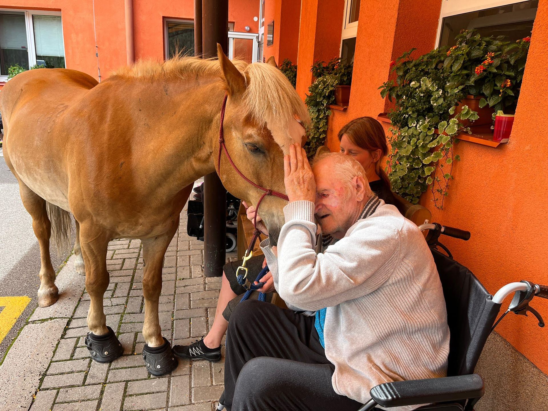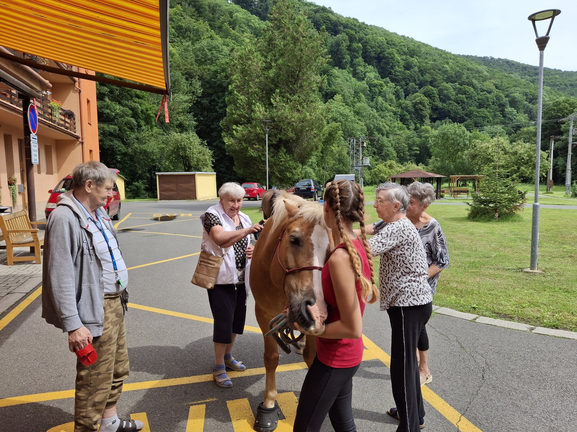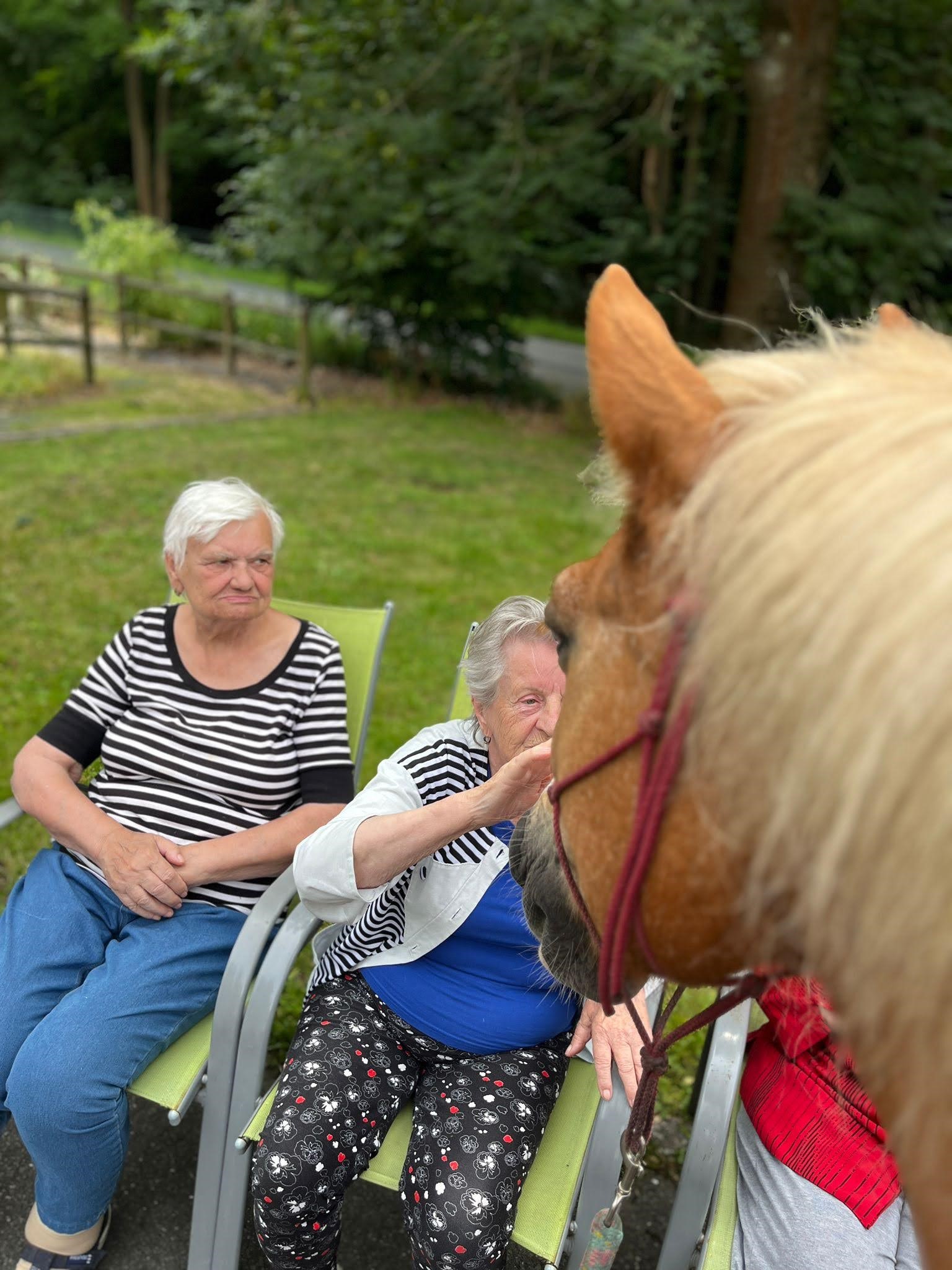 Bylo lehce pod mrakem, ale počasí nám setkání nepokazilo. V zahradě našeho Domova jsme s radostí přivítali koňské kamarády z Hrubé Vody, kteří jsou našimi sousedy. Účast byla opět bohatá a zájem veliký, všichni jsme se těšili. Během návštěvy měli uživatelé možnost koně pohladit, vyzkoušet si hřebelcování, nebo je jen v klidu pozorovat. Setkání přineslo mnoho úsměvů, milých chvil a vzpomínek, na které budeme ještě dlouho rádi vzpomínat.