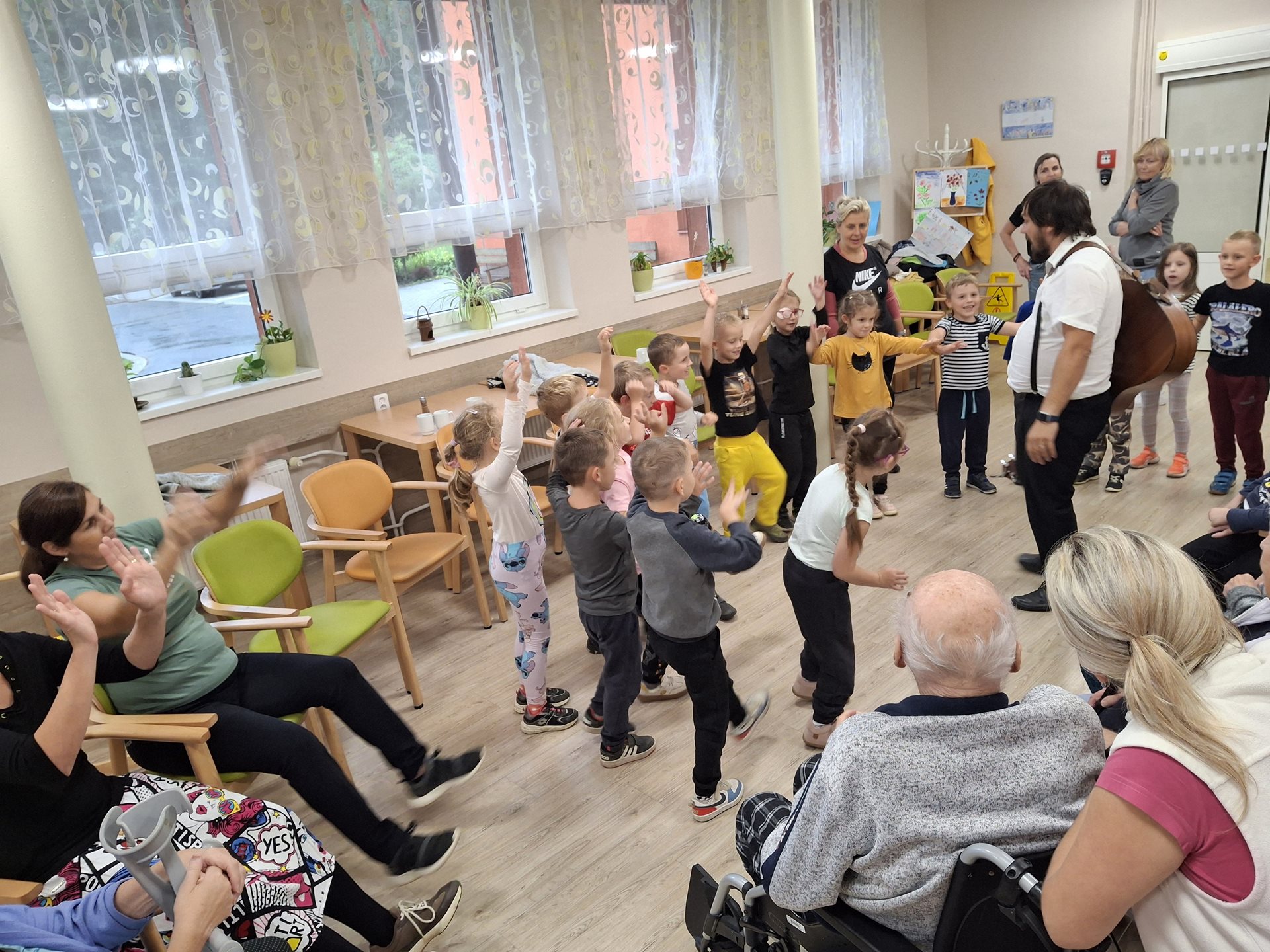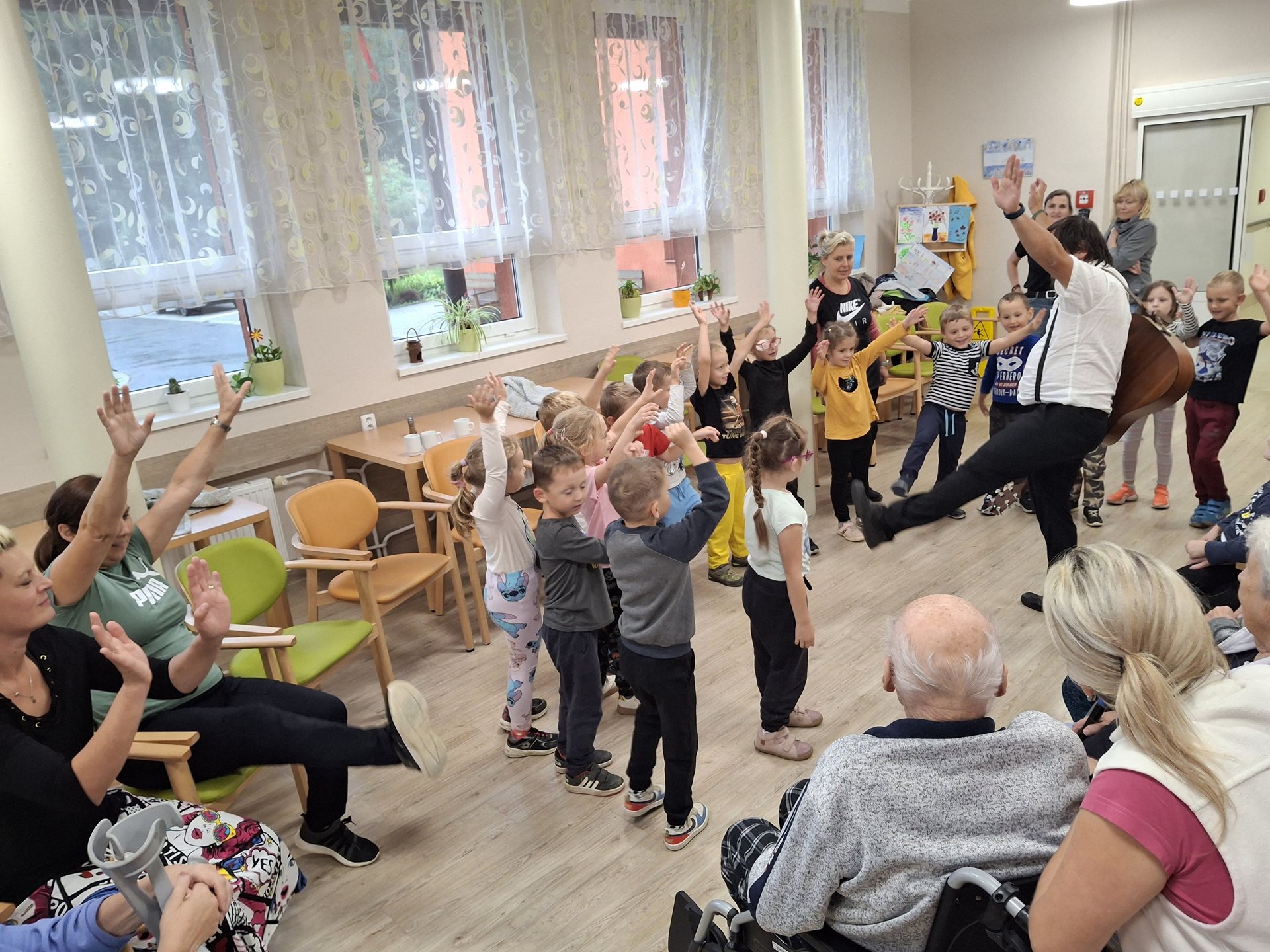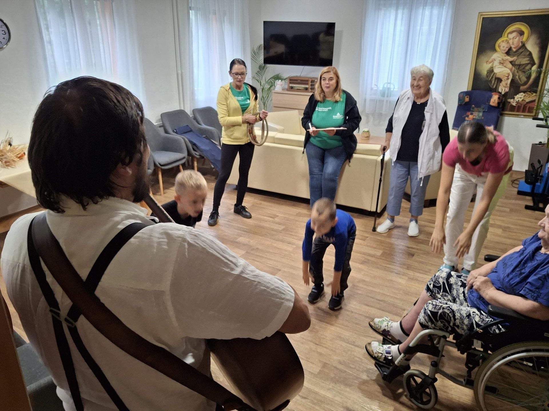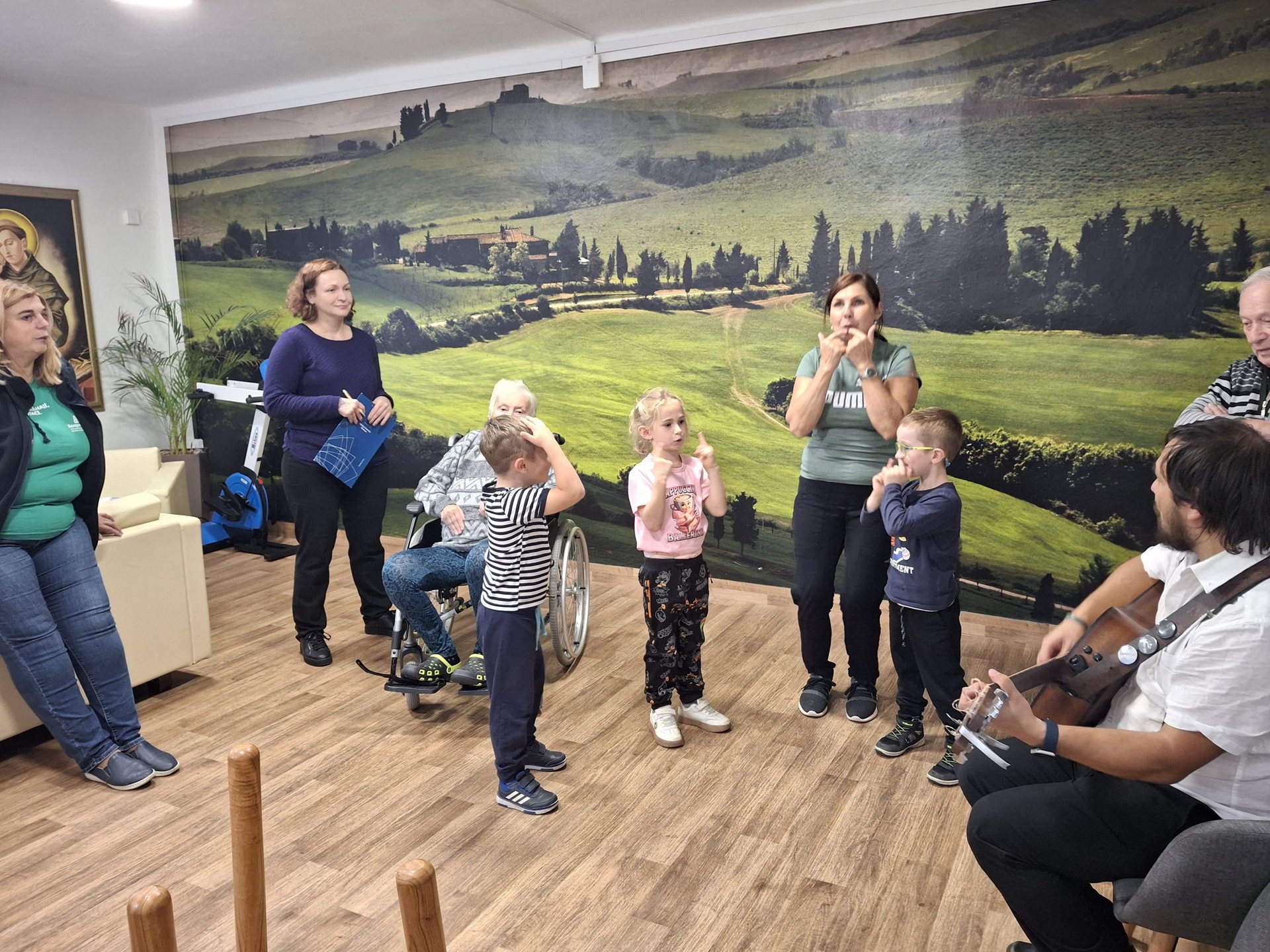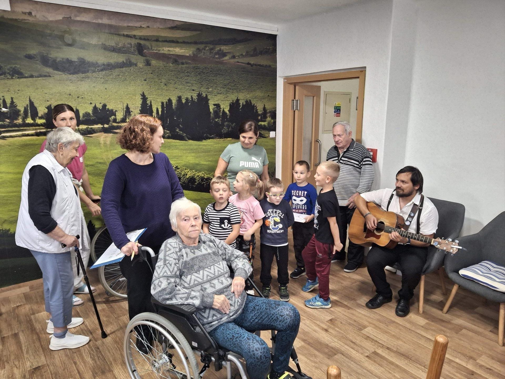 Ve středu 24. září jsme již podruhé v tomto roce uspořádali mezigenerační sportovní hry, které nesly podtitul „Když senioři a děti táhnou za jeden provaz.“ Počasí nám od samého rána příliš nepřálo – pršelo, foukal silný vítr a sluníčko se ani neukázalo. Déšť sice později ustoupil, ale vítr přetrvával, a tak jsme se rozhodli celý program operativně přesunout do vnitřních prostor. A světe div se – všechna stanoviště se vešla! Byl to den plný pohybu, her, smíchu, radosti, a především mezigeneračního porozumění. Naši milí uživatelé se opět společně s dětmi zapojili do pestrých sportovních disciplín. Připravili jsme celkem pět stanovišť: