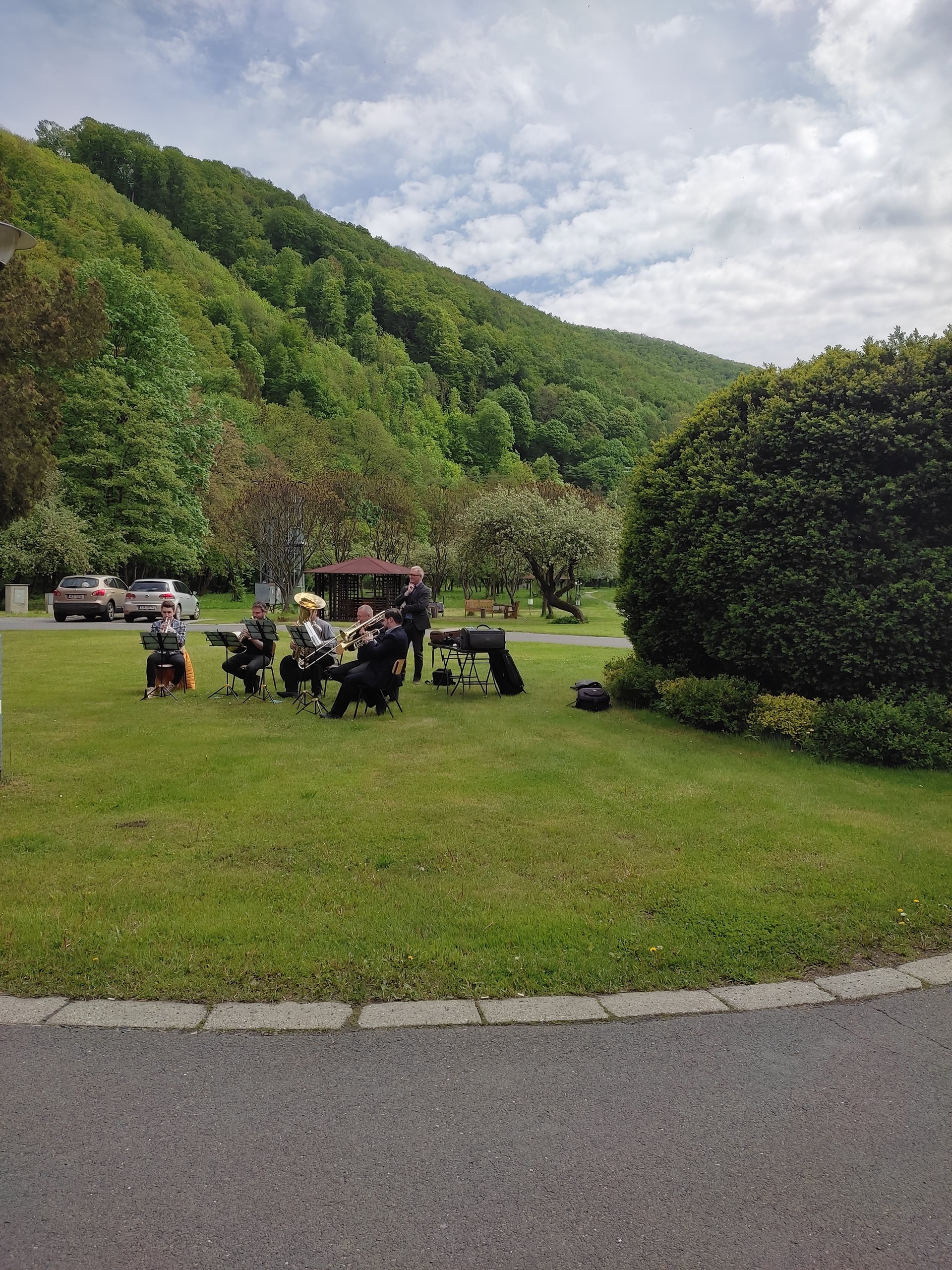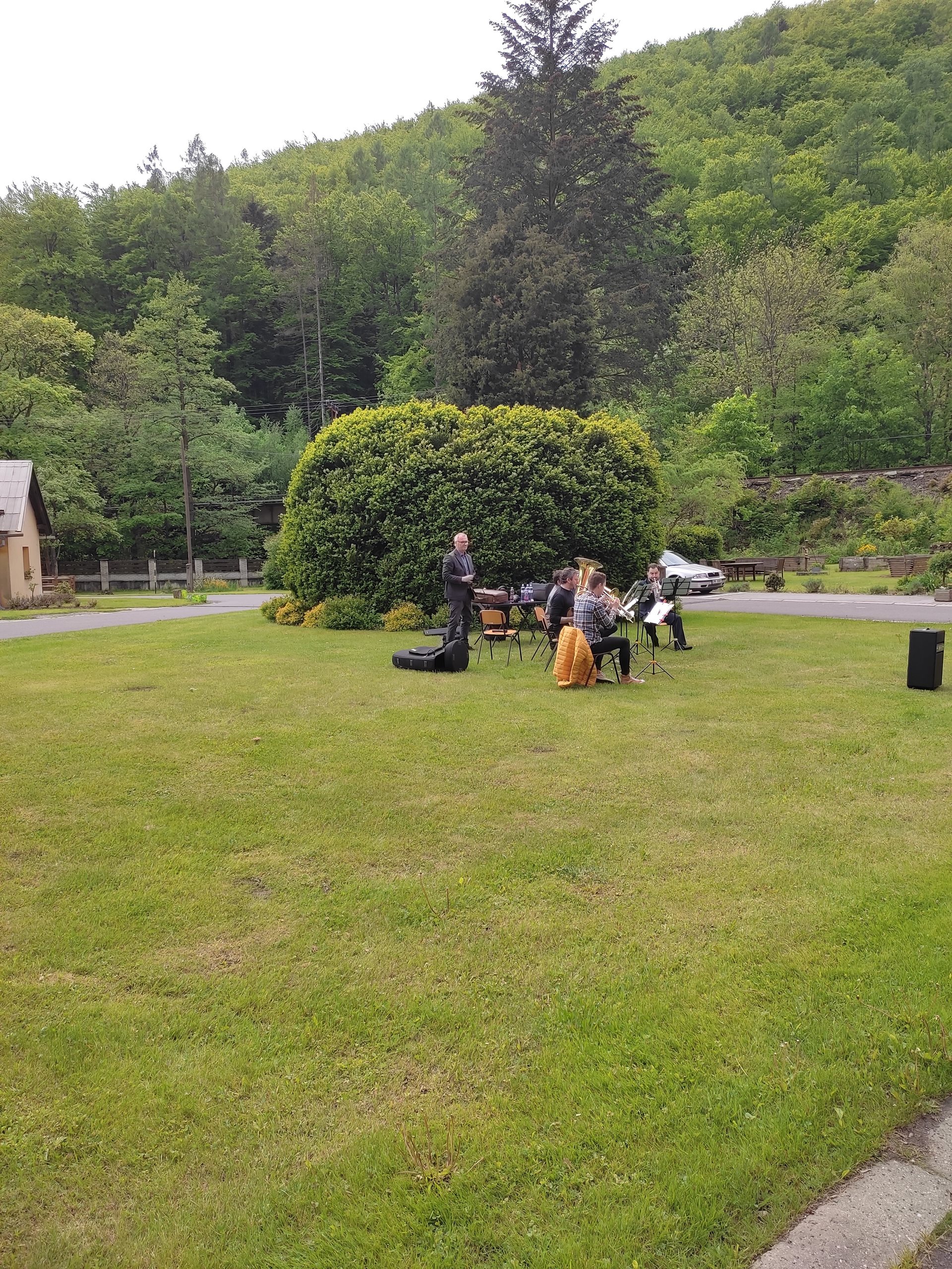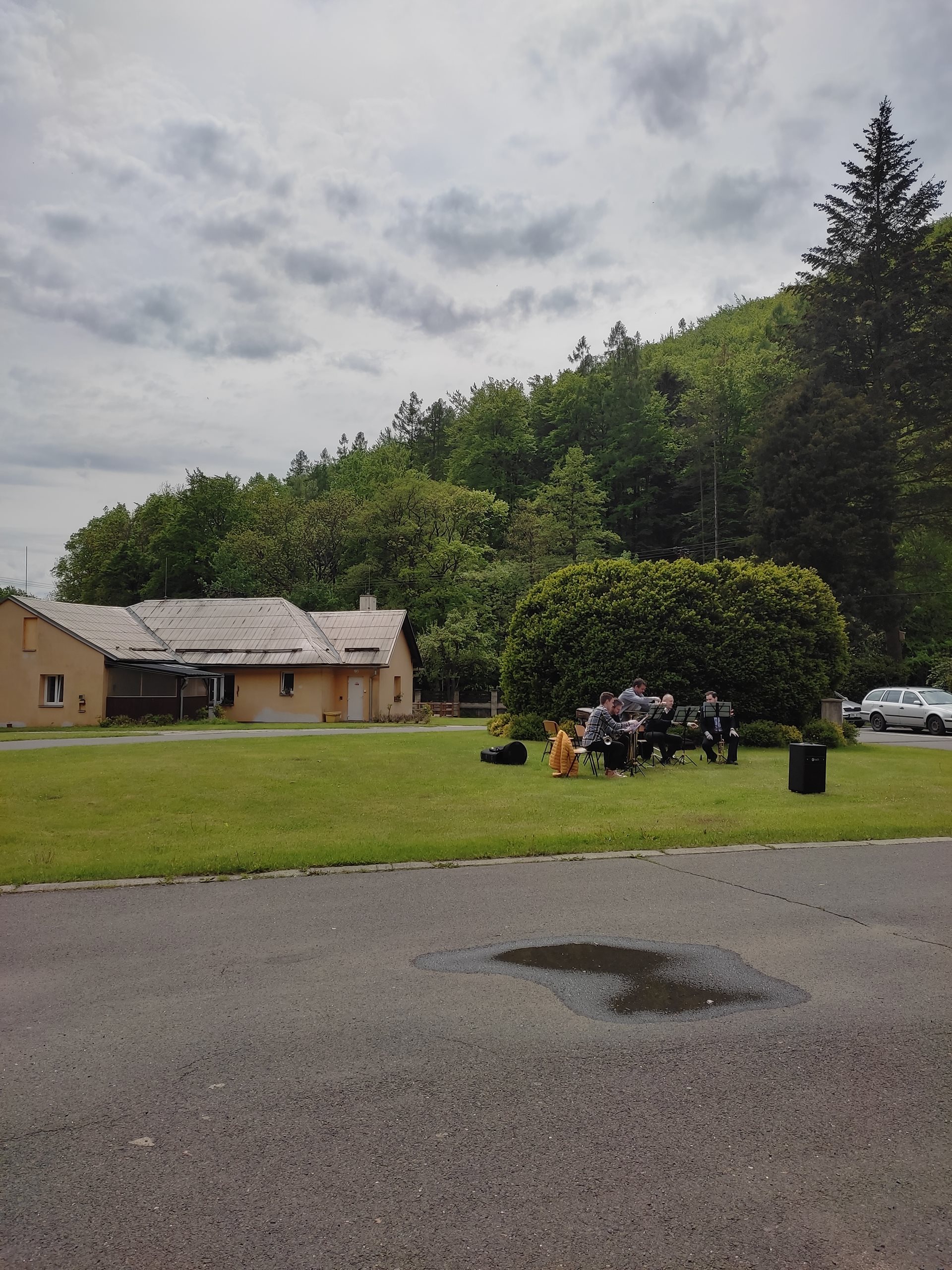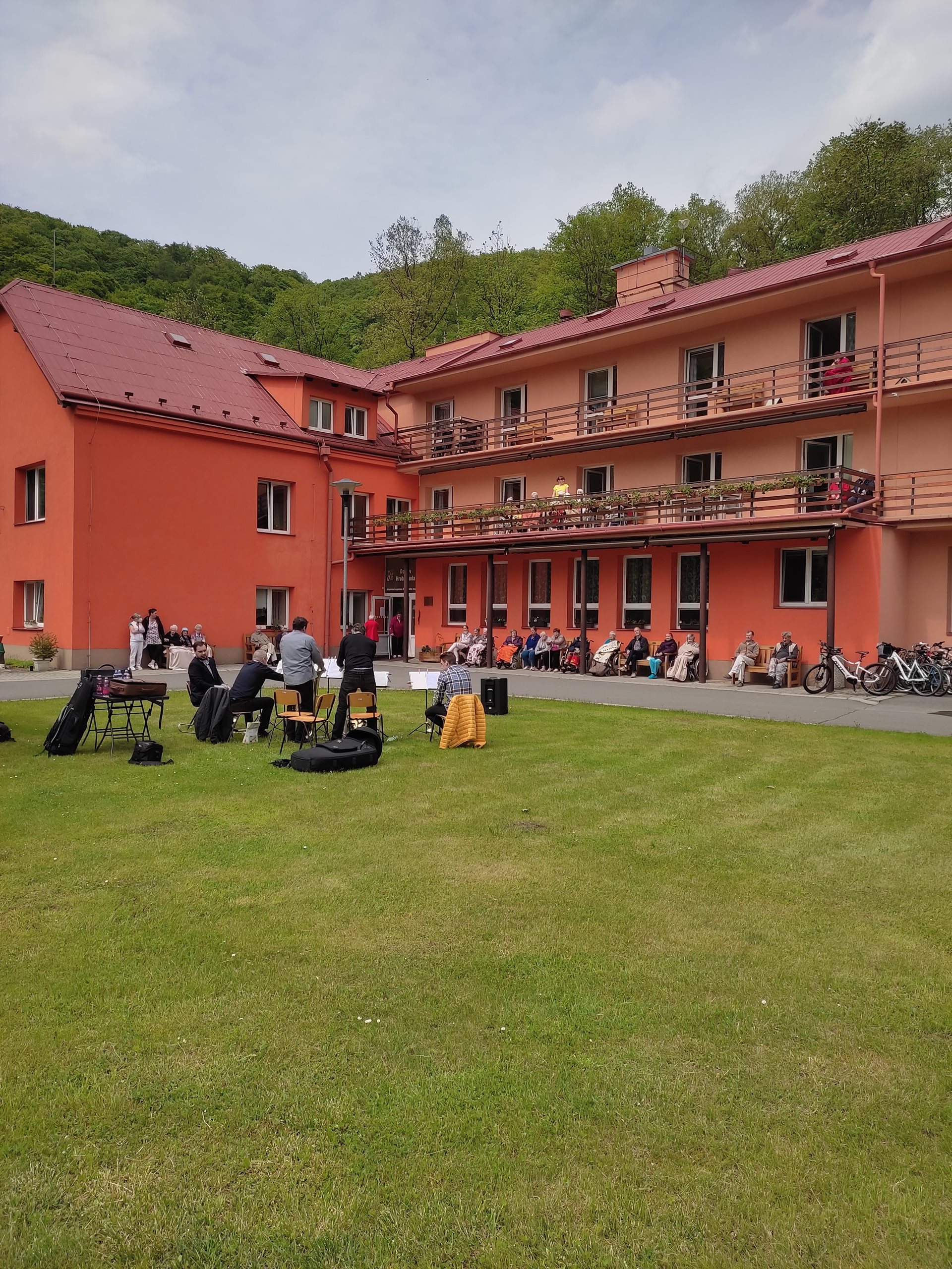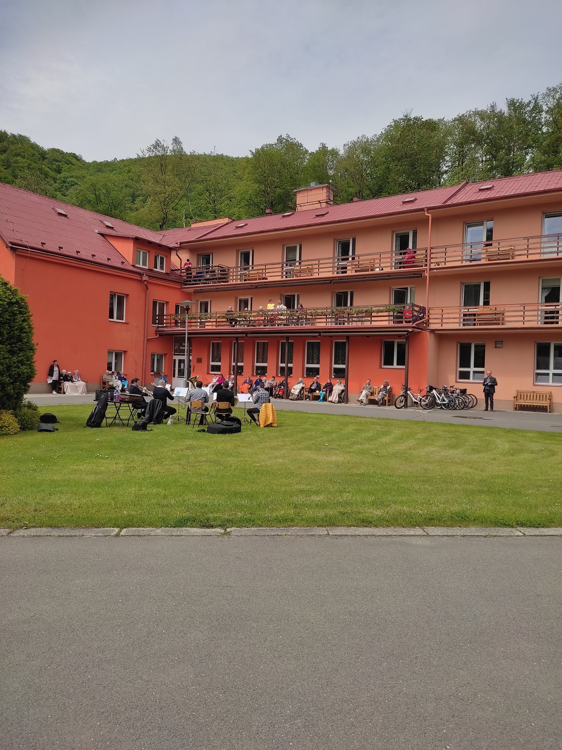V pondělí 24. 5. od 13. 30 hod. se v našem zařízení ve venkovních prostorách uskutečnilo hudební odpoledne. Přivítali jsme hudebníky z Moravské filharmonie Olomouc. Zazněly skladby z vážné hudby a také známé lidové písně. Vystoupení jsme sledovali z balkónů, terasy a z laviček před Hlavní budovou. Takto strávené odpoledne bylo jistě pro všechny po delší době příjemně strávenou chvilkou a zpestřením dne.