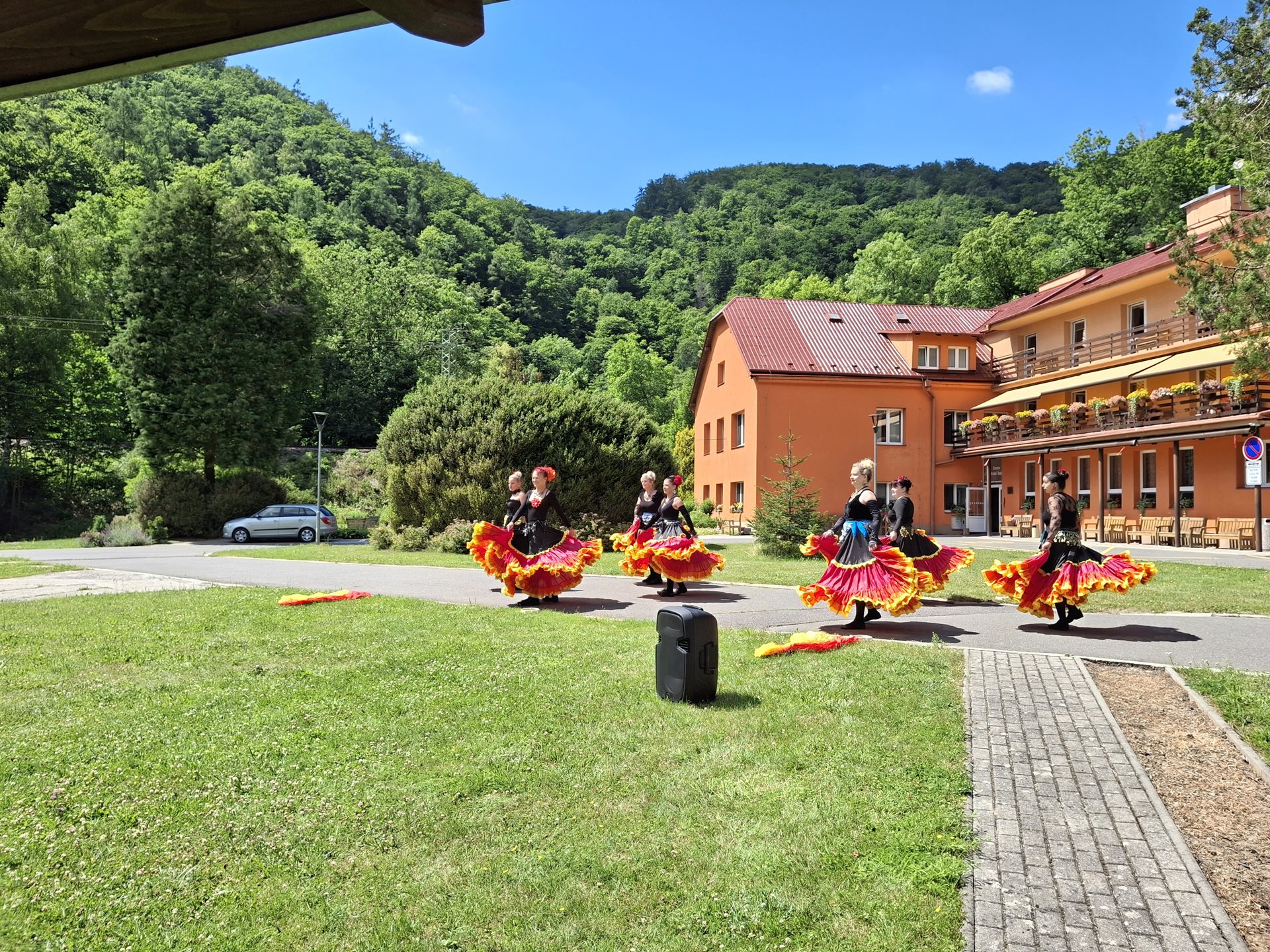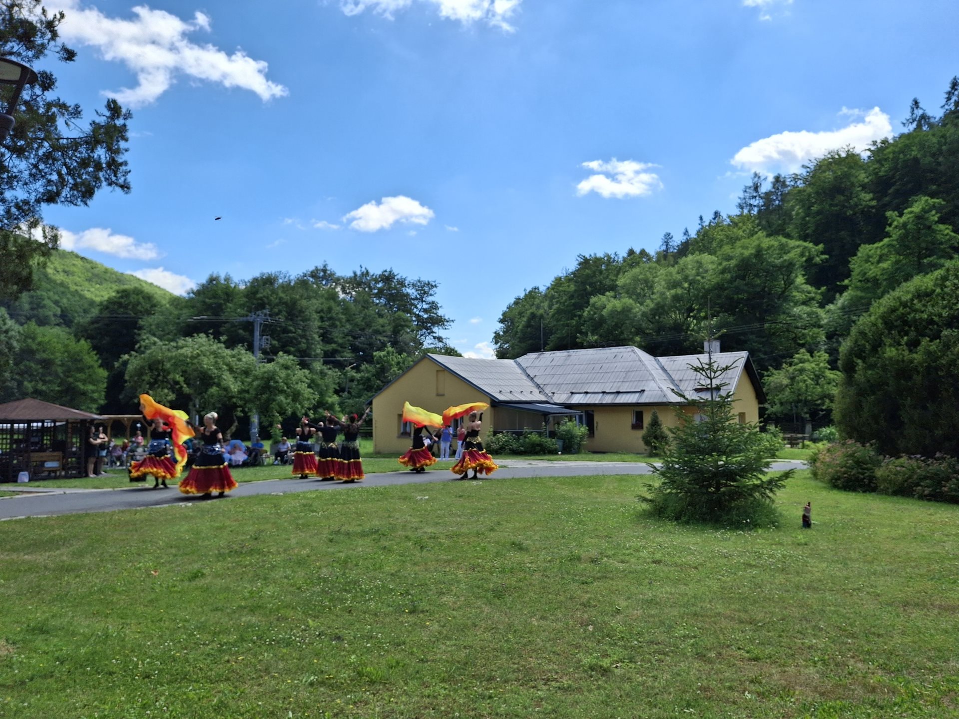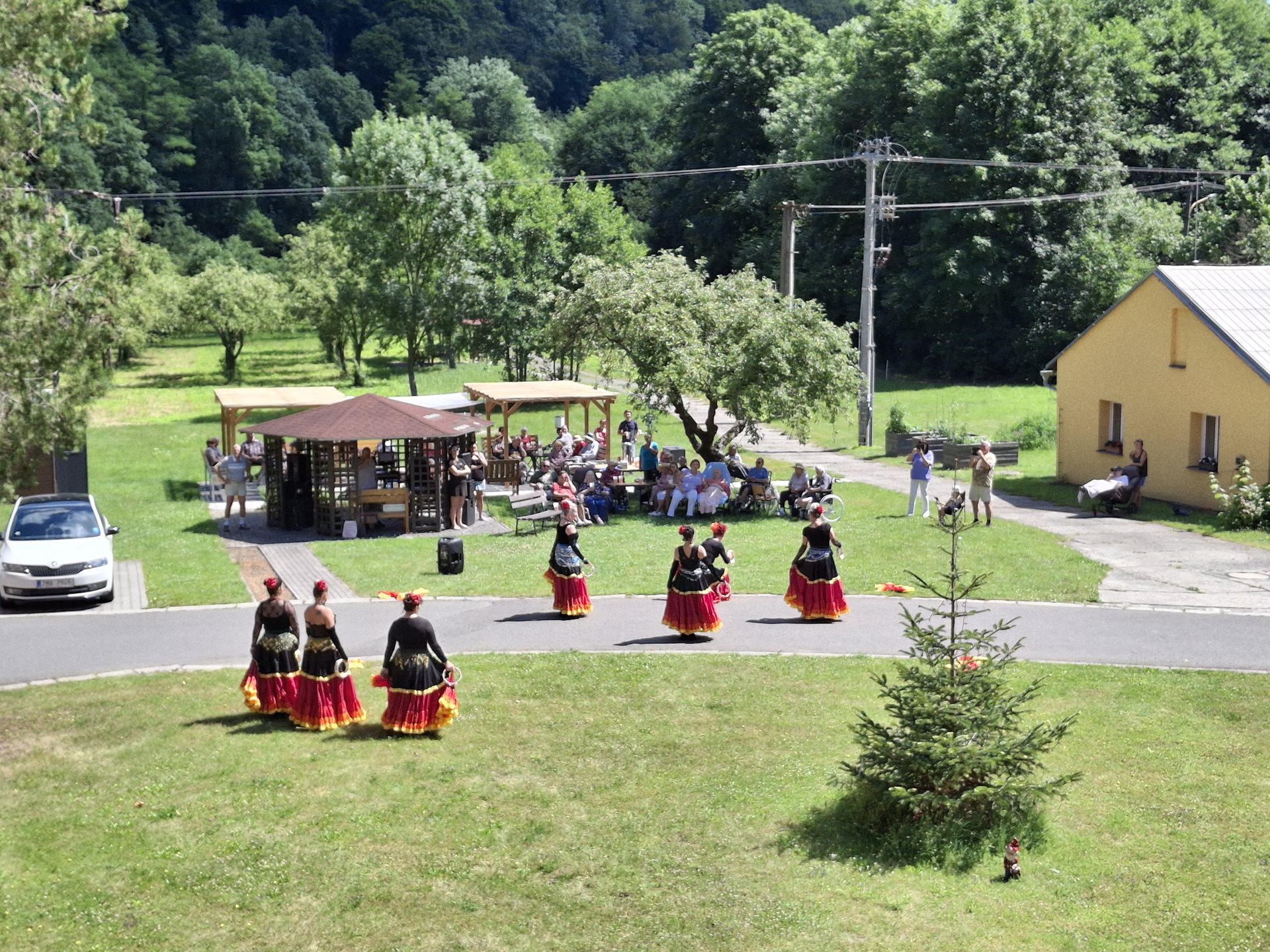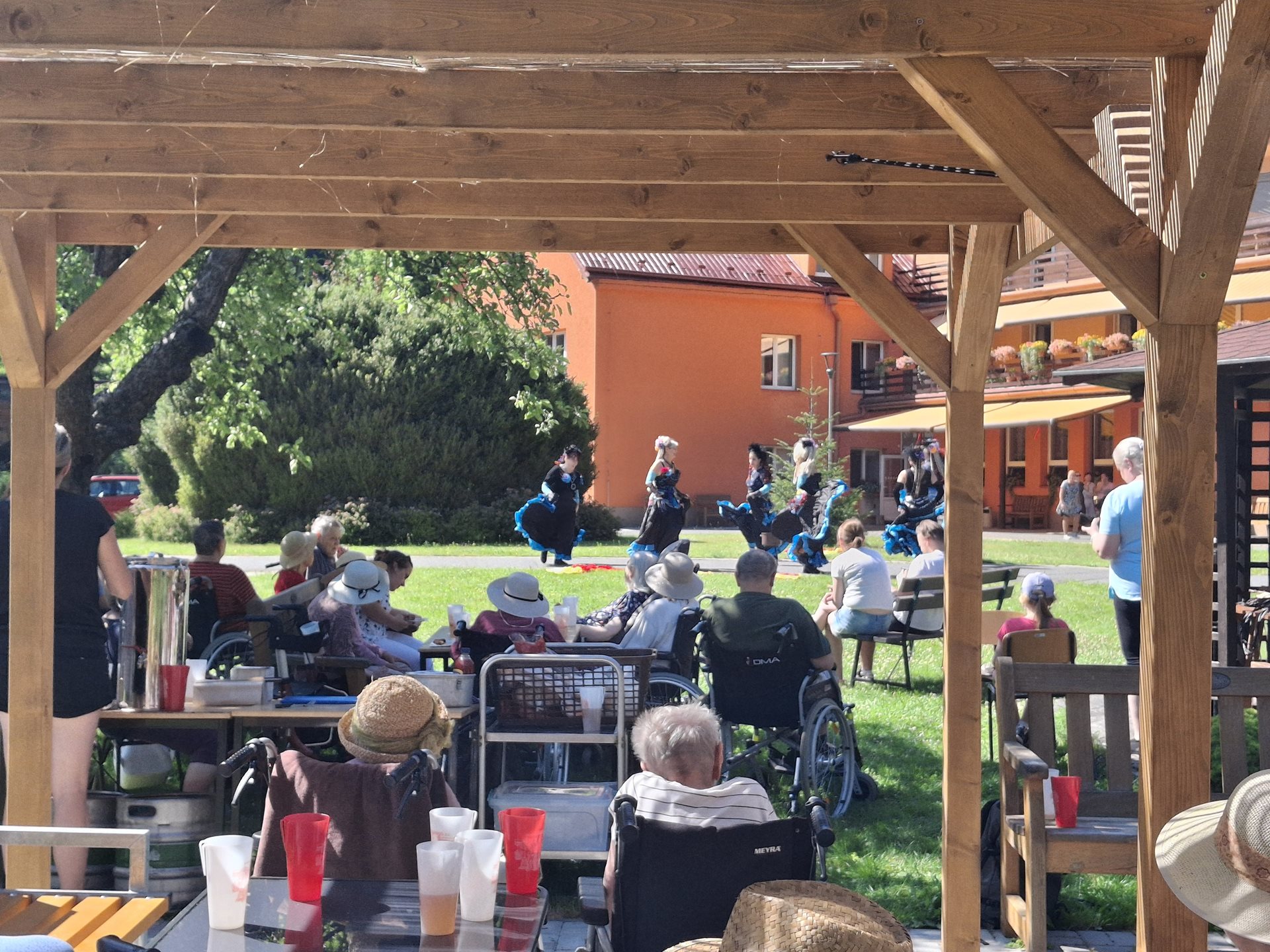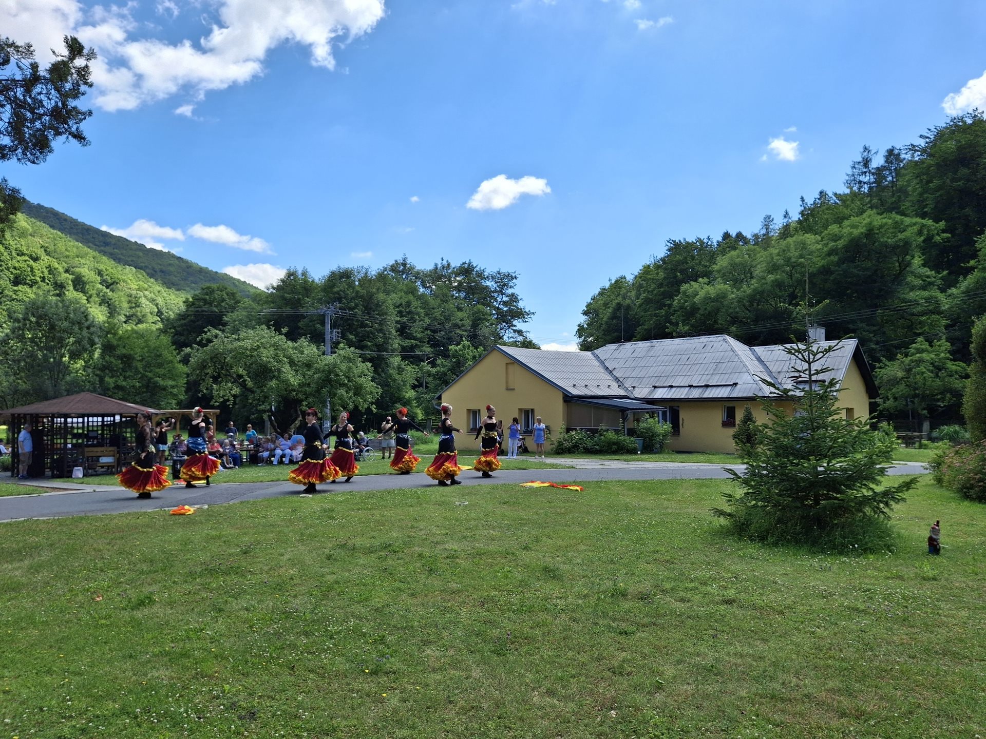 V sobotu jsme pořádali naše oblíbené opékání, které jsme si tentokrát zpříjemnili překvapením. Přijely nám zatančit tanečnice ze Vsetína. Jedná se o sedm kamarádek, které ve volném čase nacvičují taneční vystoupení. Pro nás si připravily pět tematických tanečních čísel. Celé odpoledne probíhalo ve velmi příjemné atmosféře, protože počasí nám přálo, slunce svítilo a sem tam příjemně zafoukal větřík, který nás osvěžil. Buřtíky chutnaly výborně a pivečko bylo krásně vychlazené.