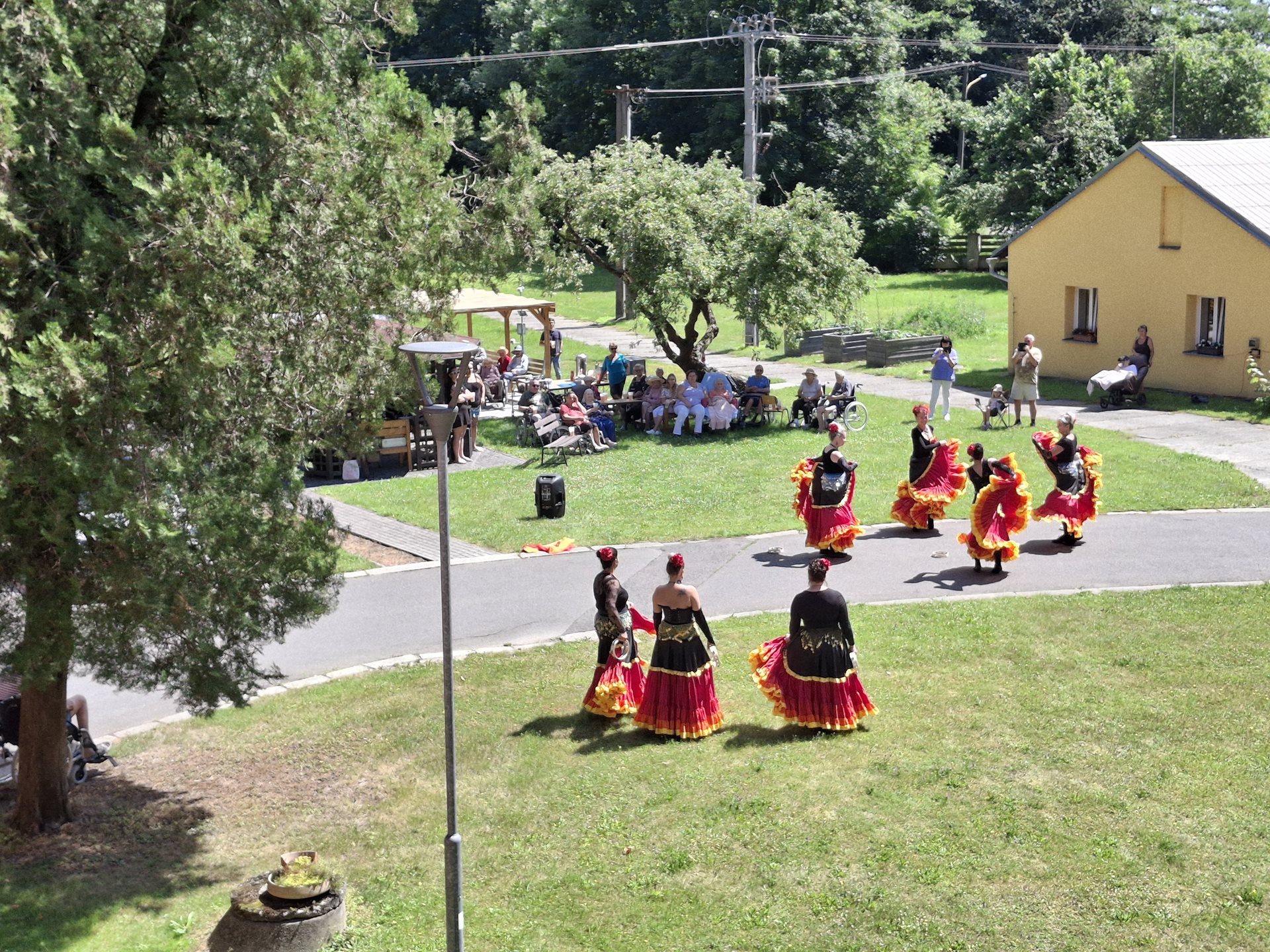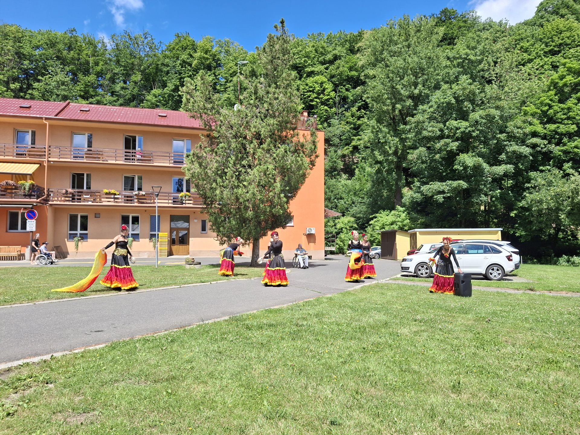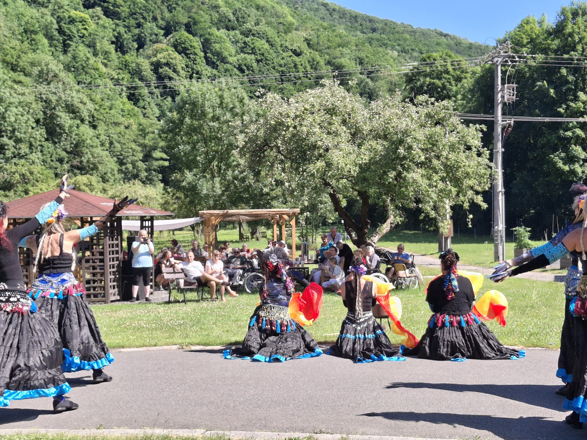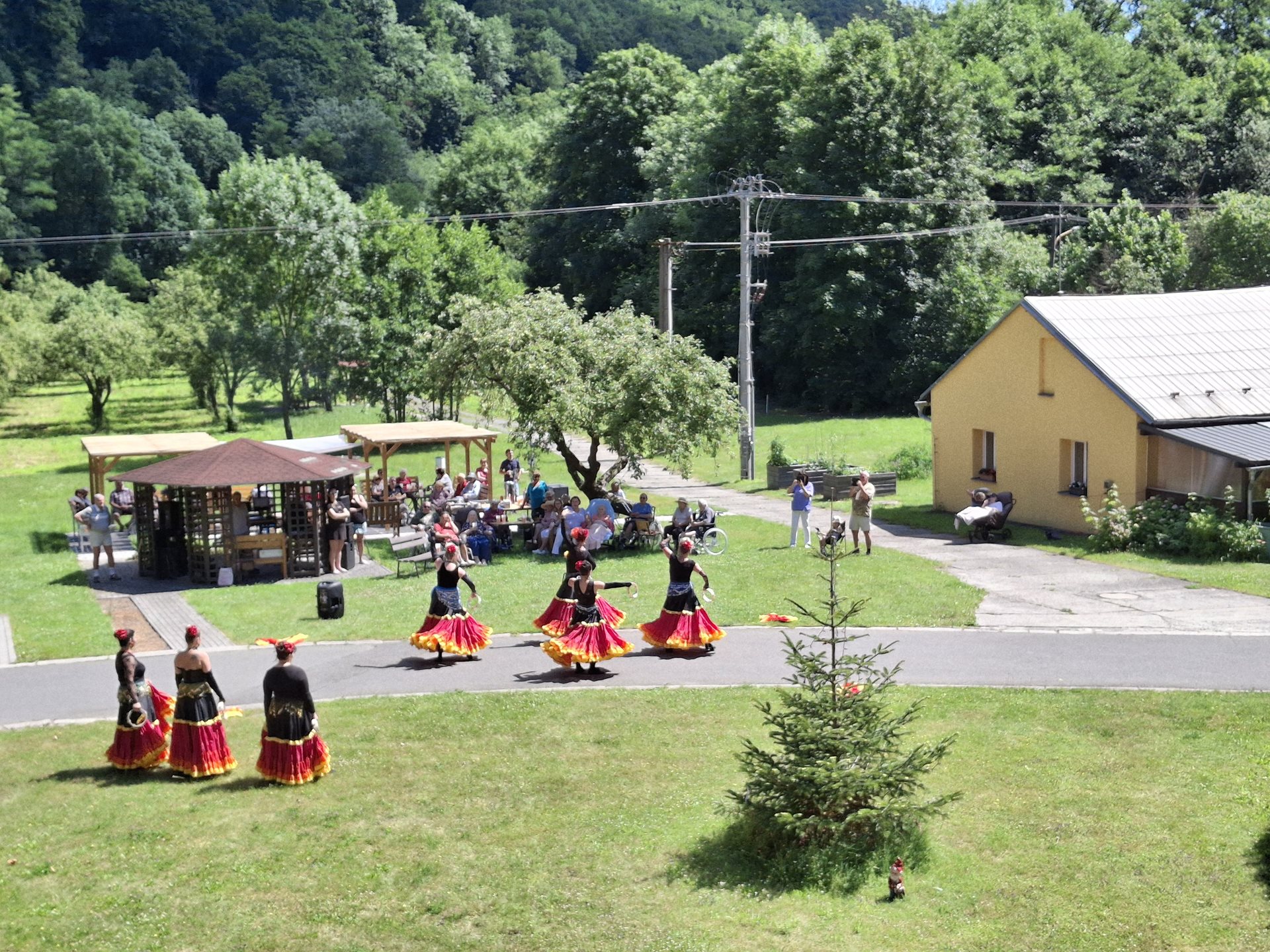 V sobotu jsme pořádali naše oblíbené opékání, které jsme si tentokrát zpříjemnili překvapením. Přijely nám zatančit tanečnice ze Vsetína. Jedná se o sedm kamarádek, které ve volném čase nacvičují taneční vystoupení. Pro nás si připravily pět tematických tanečních čísel. Celé odpoledne probíhalo ve velmi příjemné atmosféře, protože počasí nám přálo, slunce svítilo a sem tam příjemně zafoukal větřík, který nás osvěžil. Buřtíky chutnaly výborně a pivečko bylo krásně vychlazené.