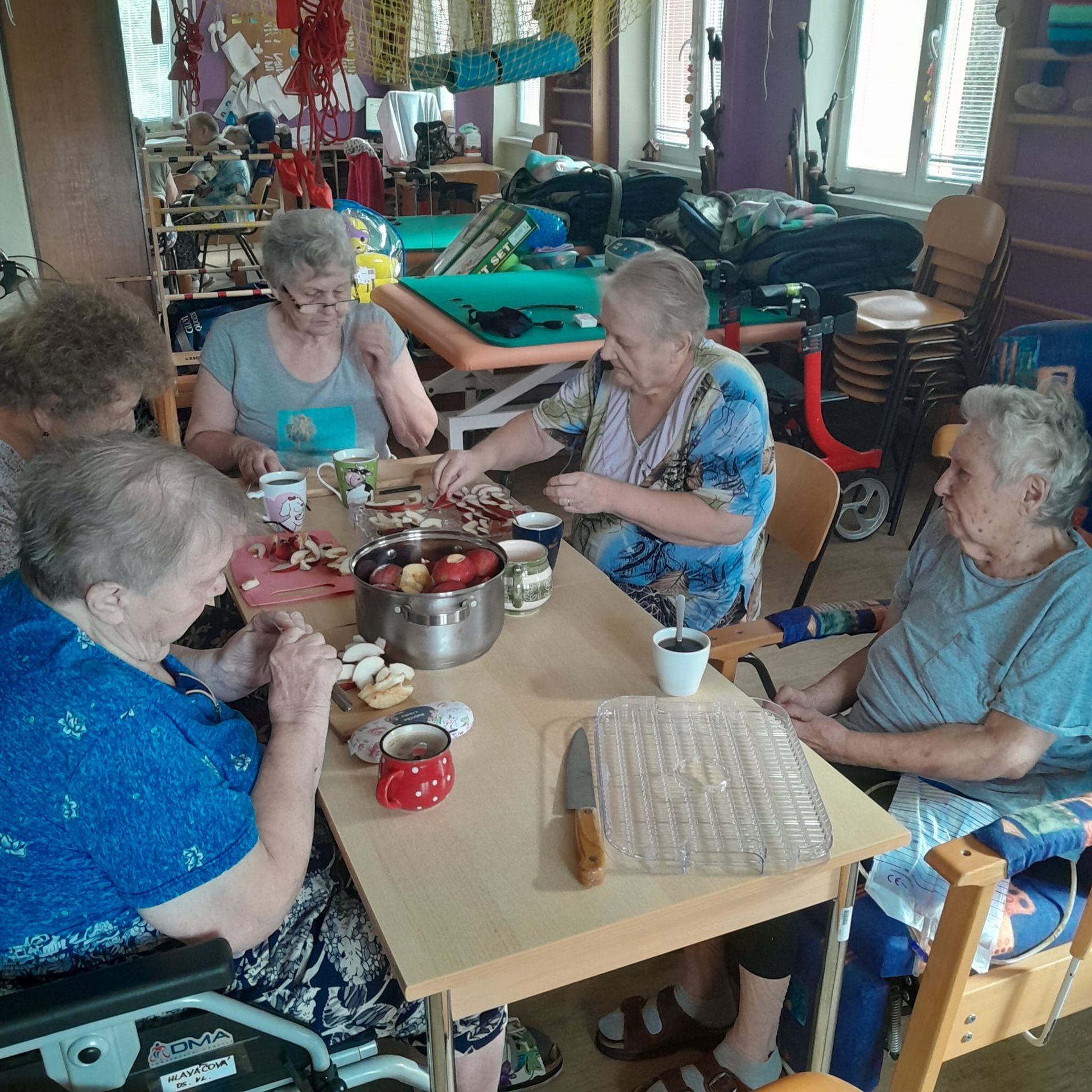 1. 10. 2024 byl krásný slunečný den. Náš Domov má velký ovocný sad, kde dozrávají jablka. Proto jsme využili slunečný den ke sběru jablíček. Myslíme už na zimu a chystáme zásoby vitamínů. Zapojilo se mnoho uživatelů a všem děkujeme.