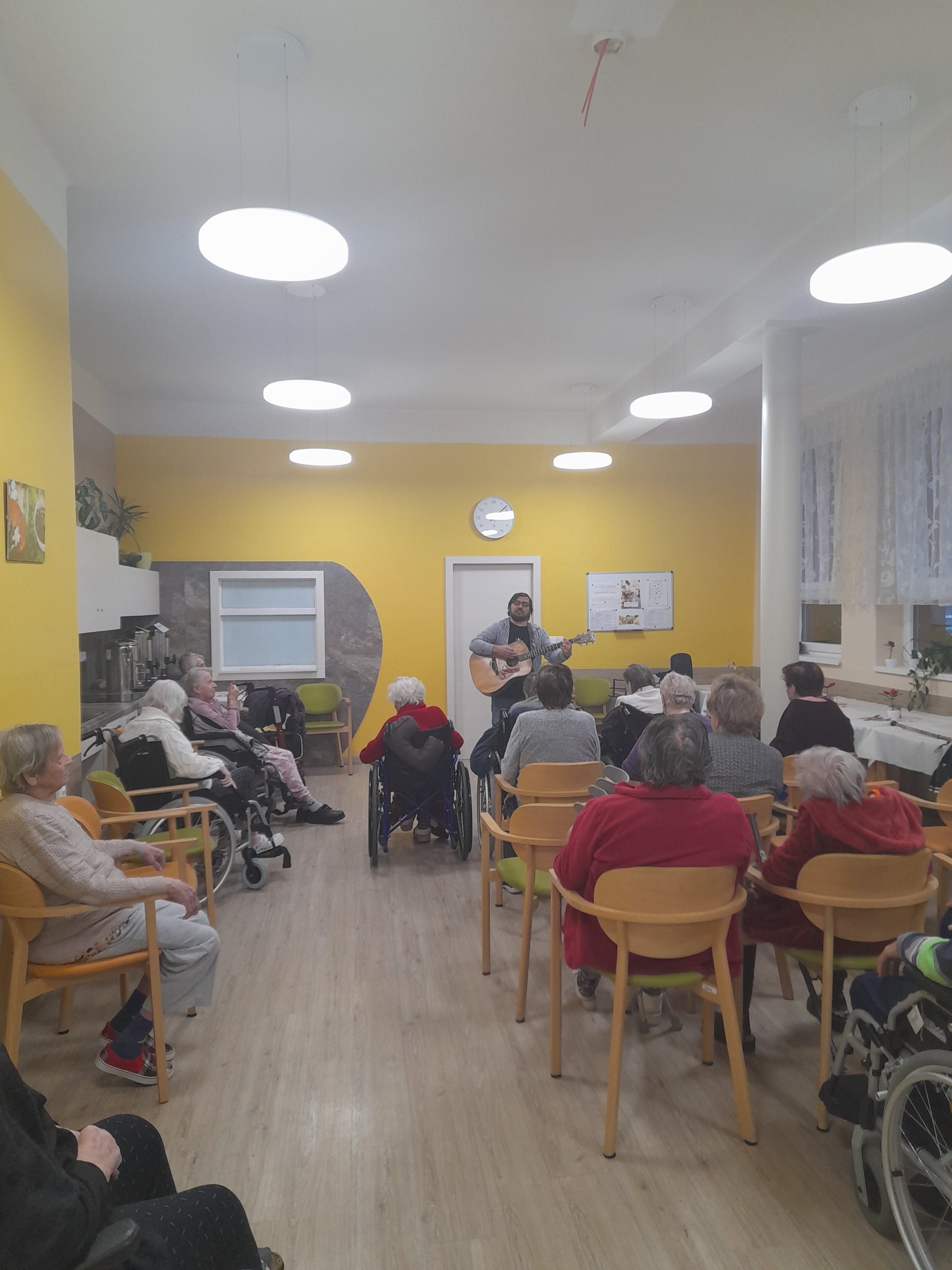 Ve čtvrtek 23. 1. 2025 jsme si odpoledne zpříjemnili hudebním odpolednem, kterým byl Tomáš Velzel. Moc příjemná chvilka, kdy jsme se zaposlouchali do krásného hlasu a známých písní.