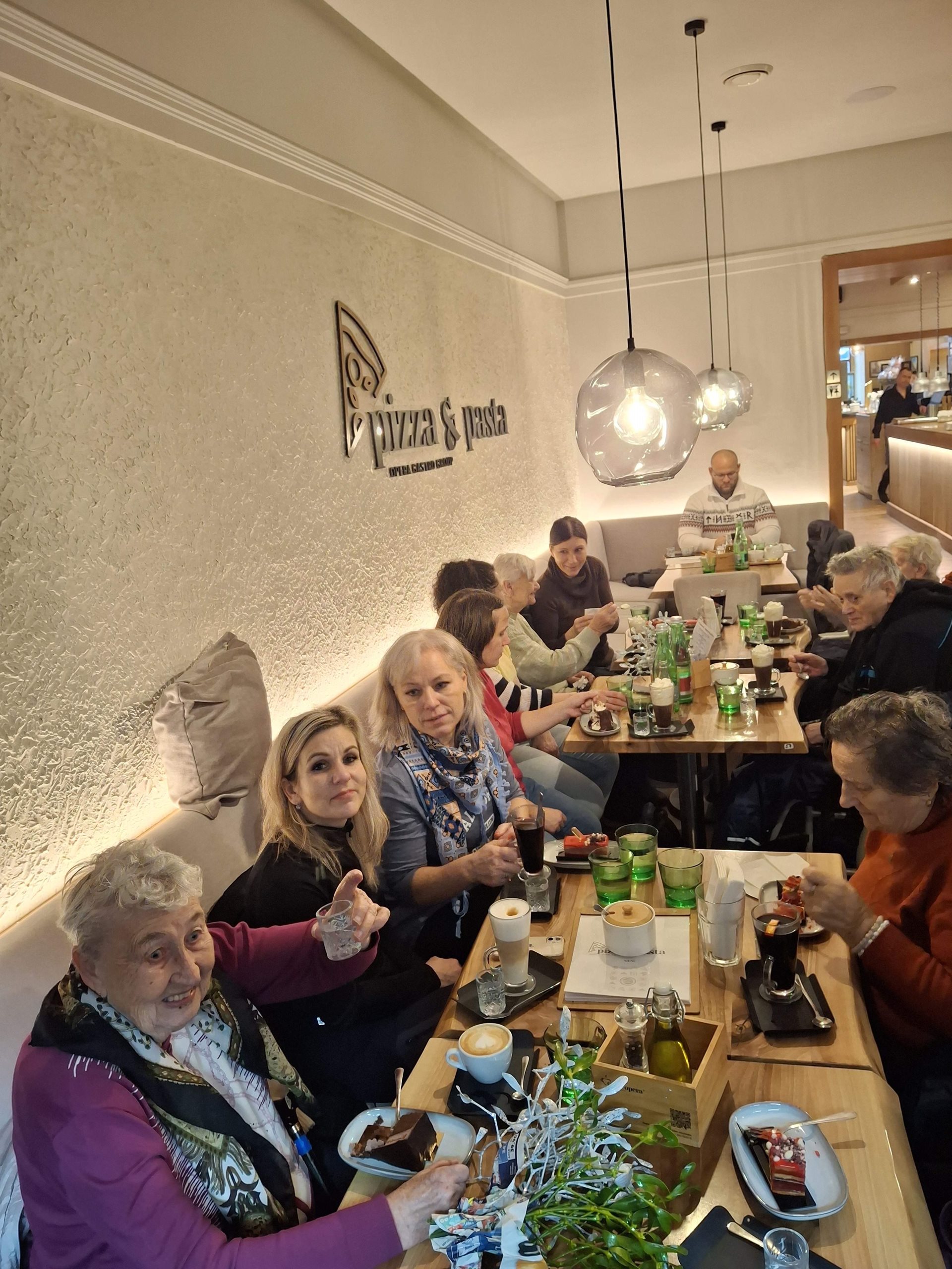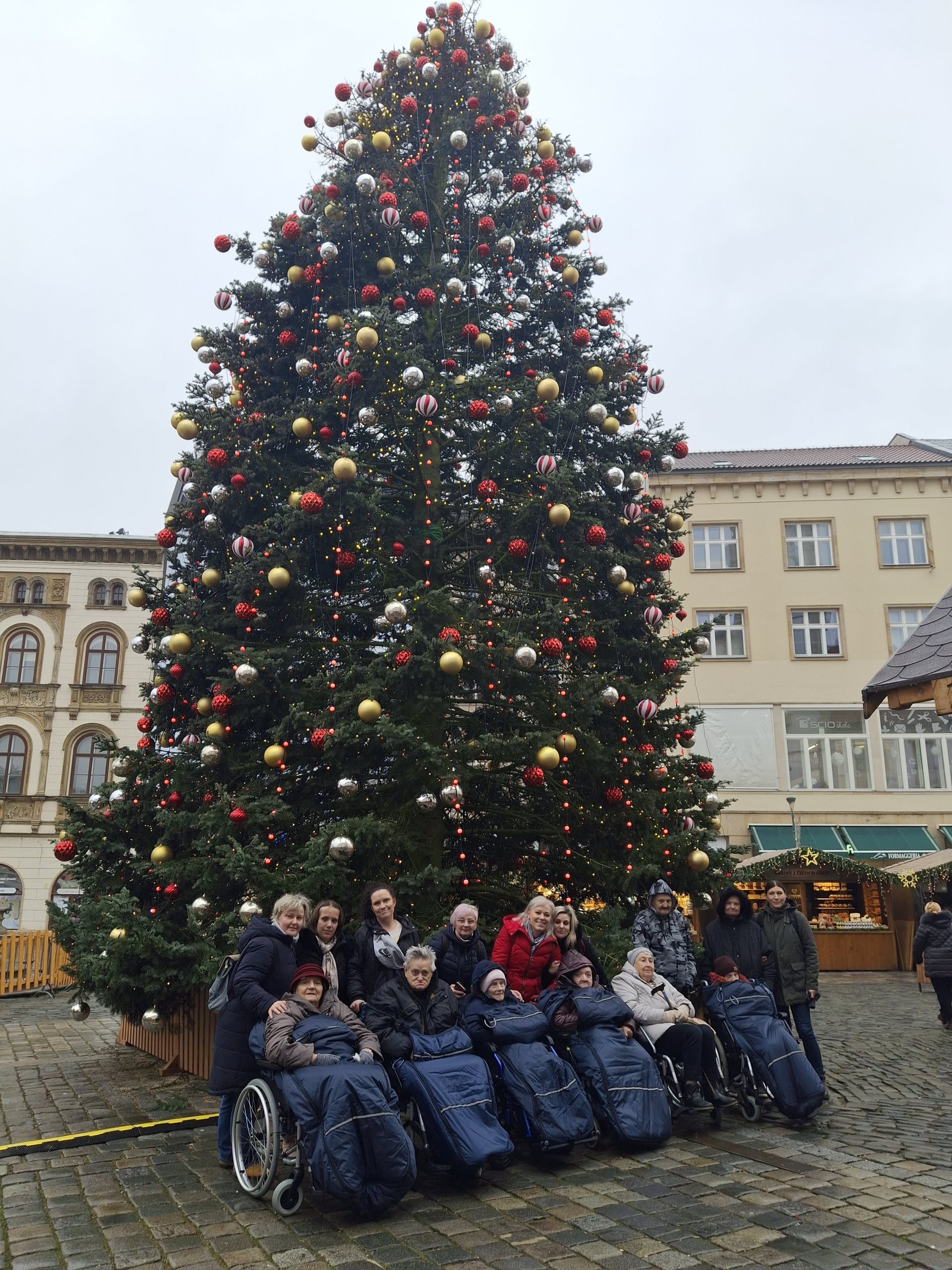 V pondělí 8. 12. 2025 jsme měli objednaný autobus a společně jsme vyrazili na celodenní výlet. Naším cílem bylo olomoucké náměstí a vánoční trhy. Počasí nás sice trochu škádlilo a občas se objevila drobná přeháňka, ale byli jsme dobře připraveni a nic nás neodradilo. Prohlédli jsme si vánoční stromeček, obešli stánky a na závěr jsme navštívili oblíbenou kavárnu. Pochutnali jsme si na dortících, svařeném víně, vídeňské kávě i pizze. Výlet proběhl v menší skupině, přesto se velmi vydařil a odnesli jsme si z něj krásné vzpomínky. Bylo to moc milé a už teď se těšíme na další rok.